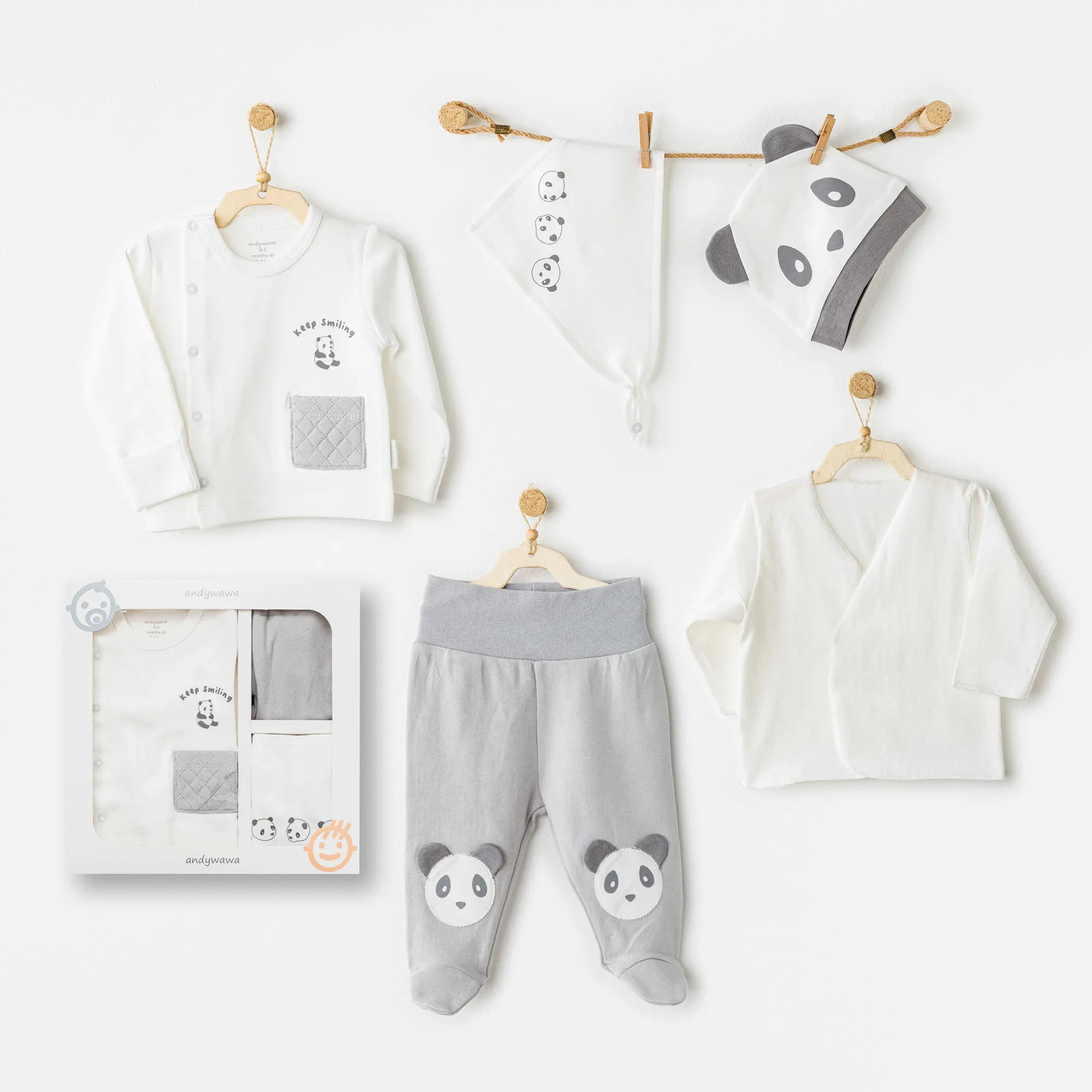 Andywawa AC26020 Keep Smiling 5'li Hastane ÇıkışıAndywawa bebek tekstil ürünleri, miniklerinizin konforunu ön planda tutacak şekilde tasarlanmıştır.Yumuşak dokusu ve nefes alabilen kumaşları sayesinde bebekleriniz gün boyu rahat eder.Ürünlerimizin dayanıklılığı ve uzun ömürlü olması için bakımına özen göstermek önemlidir.- 30°C’de hassas yıkama programında yıkanması önerilir.- Ağartıcı veya sert deterjan kullanmaktan kaçının.- Düşük ısıda ütüleyiniz; baskılı veya aplikeli bölgelerde direkt ütü temasından kaçının.- Kurutma makinesi düşük ısıda kullanılabilir veya doğal ortamda kurutulabilir.- Renklerin korunması için benzer renklerle yıkayınız.Andywawa ürünleri, hem şıklığı hem de bebeğinizin cildine dost yapısıyla günlük kullanıma uygundur.Doğru bakım ile ürünlerimiz uzun süre ilk günkü gibi kalır, miniklerinizin rahatlığı ve güvenliği her zaman önceliğimizdir.