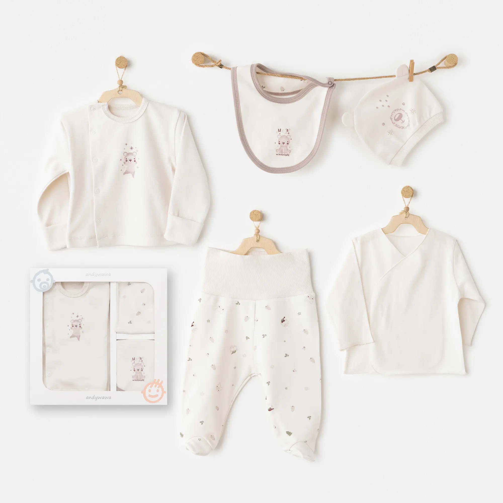 Andywawa AC26180 My 1 St Wardrobe 5'li Hastane ÇıkışıAndywawa bebek tekstil ürünleri, miniklerinizin konforunu ön planda tutacak şekilde tasarlanmıştır.Yumuşak dokusu ve nefes alabilen kumaşları sayesinde bebekleriniz gün boyu rahat eder.Ürünlerimizin dayanıklılığı ve uzun ömürlü olması için bakımına özen göstermek önemlidir.- 30°C’de hassas yıkama programında yıkanması önerilir.- Ağartıcı veya sert deterjan kullanmaktan kaçının.- Düşük ısıda ütüleyiniz; baskılı veya aplikeli bölgelerde direkt ütü temasından kaçının.- Kurutma makinesi düşük ısıda kullanılabilir veya doğal ortamda kurutulabilir.- Renklerin korunması için benzer renklerle yıkayınız.Andywawa ürünleri, hem şıklığı hem de bebeğinizin cildine dost yapısıyla günlük kullanıma uygundur.Doğru bakım ile ürünlerimiz uzun süre ilk günkü gibi kalır, miniklerinizin rahatlığı ve güvenliği her zaman önceliğimizdir.
