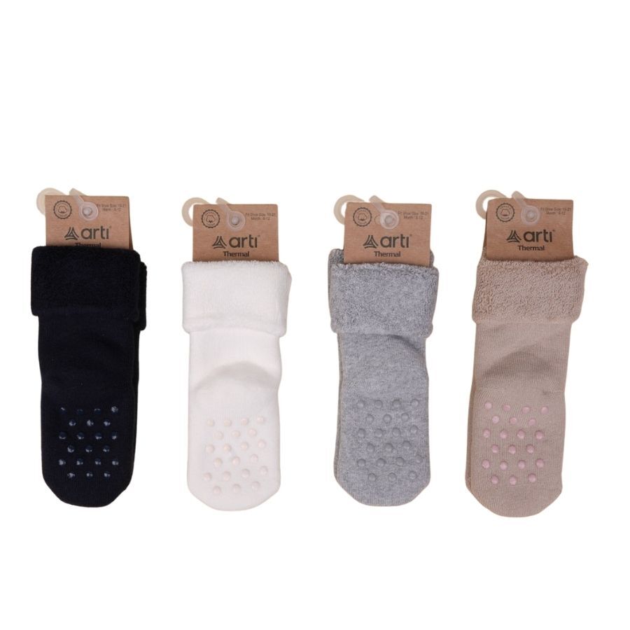 جوارب أطفال مع وسادة حماية ABS توفر راحة وأمانًا لقدمي طفلك. متوفرة بألوان متعددة، اختر اللون المفضل لطفلك الآن وتمتع بجودة عالية وتصميم عملي. لا تفوت فرصة العناية المثلى لأقدام صغيرك!