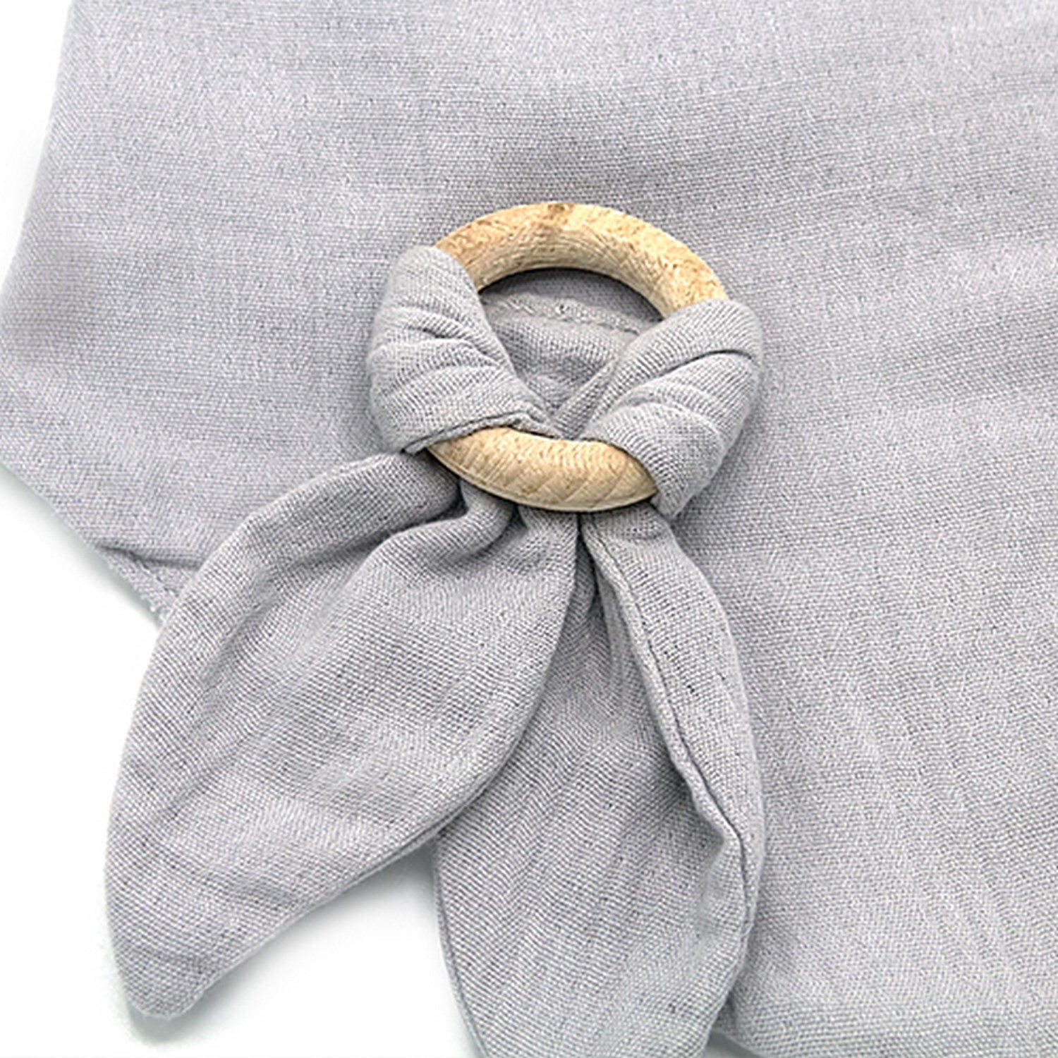 حلقة التسنين الخشبية الطبيعية في طرف المريلة مثالية لطفلك الذي يمر بمرحلة التسنين.