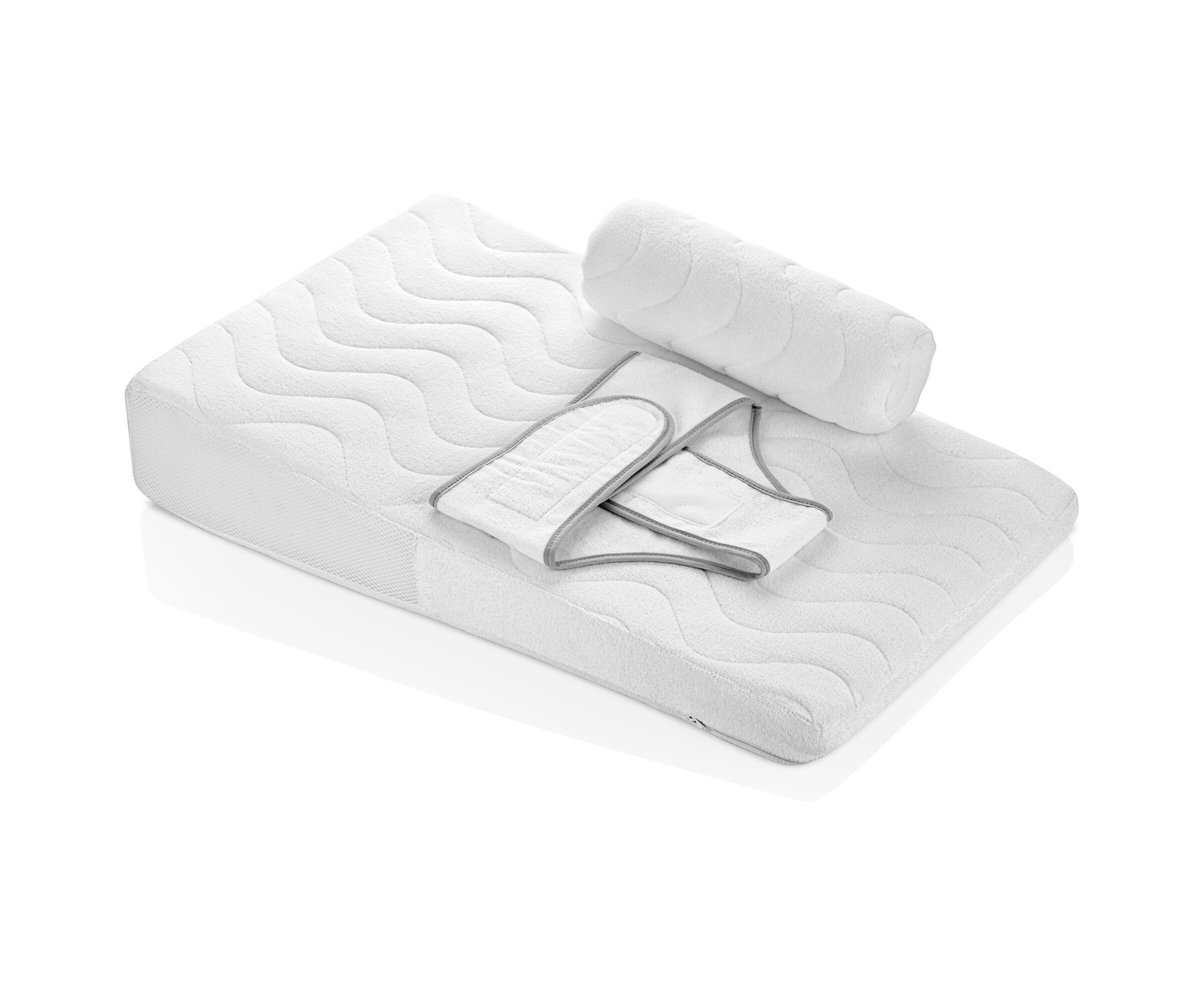 يثبت حزام الخصر المزود بأشرطة فيلكرو طفلك على الوسادة ويمنع انزلاقه.