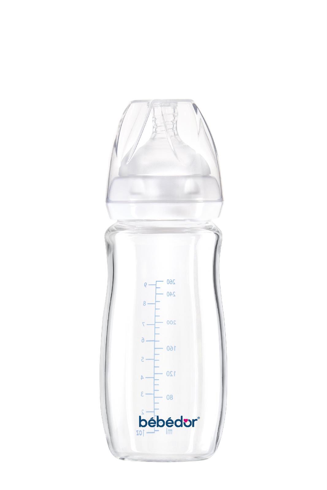 زجاجة رضاعة بيبيدور الزجاجية المقاومة للحرارة ذات الفم الواسع سعة 260 مل 51301 المميزات؛