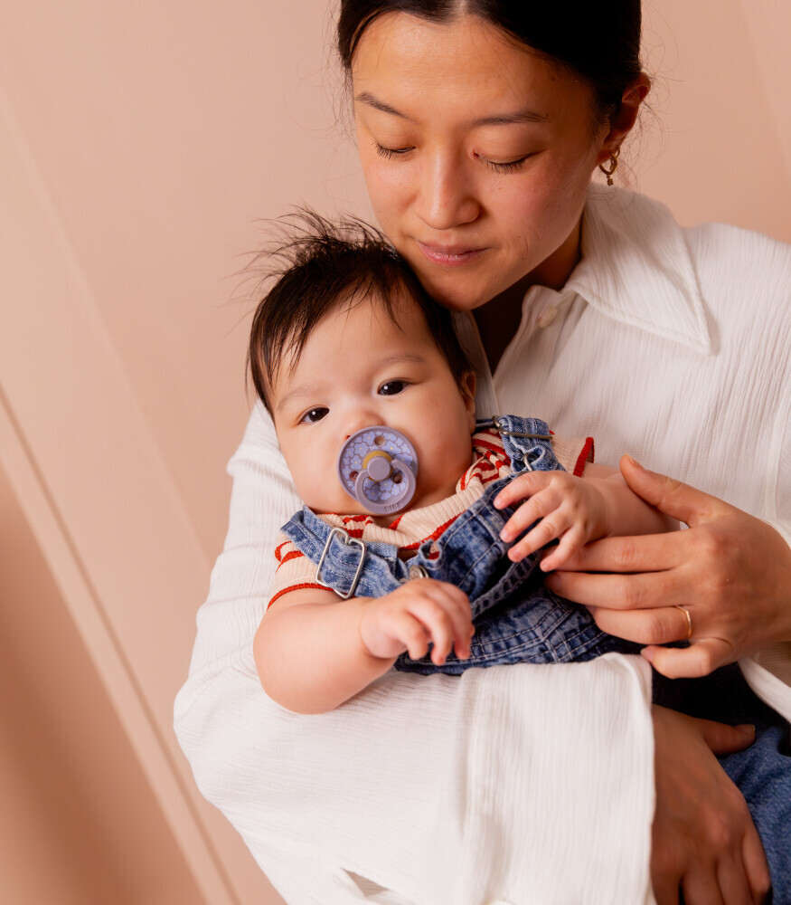 بفضل هيكلها المحدب المصمم خصيصًا، لا تلتصق لهاية Bibs بفم الطفل ولا تترك أي علامات ولا تعيق التنفس.