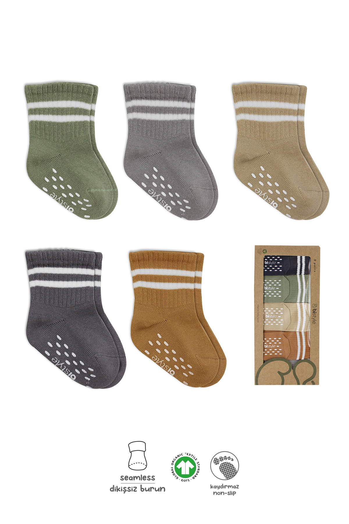 احصل على راحة وأناقة مع مجموعة من 5 جوارب قطنية بسطح مانع للانزلاق باللون البيج. تصميم مريح يناسب جميع الأوقات، مثالي للعناية اليومية قدمك. لا تفوت الفرصة لتجديد خزانة جواربك بجودة عالية!