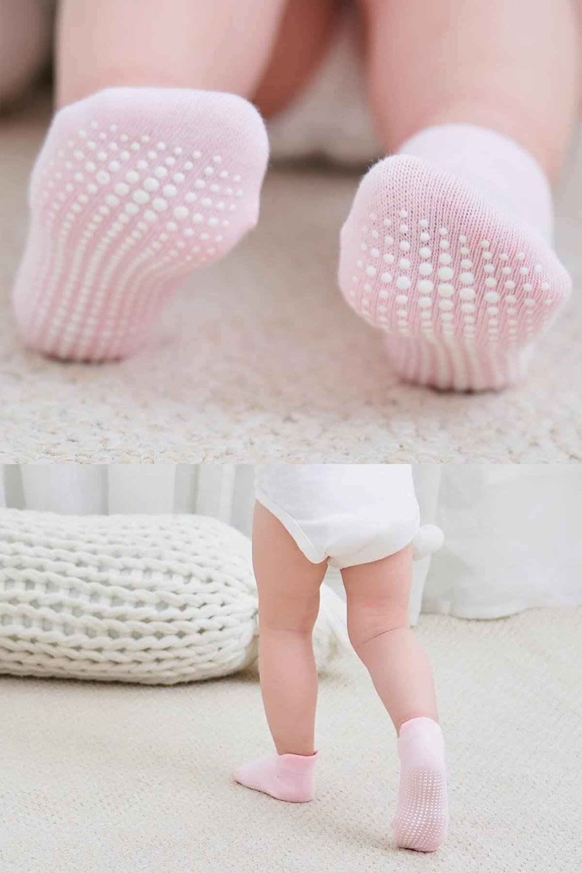 جوارب قطنية مانعة للانزلاق من بايستايل، عبوة من 6 قطع، لون وردي فاتح 20102