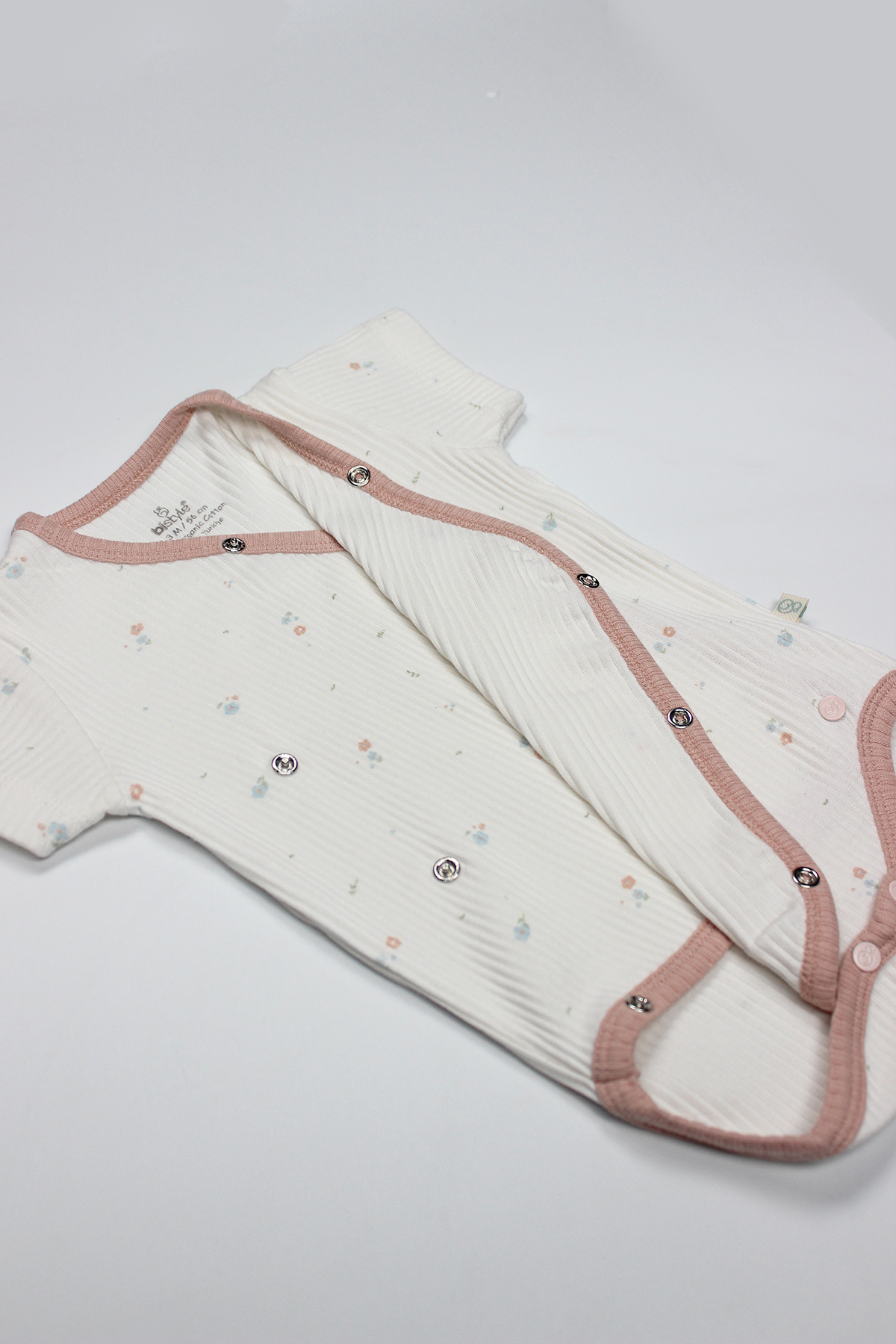 بدلة جسم قصيرة الأكمام من قطعتين من Bistyle Bloom Rose، لون بيج وردي، رقم الموديل 17119
