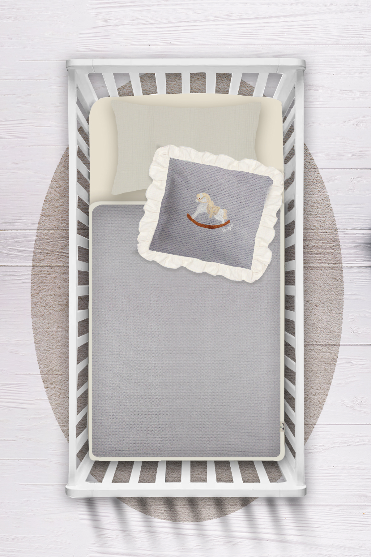 بطانية كانز بيبي مطرزة من قماش الوافل والموسلين Knz-021 بلون رمادي فقاعي