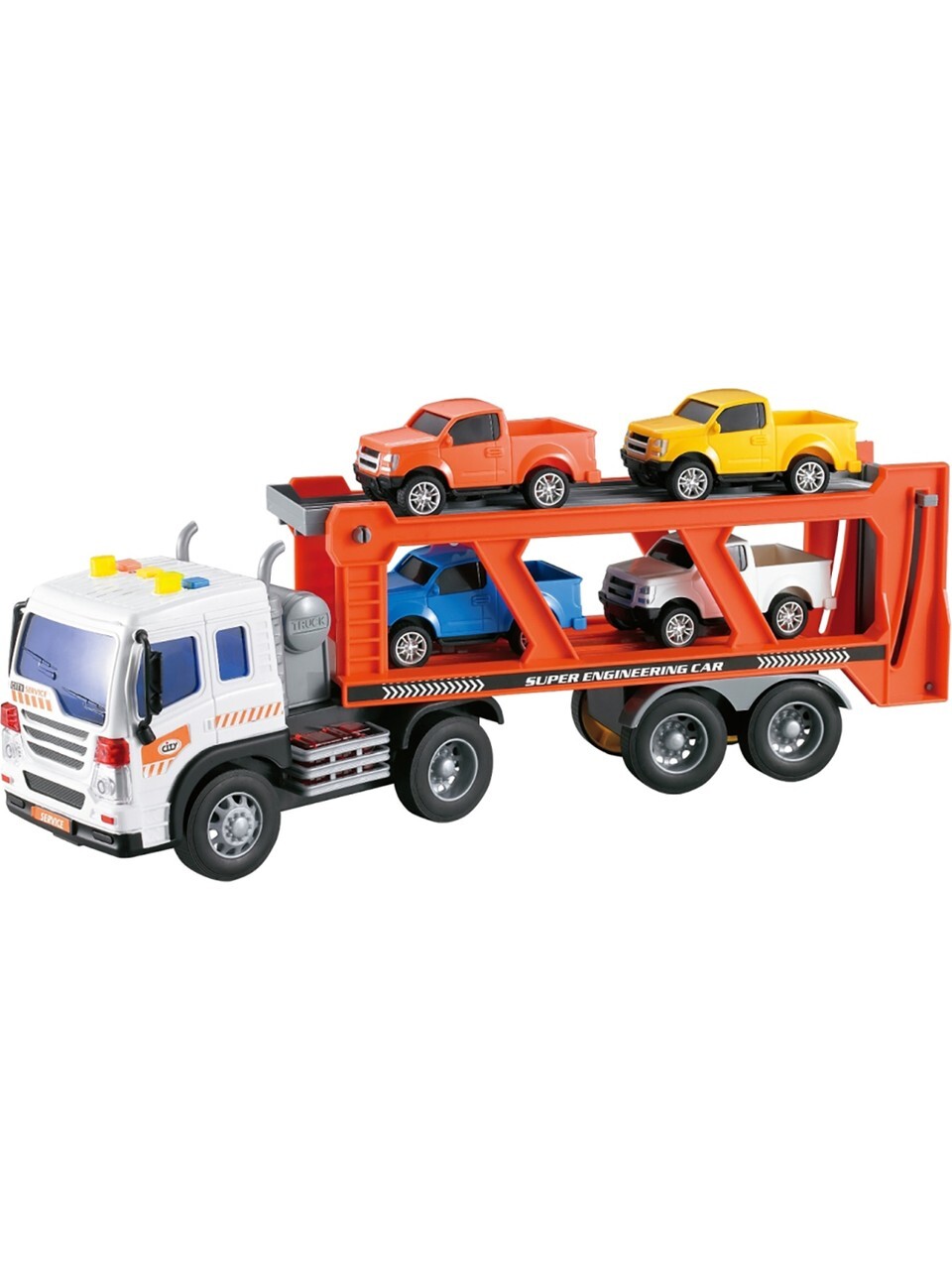 شاحنة نقل سيارات صوتية ومضيئة تجمع بين المرح والإثارة للأطفال، بتصميم جذاب وألوان زاهية. لعبة مثالية لتنمية خيال صغارك وتشجيعهم على اللعب الإبداعي. امنح طفلك تجربة لعب لا تُنسى مع هذه الشاحنة الفريدة!