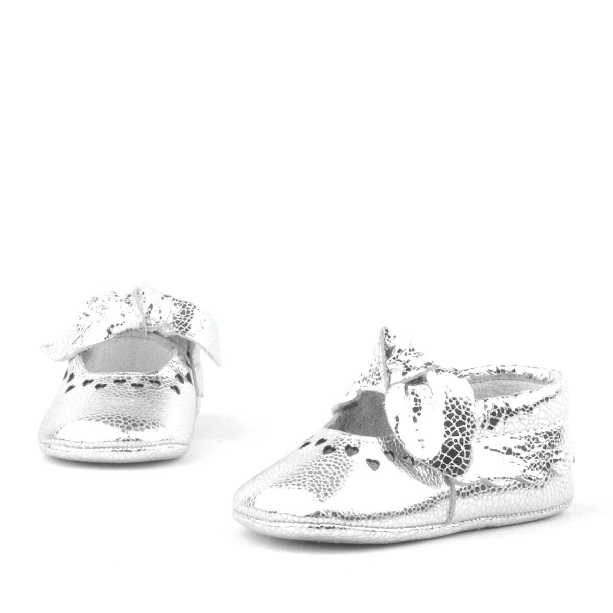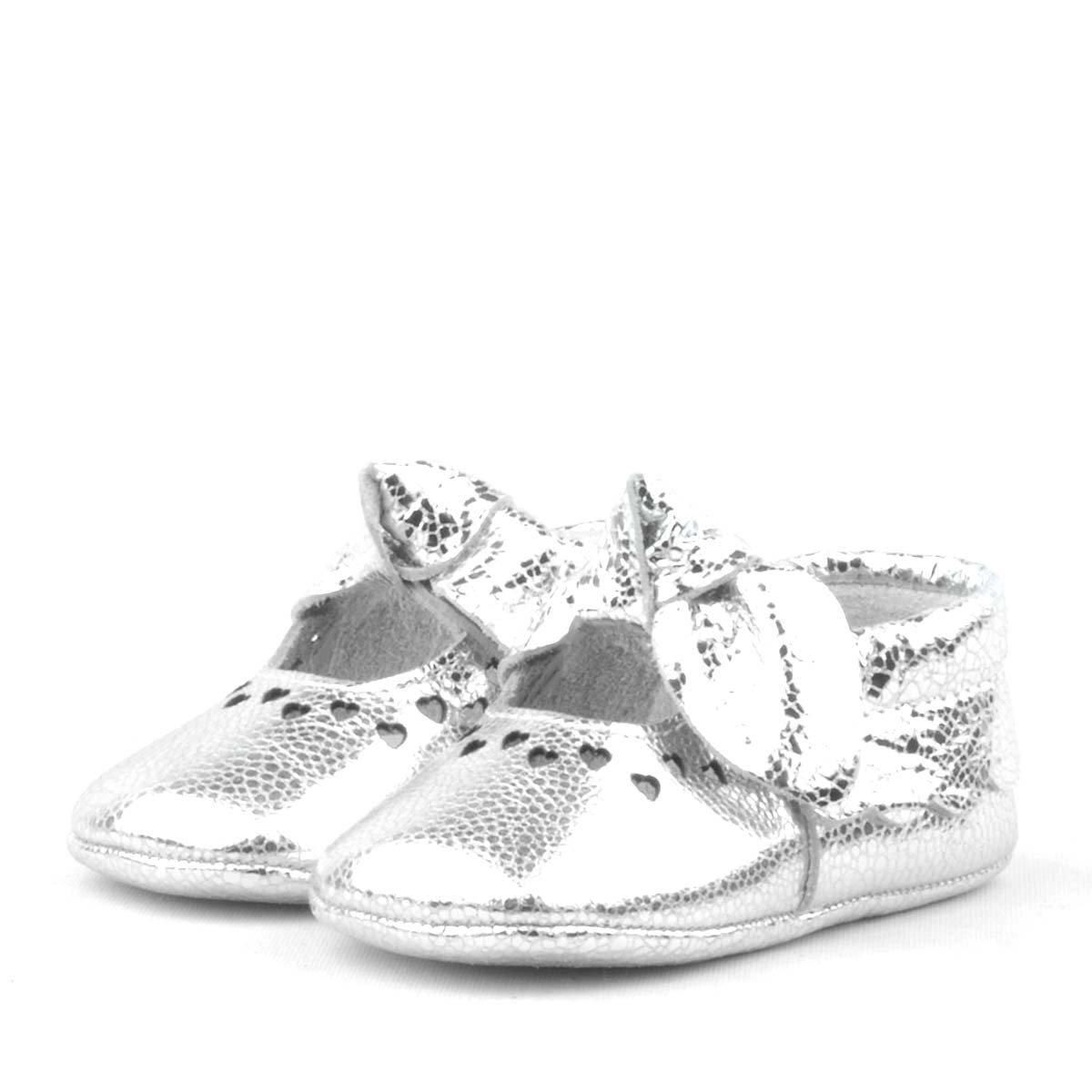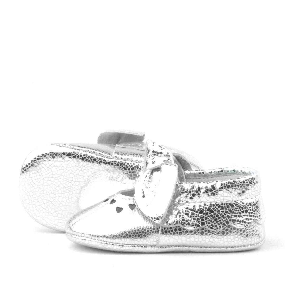 حذاء كوكو للأطفال مصنوع من الجلد الطبيعي ومرن ومزين بفيونكة فضية