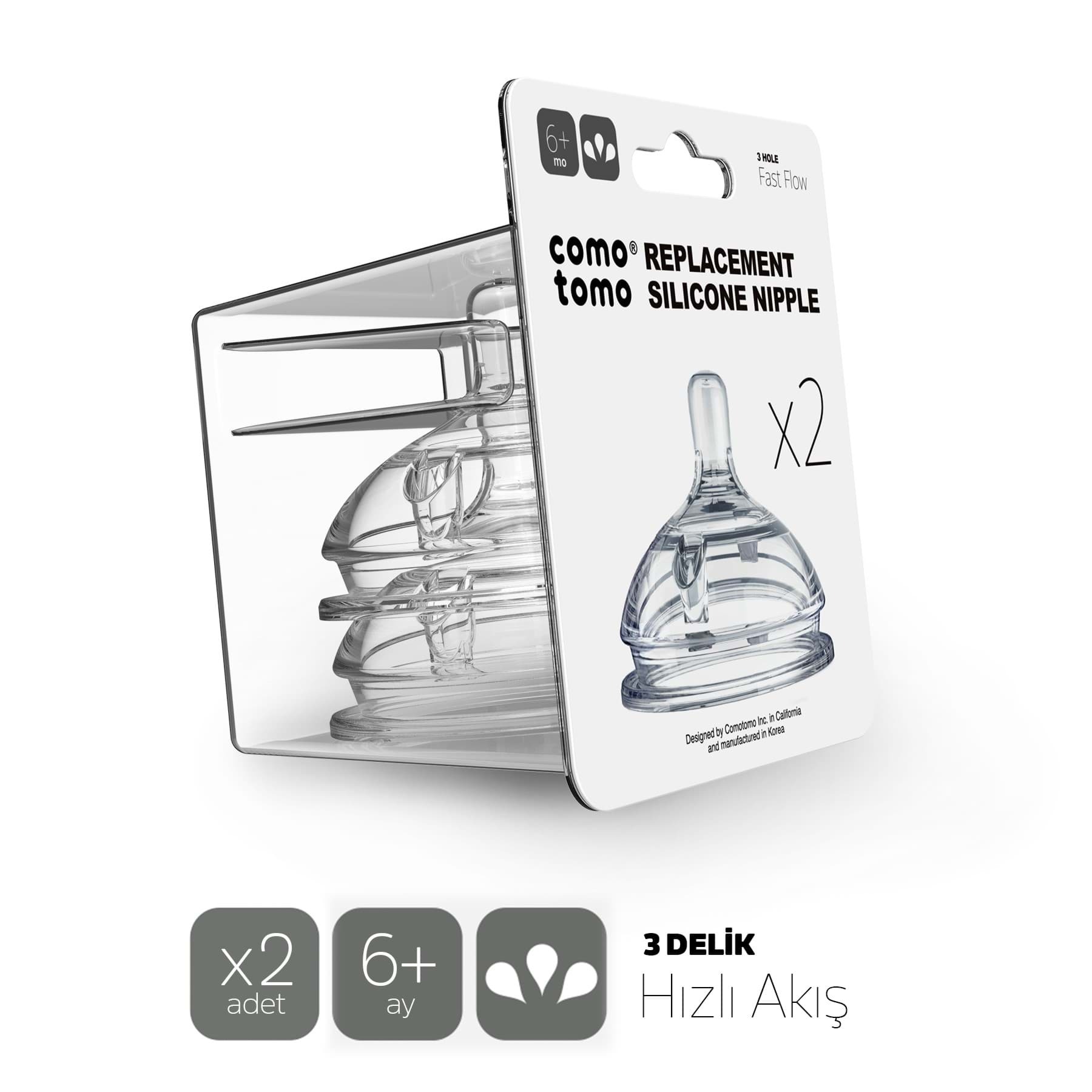 كوموتومو عبوة من قطعتين من حلمة الزجاجة السيليكونية سريعة التدفق للأطفال من عمر 6 أشهر فما فوق المميزات: