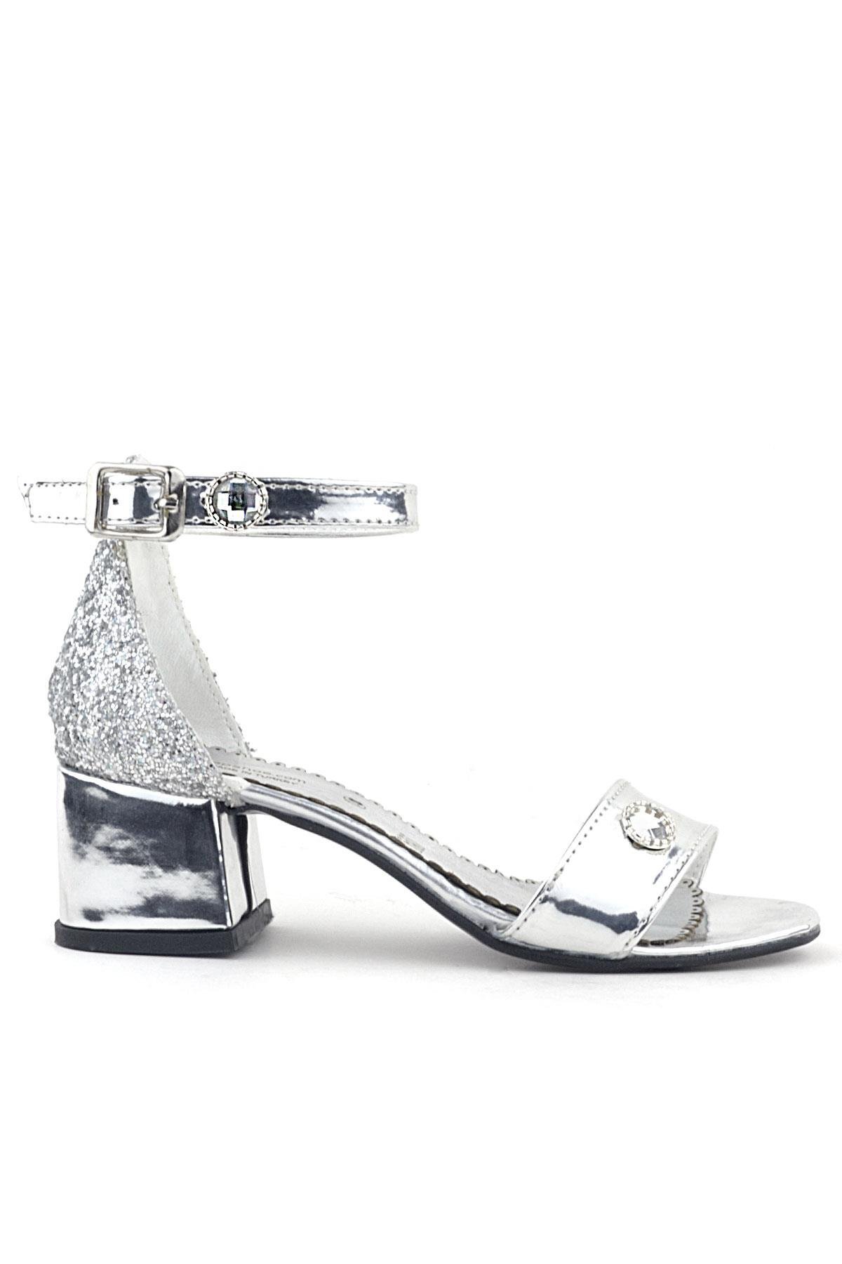 حذاء سهرة لامع بكعب عالٍ ومرصع بالأحجار للفتيات من إلسا باللون الفضي العاكس