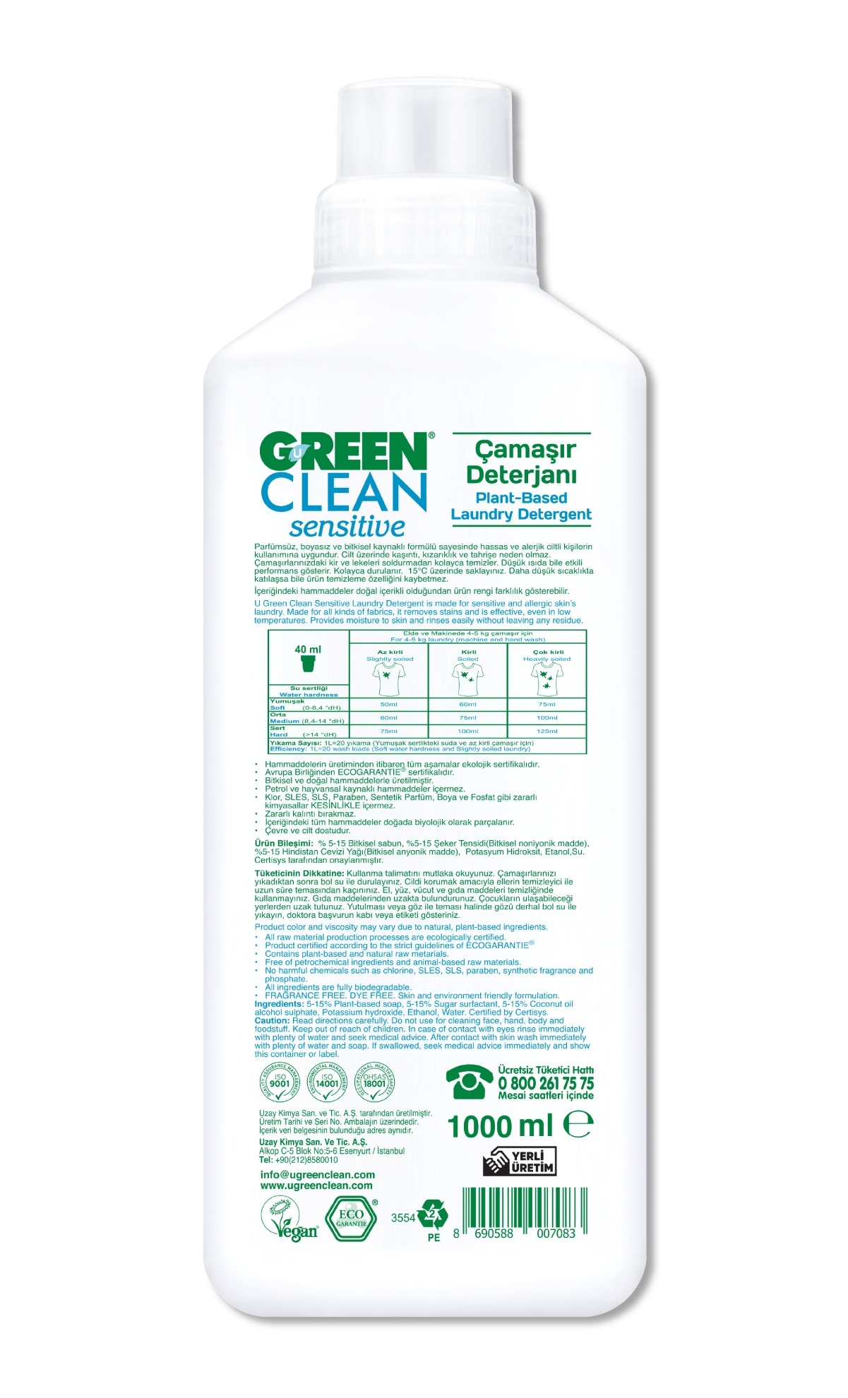 منظف الغسيل العشبي الحساس عديم الرائحة من جرين كلين 1000 مل مميزات؛