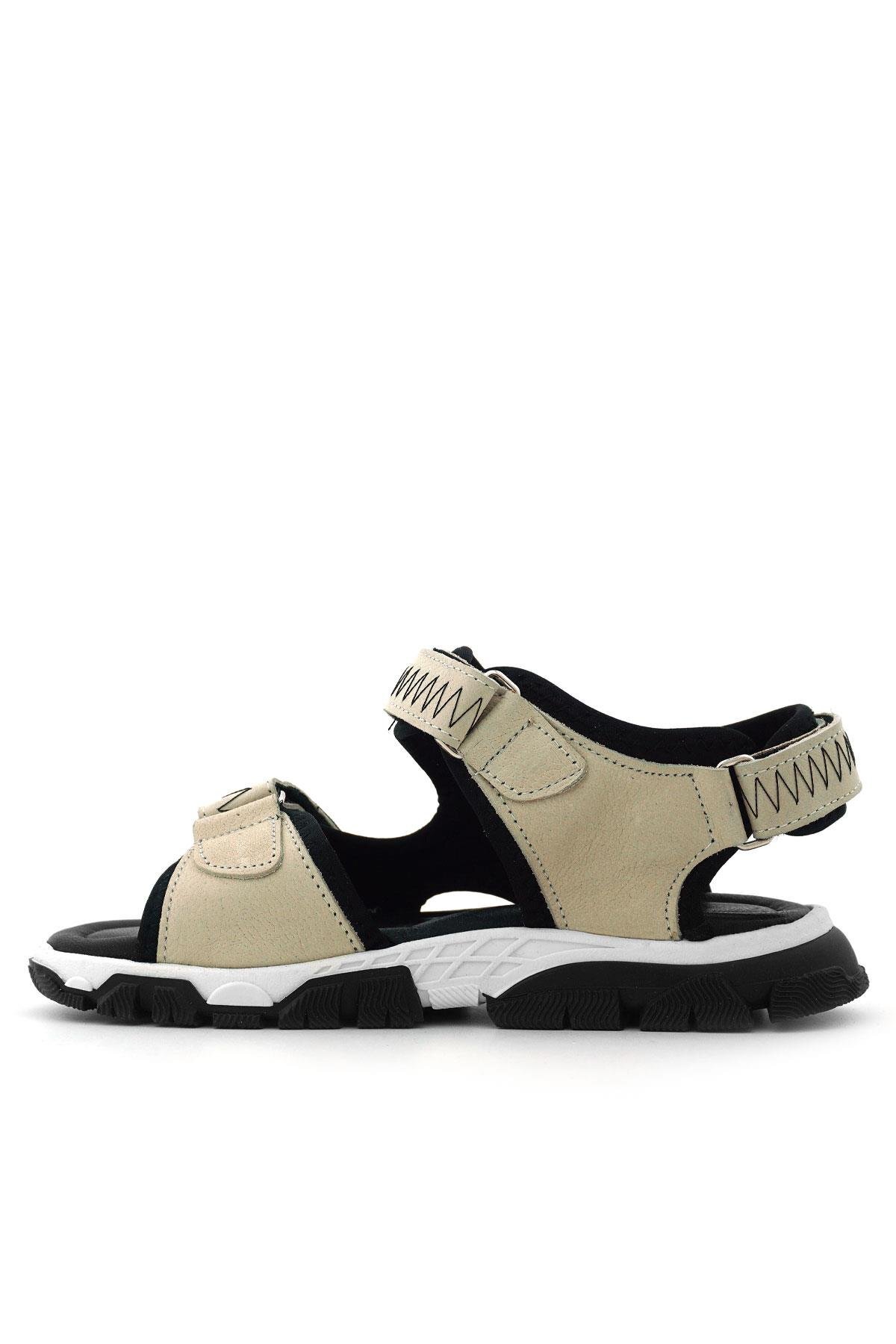 صندل فيلكرو للأولاد من الجلد الطبيعي باللون البيج والأسود
