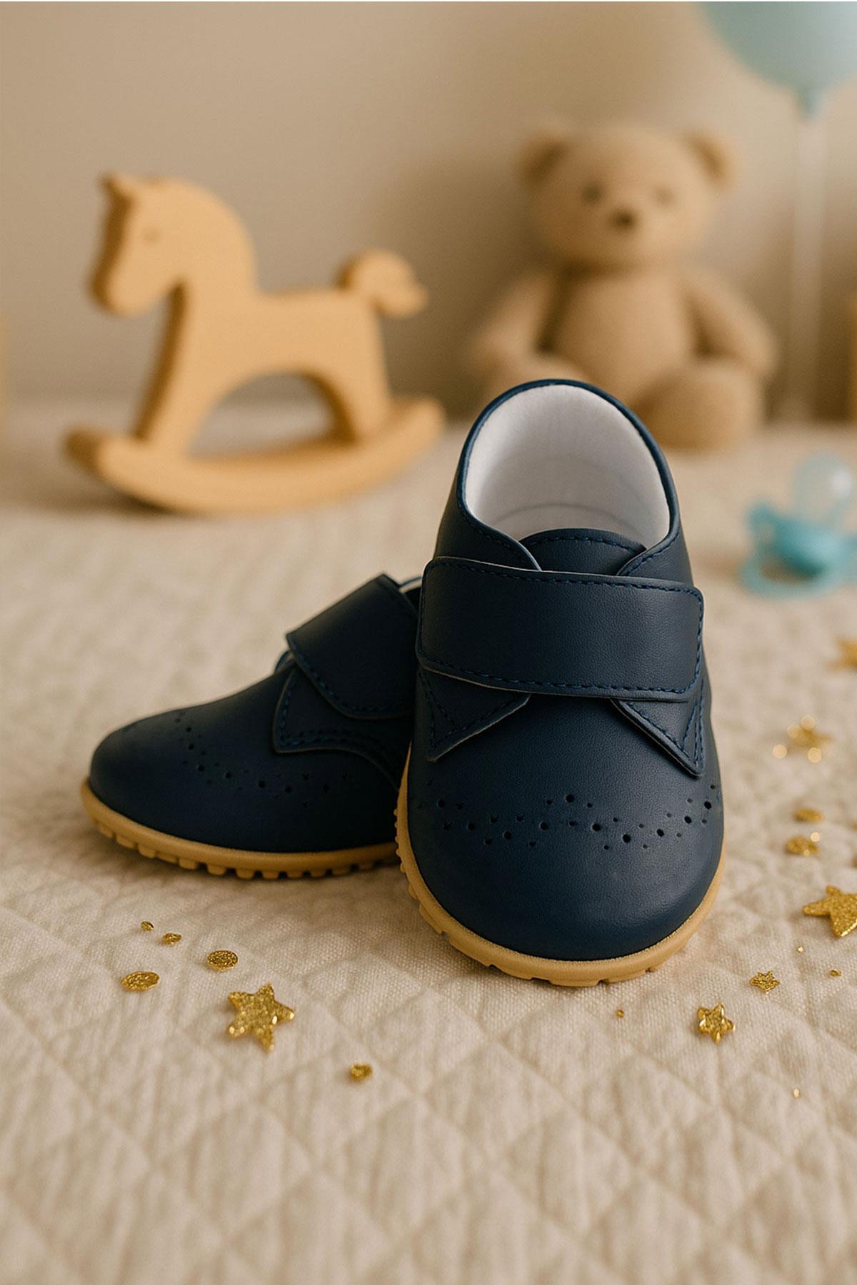 حذاء أطفال من الجلد الطبيعي بشريط فيلكرو أزرق داكن