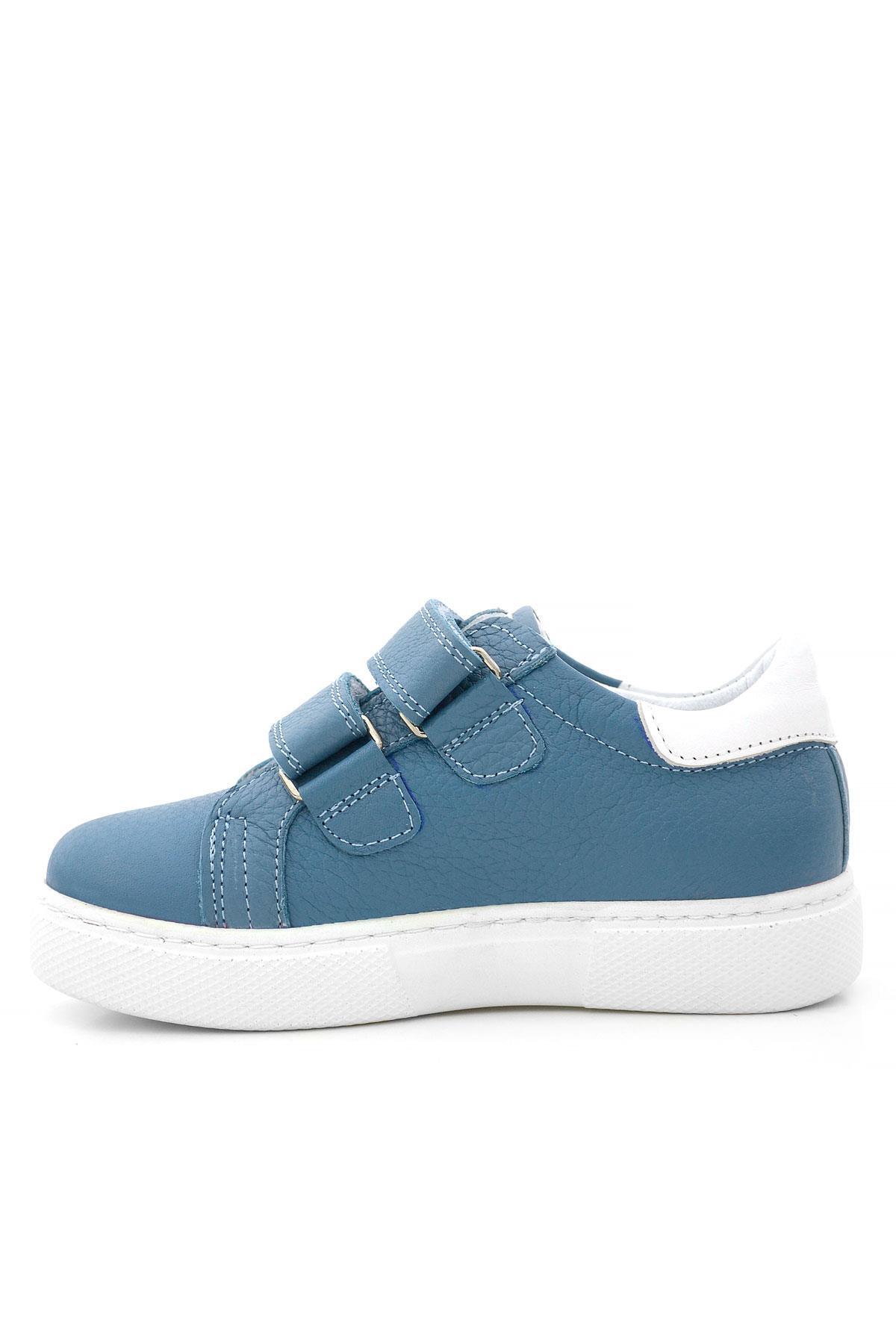 حذاء رياضي للأطفال من الجلد الطبيعي باللون الأزرق والأبيض مع شريط فيلكرو