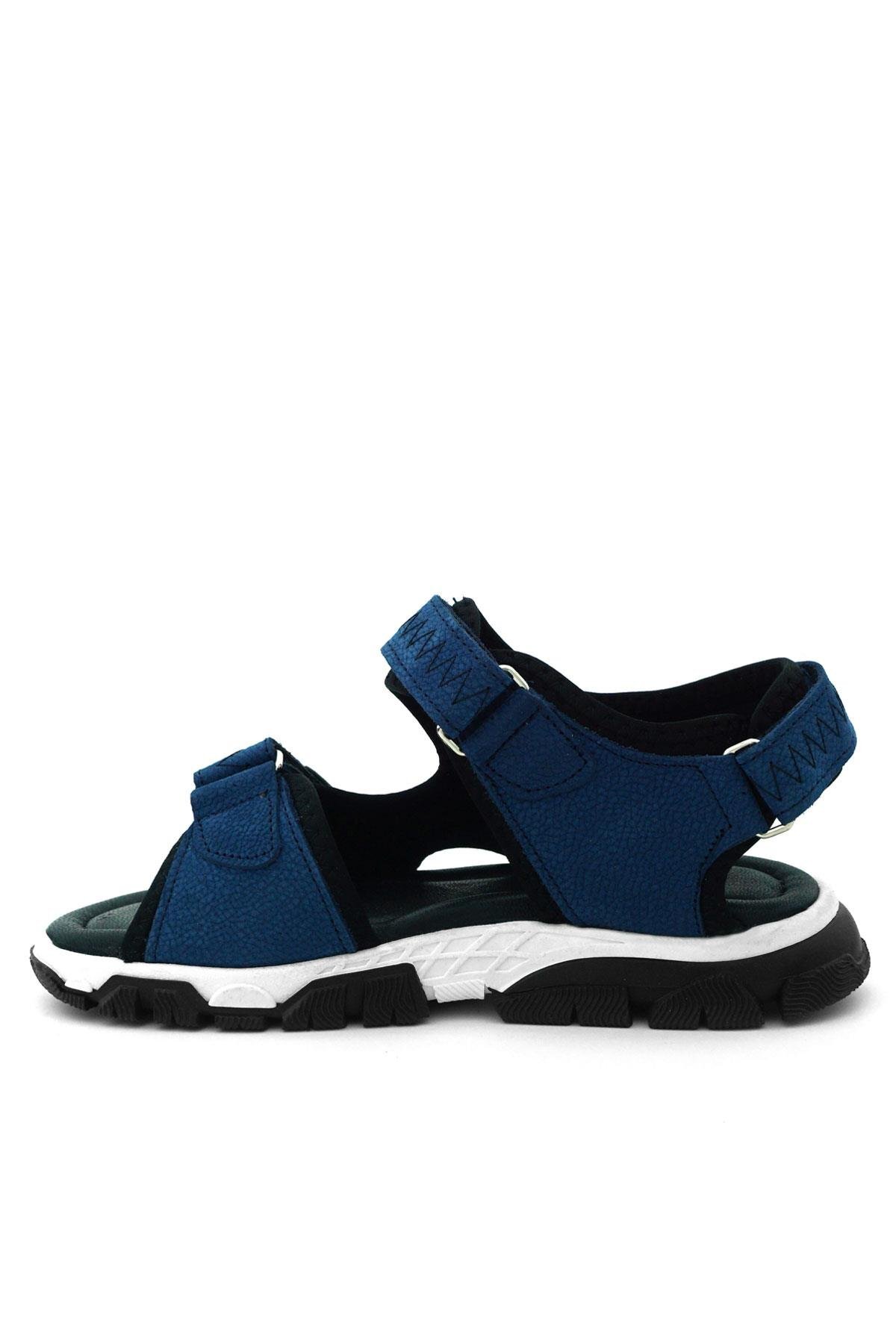 صندل فيلكرو أزرق أسود من الجلد الطبيعي للأولاد