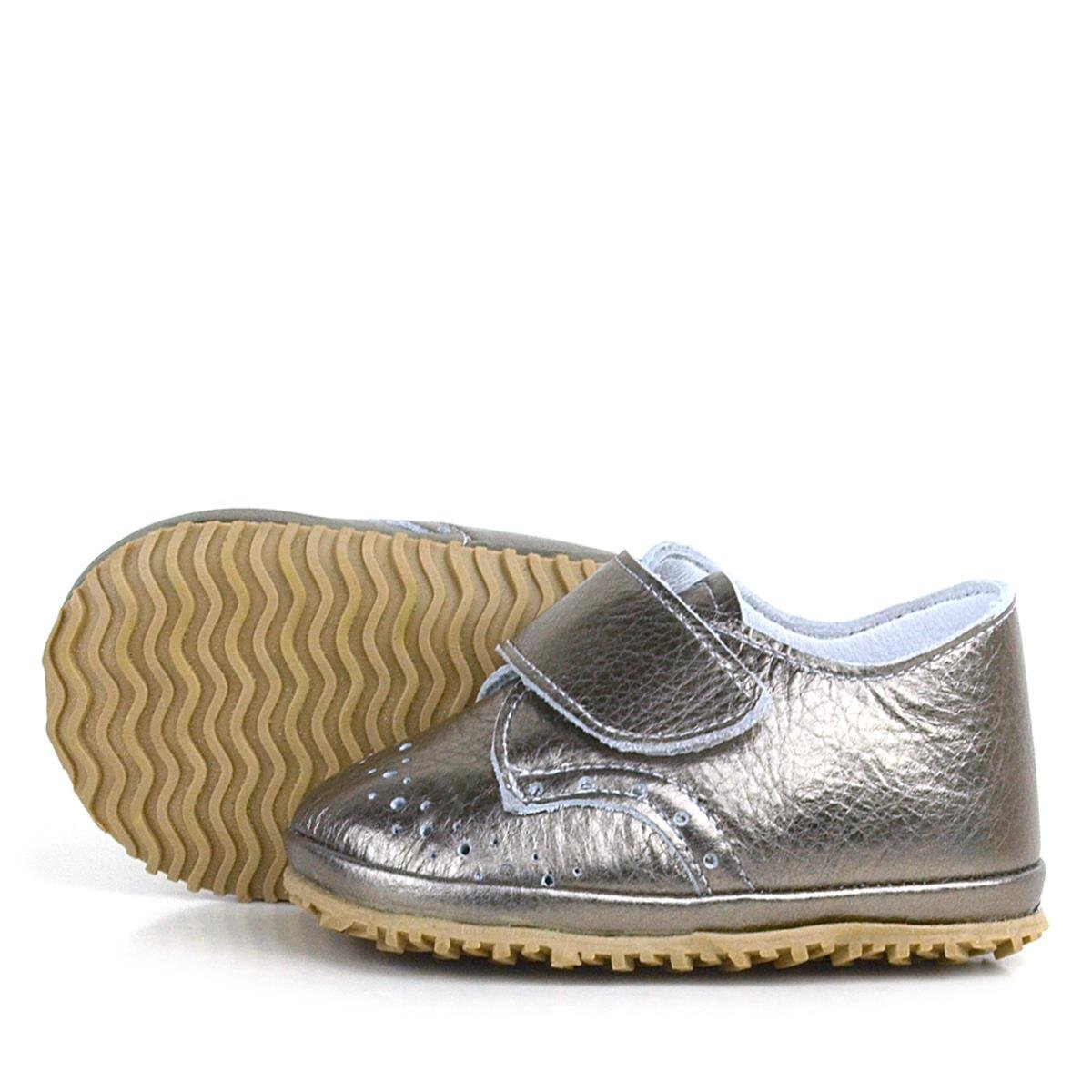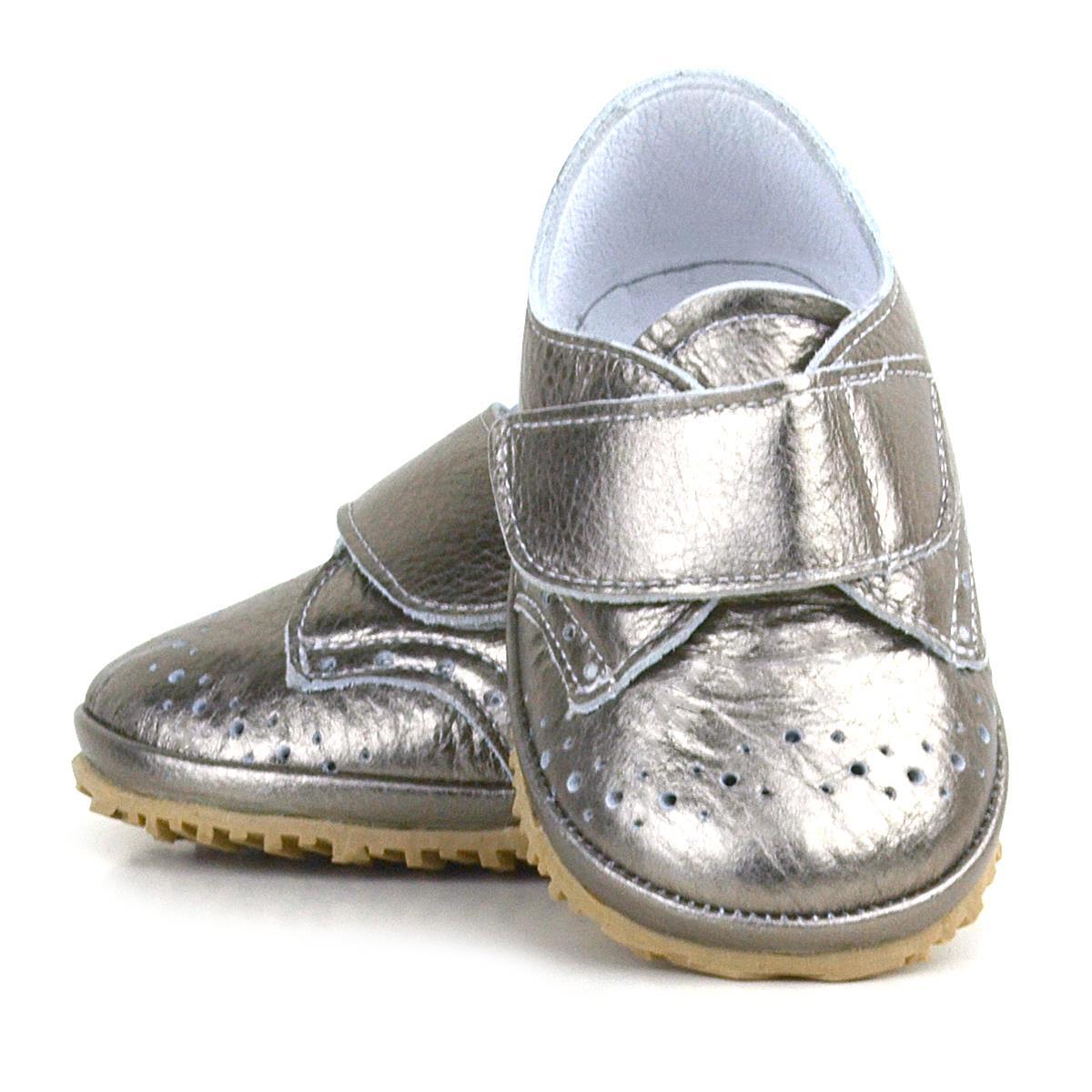 حذاء أطفال من الجلد الطبيعي اللامع البلاتيني مع شريط فيلكرو