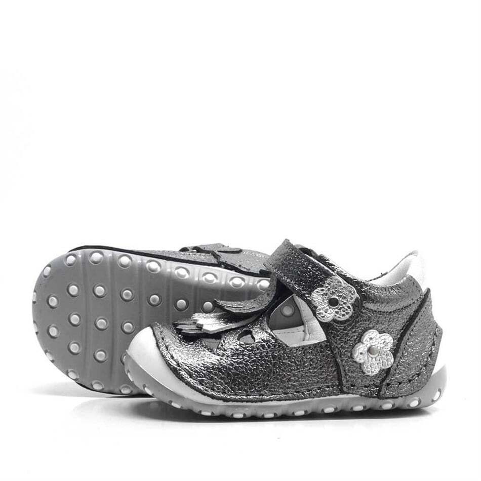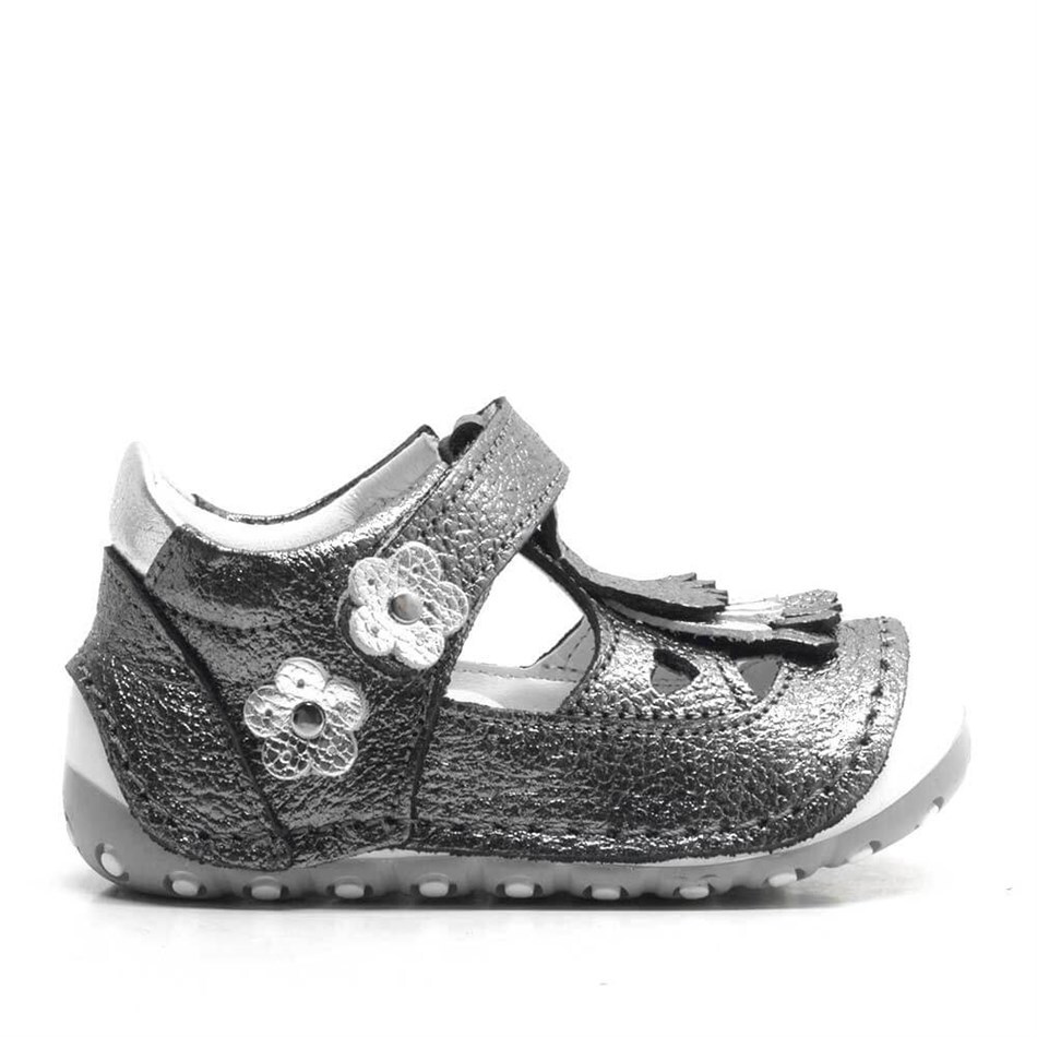 حذاء صيفي من الجلد الطبيعي مع شرابات فضية وشريط فيلكرو من First Step