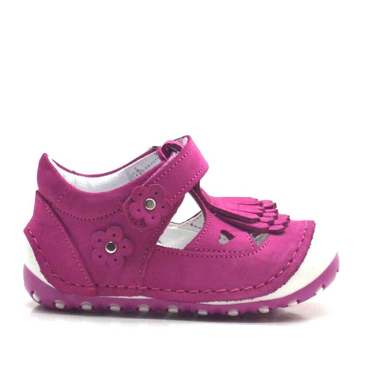 حذاء صيفي من الجلد الطبيعي مزين بشراشيب وردية اللون مع شريط فيلكرو