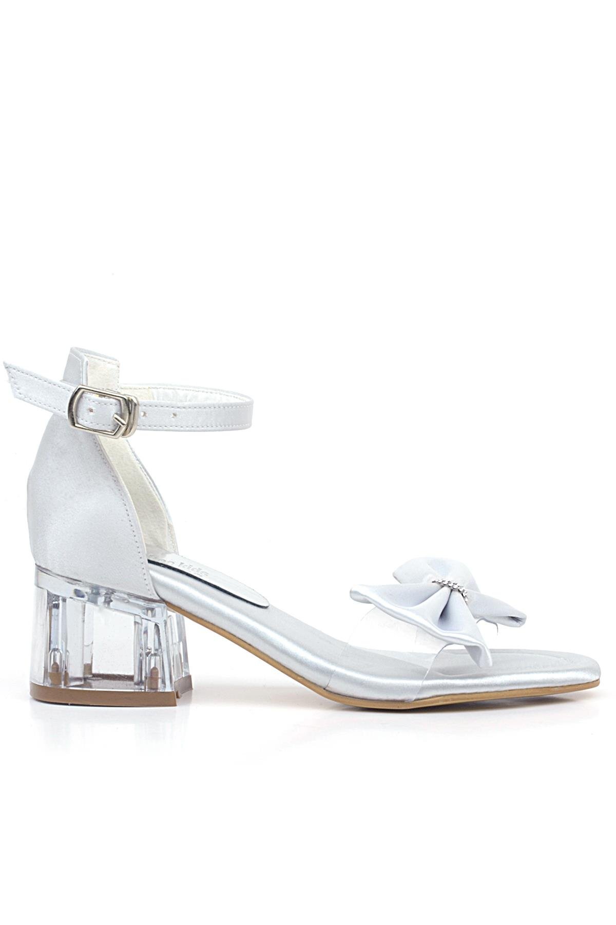 حذاء لويزا فضي شفاف بحزام واحد للفتيات في المساء
