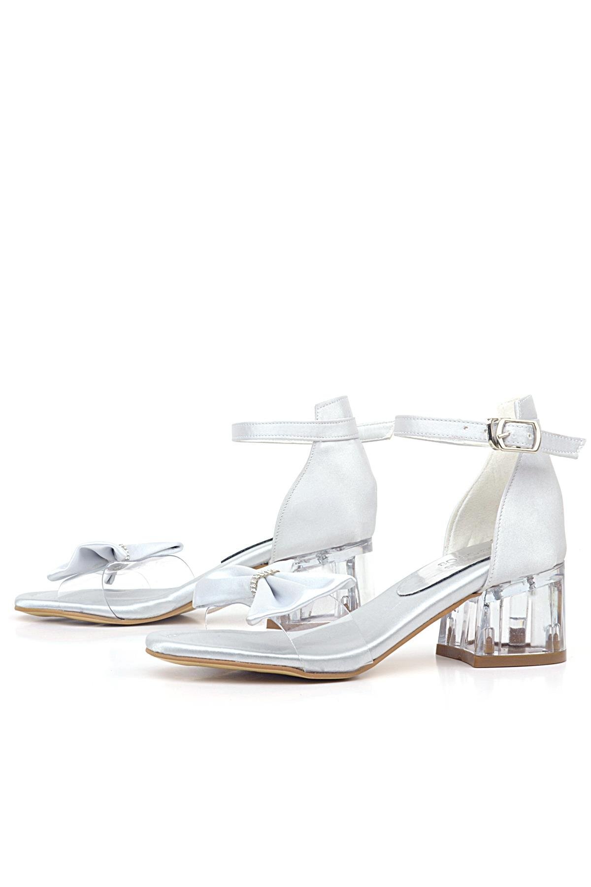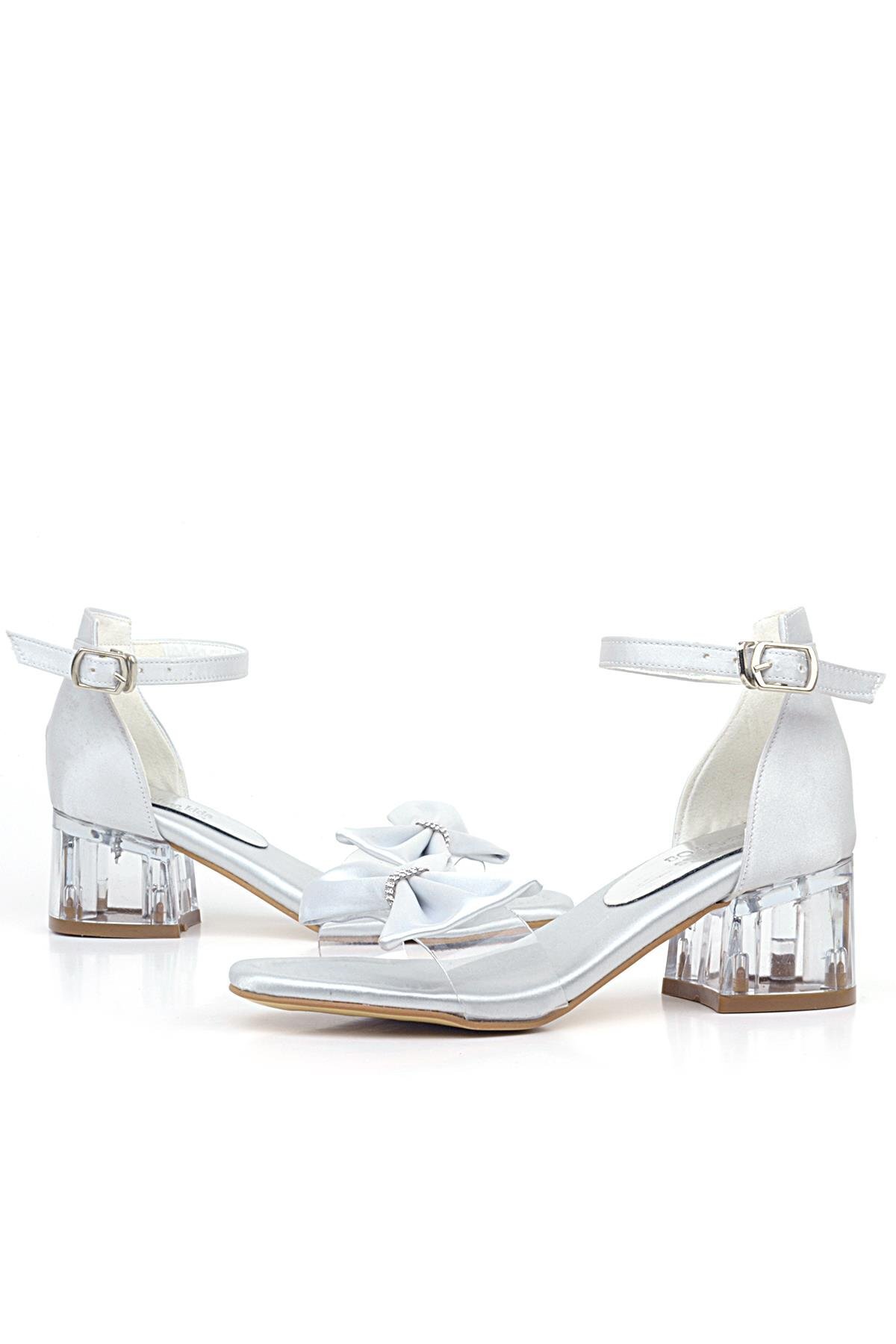 حذاء جيسي سيلفر ساتان ريبون للبنات بكعب عالٍ