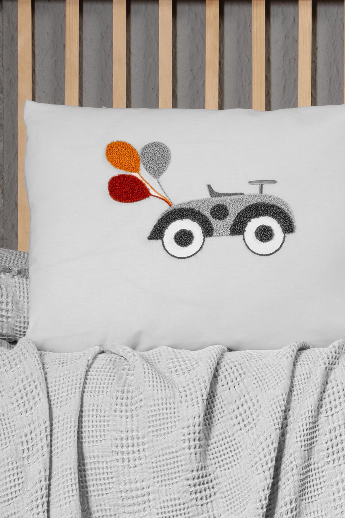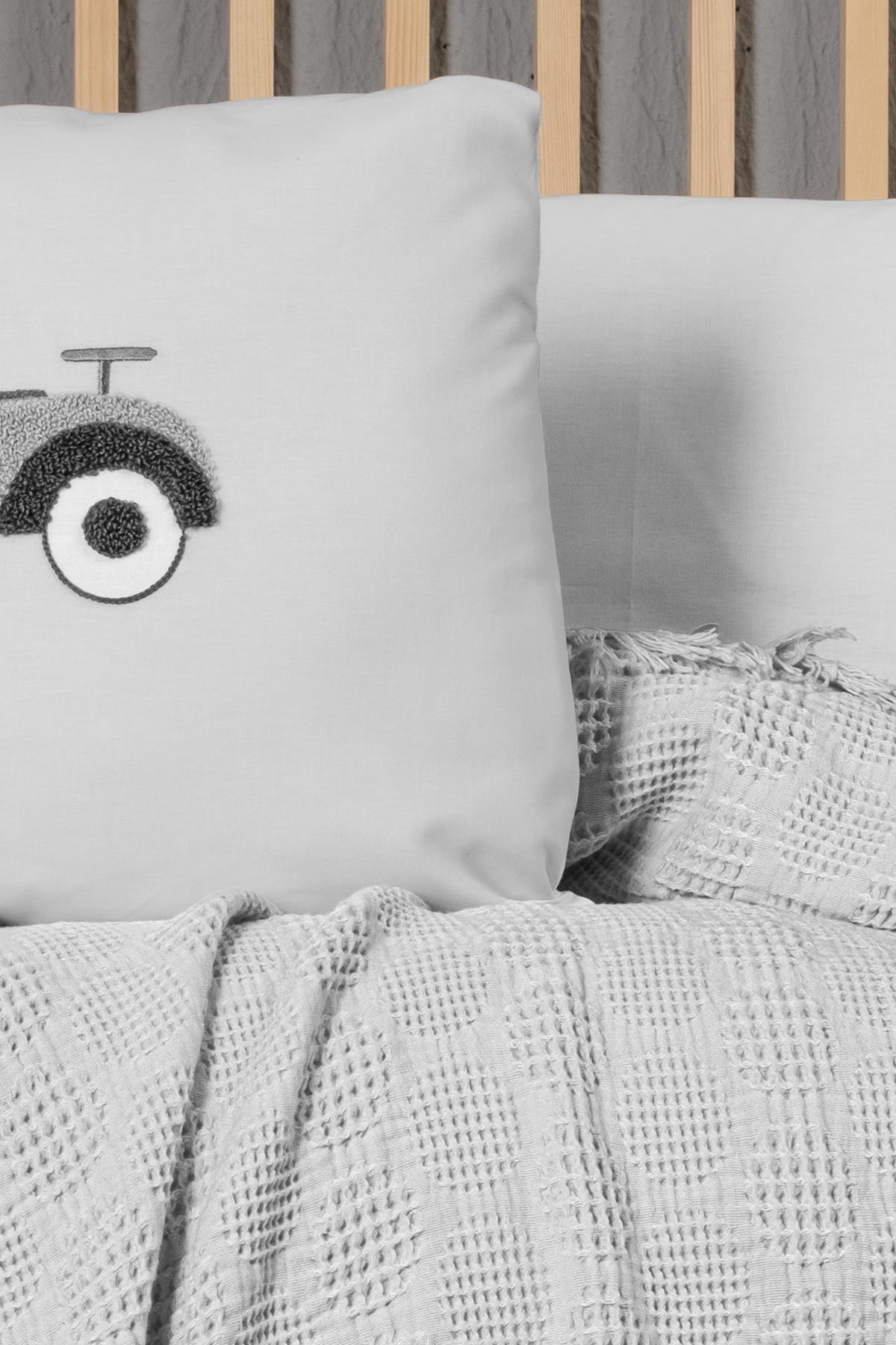 بطانية كانز بيبي مطرزة من قماش الوافل والموسلين Knz-021 بلون رمادي فقاعي - 2