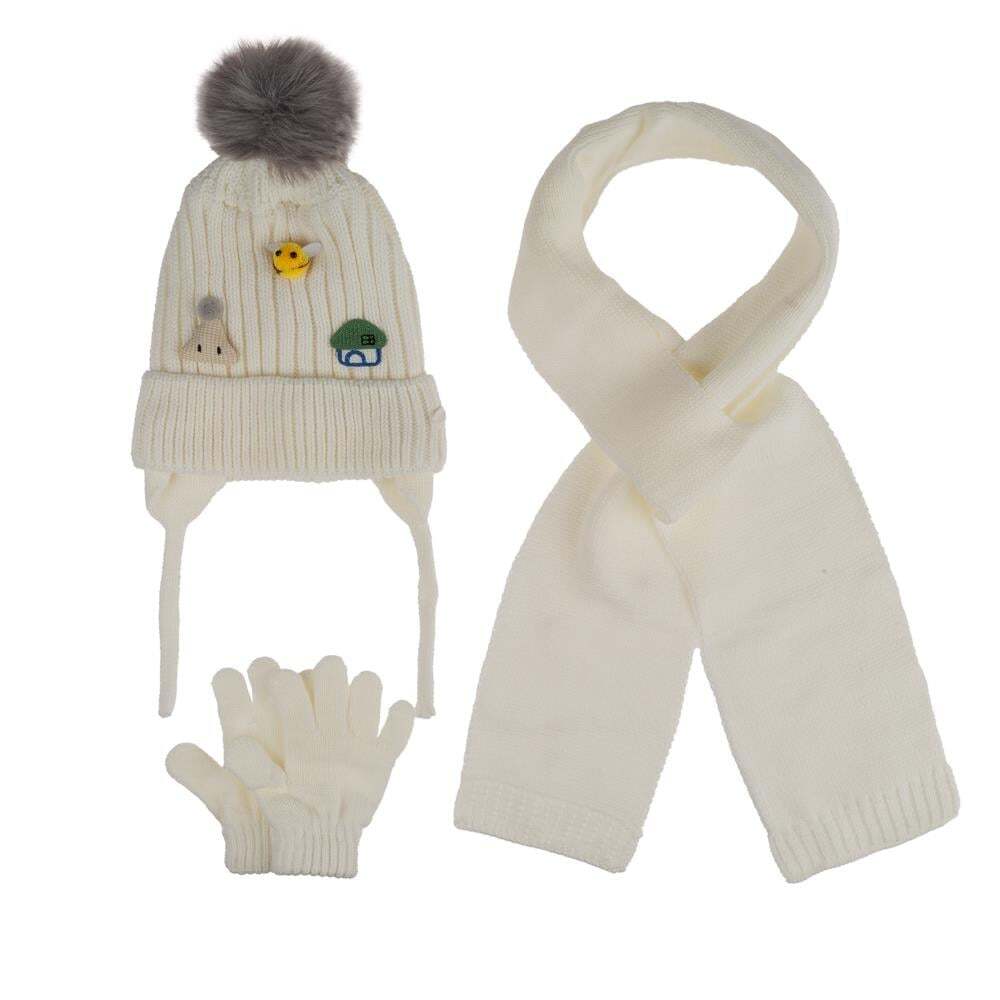 طقم وشاح وقفازات للأولاد من Kitti Bebe (من سنة إلى أربع سنوات) K24160-09 أبيض