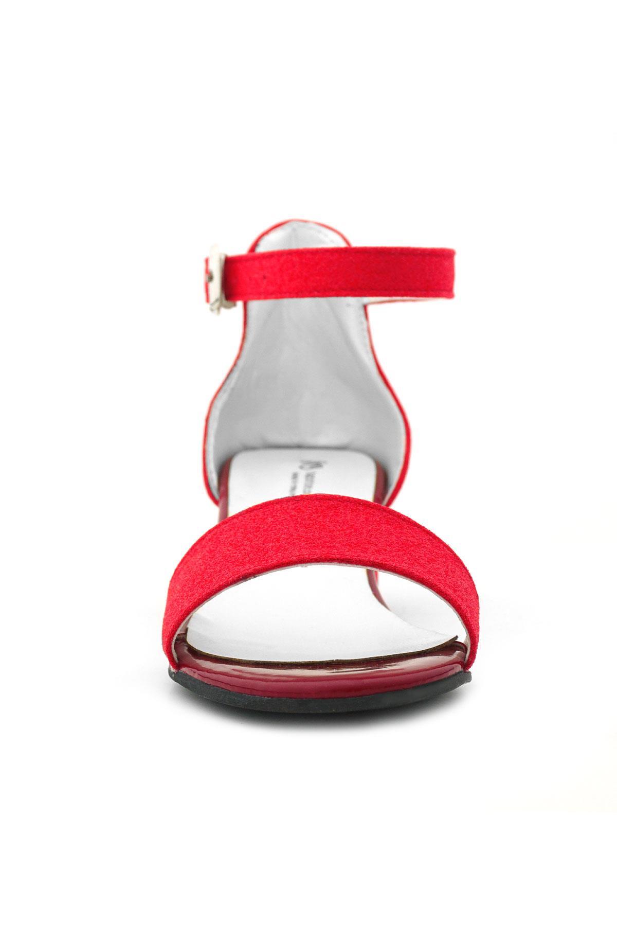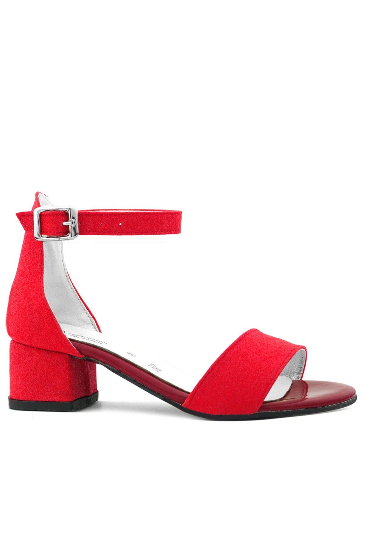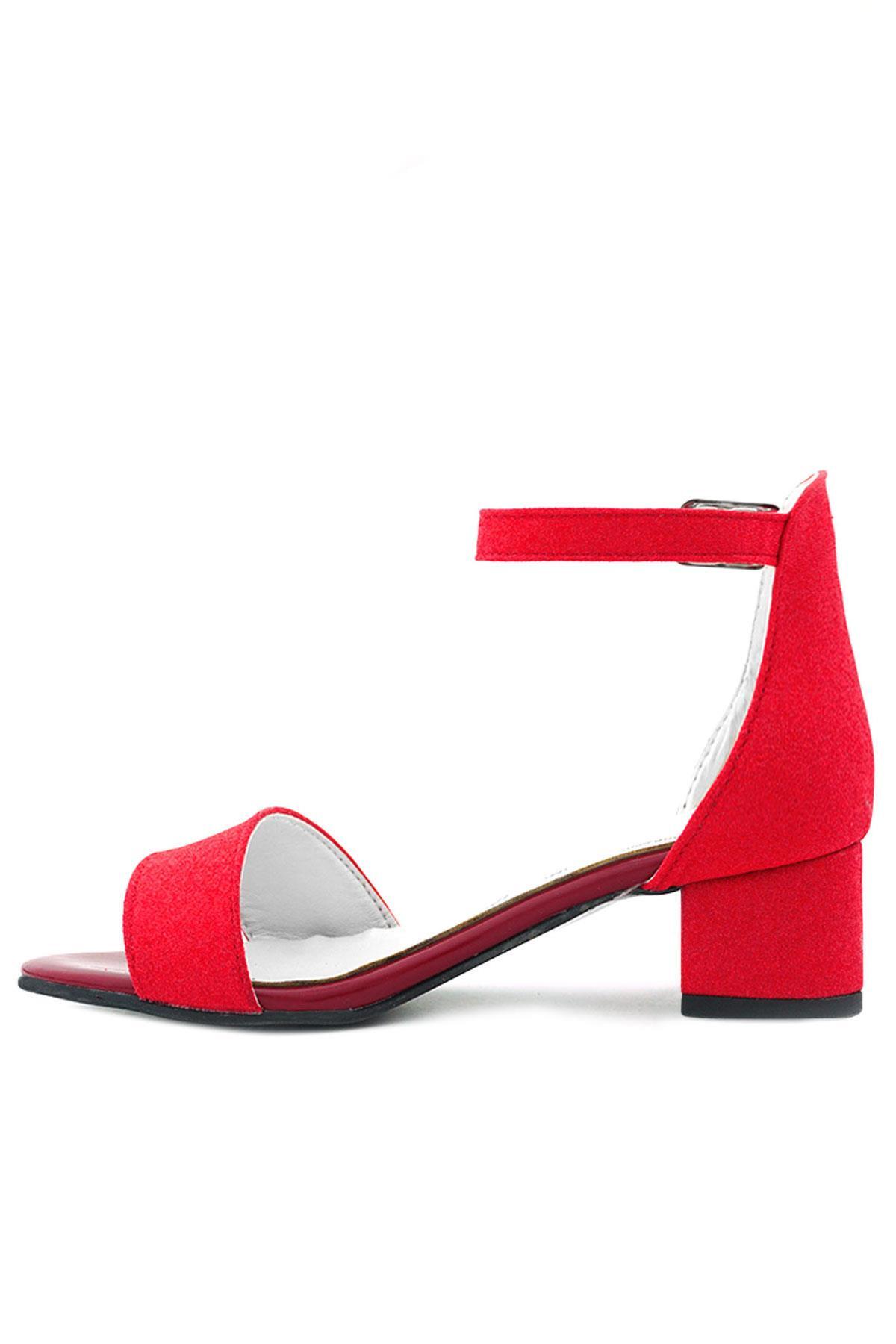حذاء سهرة بكعب عالٍ بحزام واحد باللون الأحمر اللامع للفتيات من ليلو