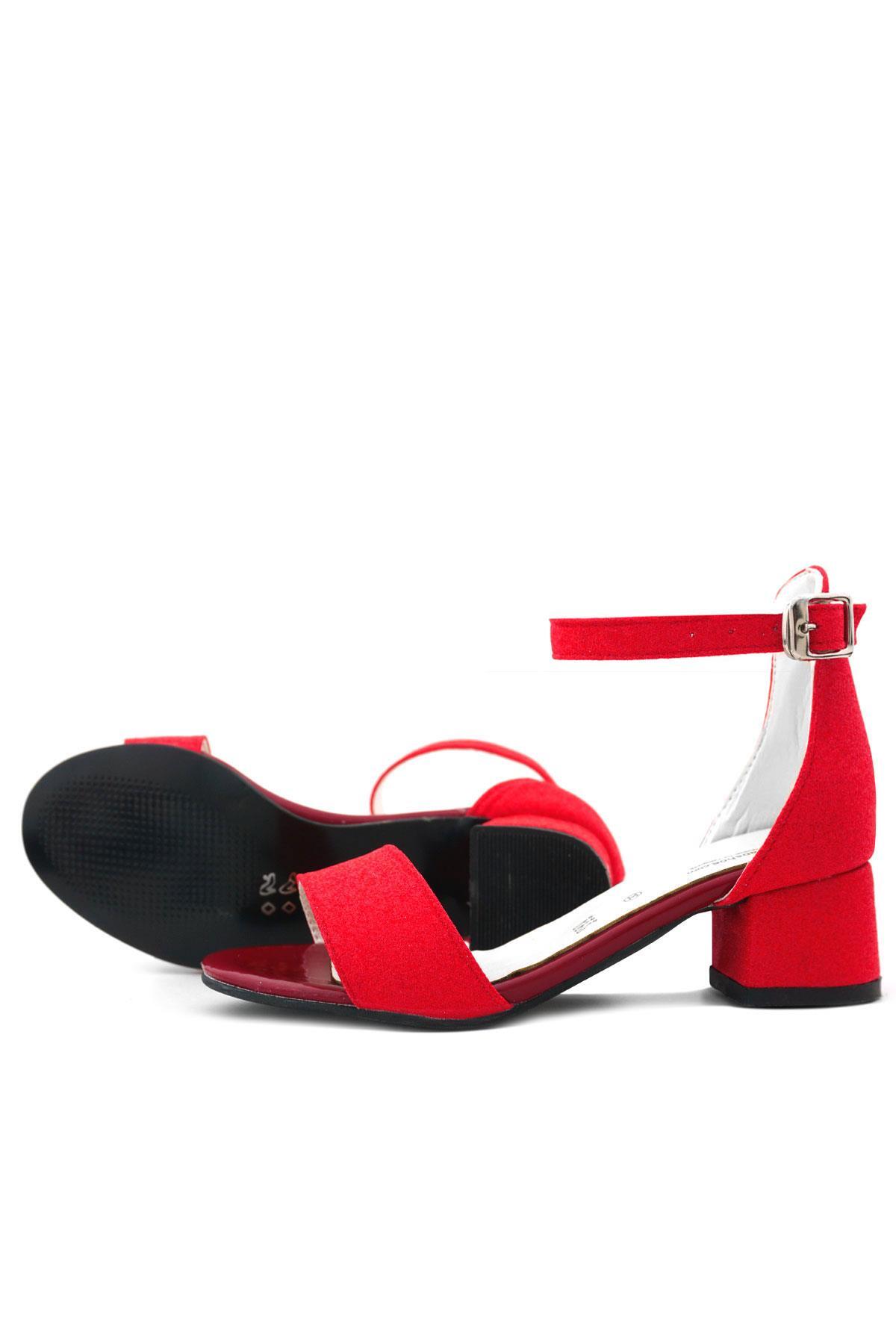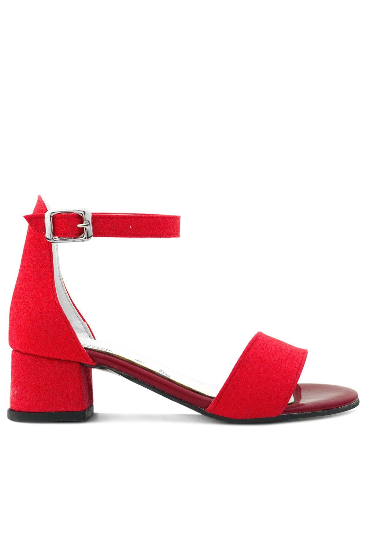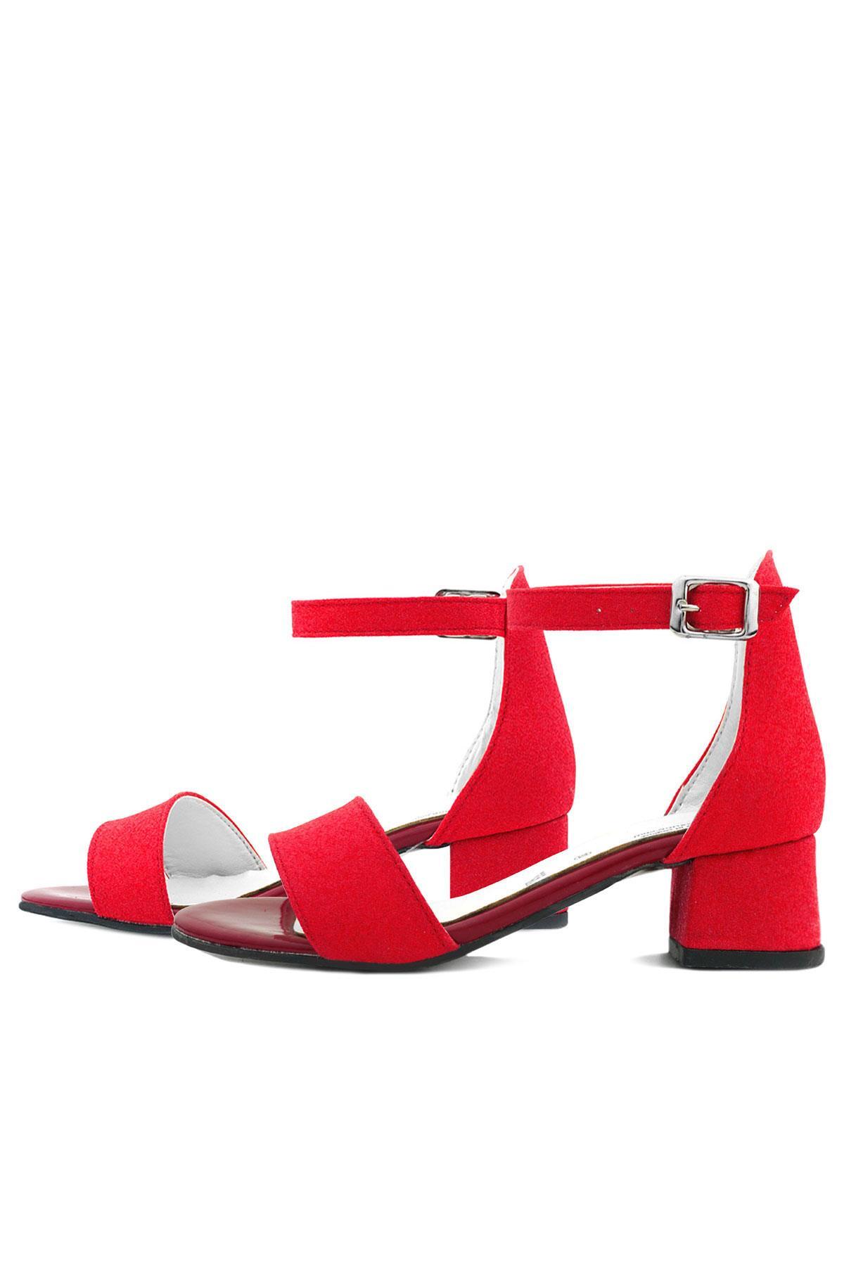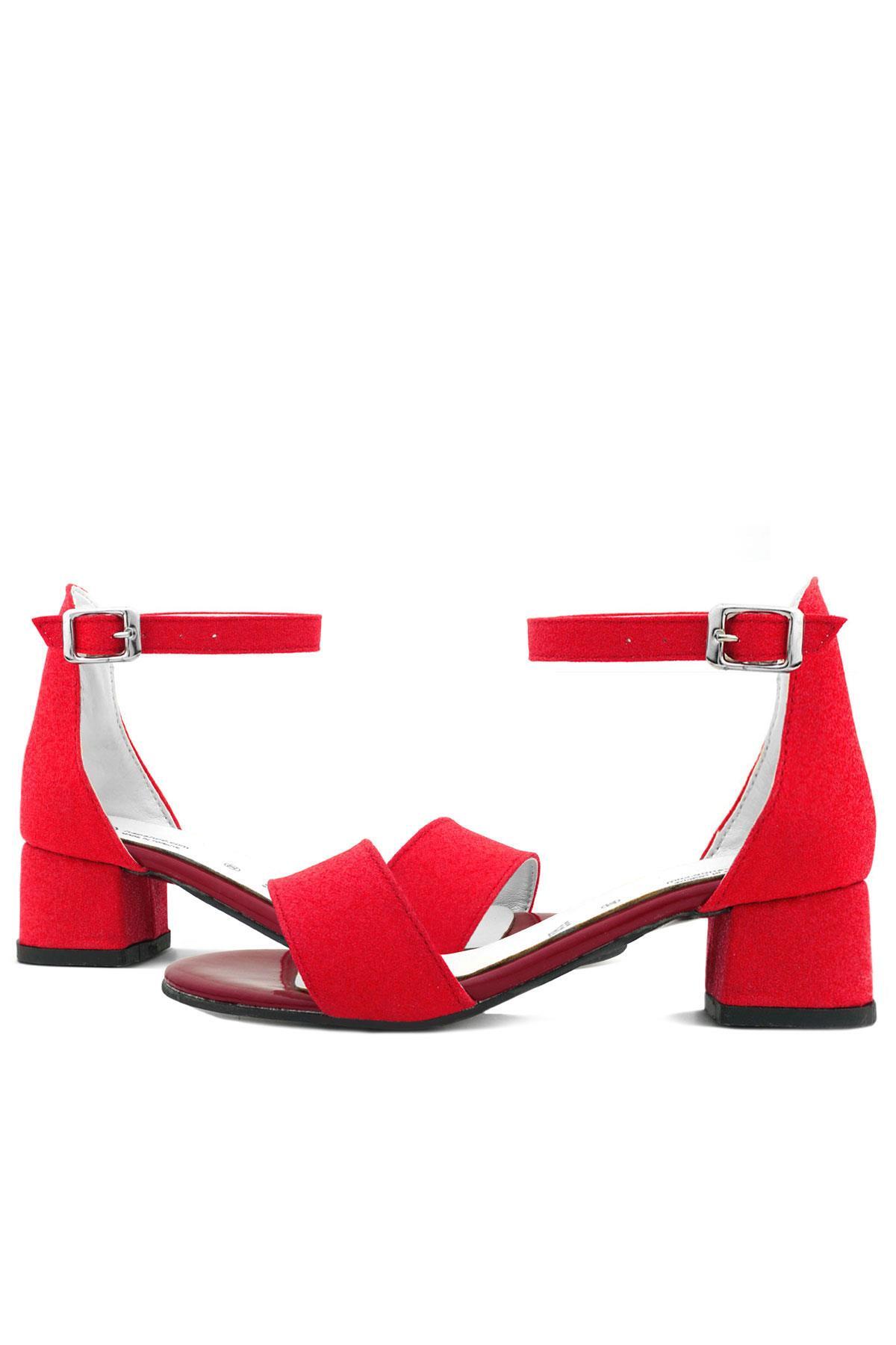 حذاء سهرة بكعب عالٍ بحزام واحد باللون الأحمر اللامع للفتيات من ليلو