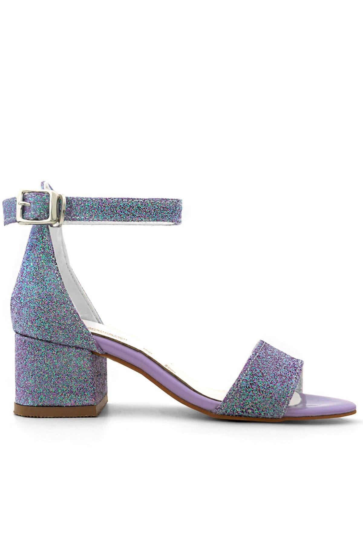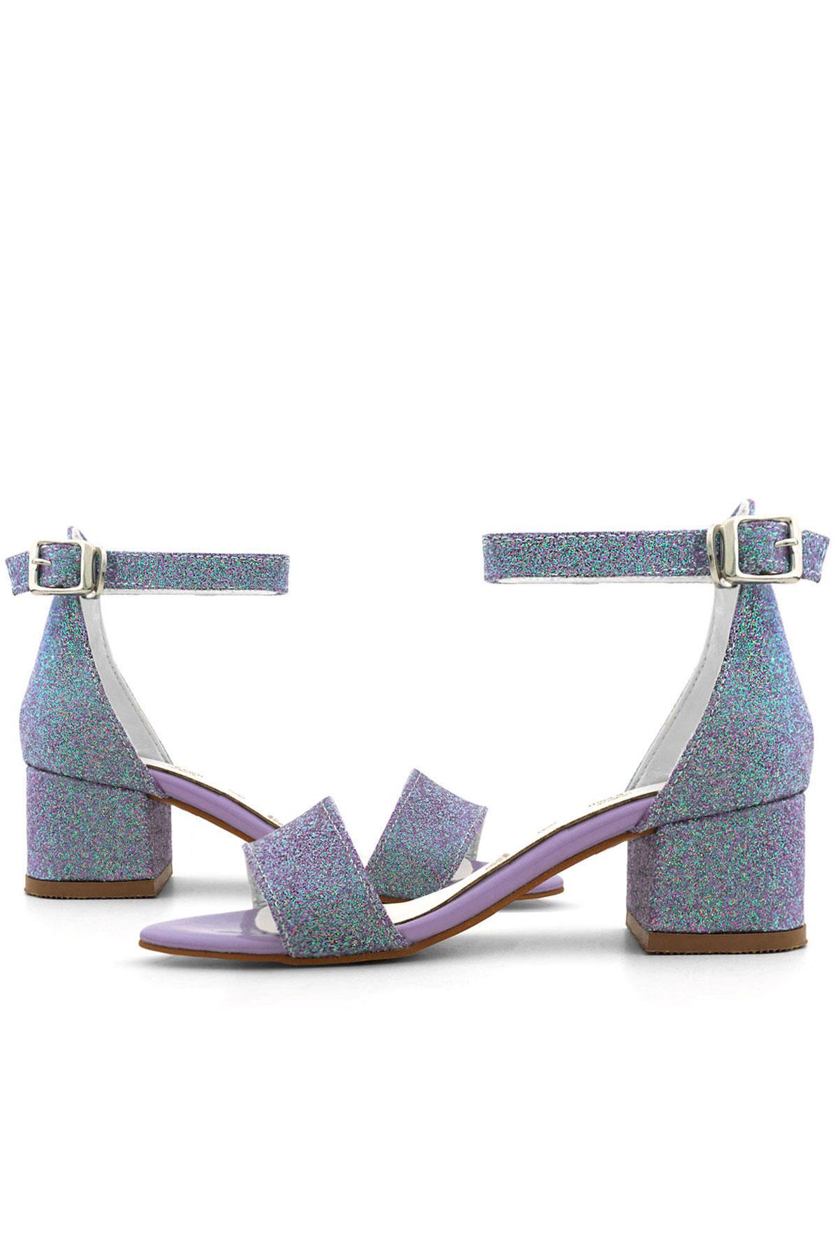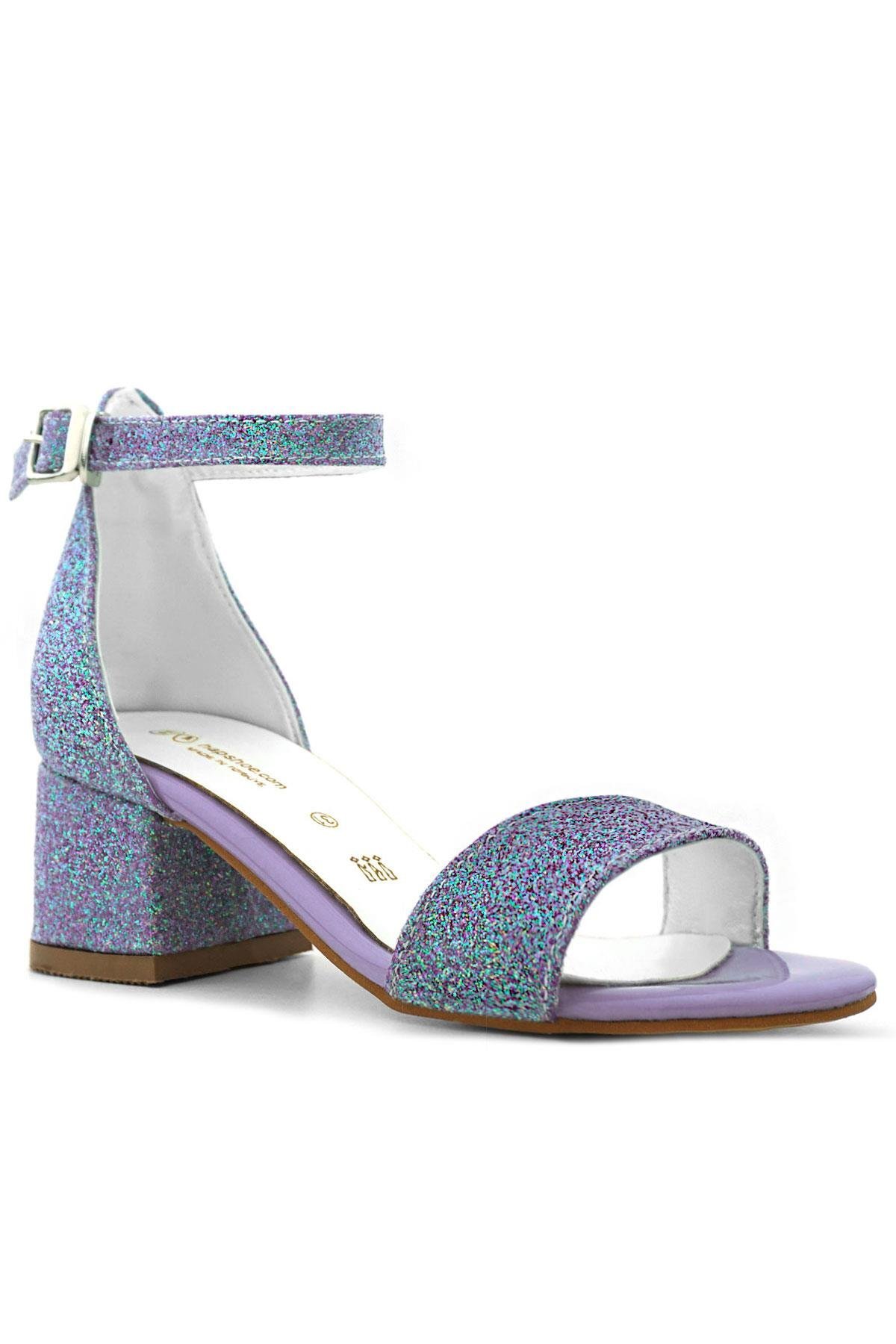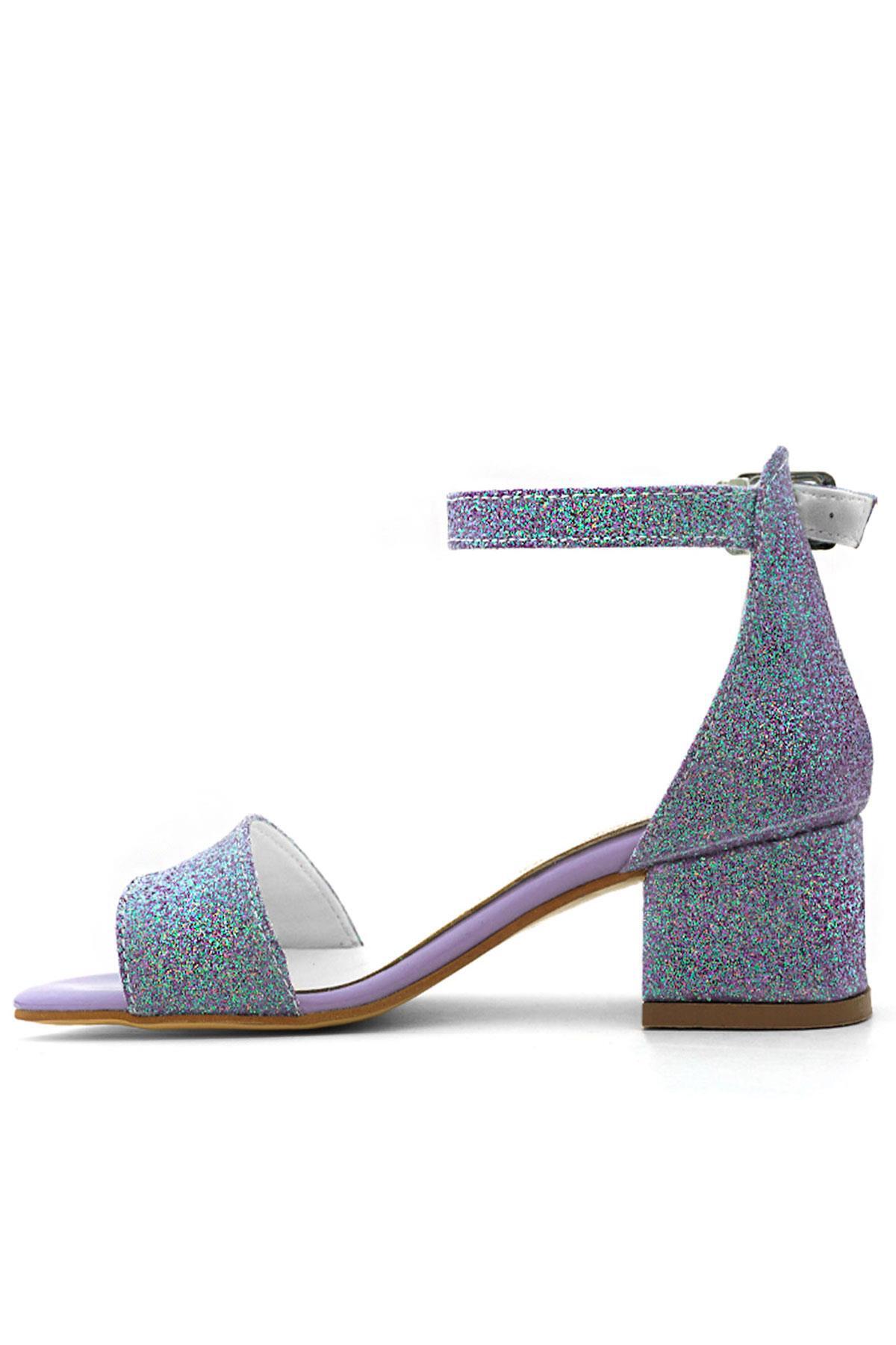 حذاء ليلو أرجواني لامع بحزام واحد للبنات بكعب عالٍ للسهرات