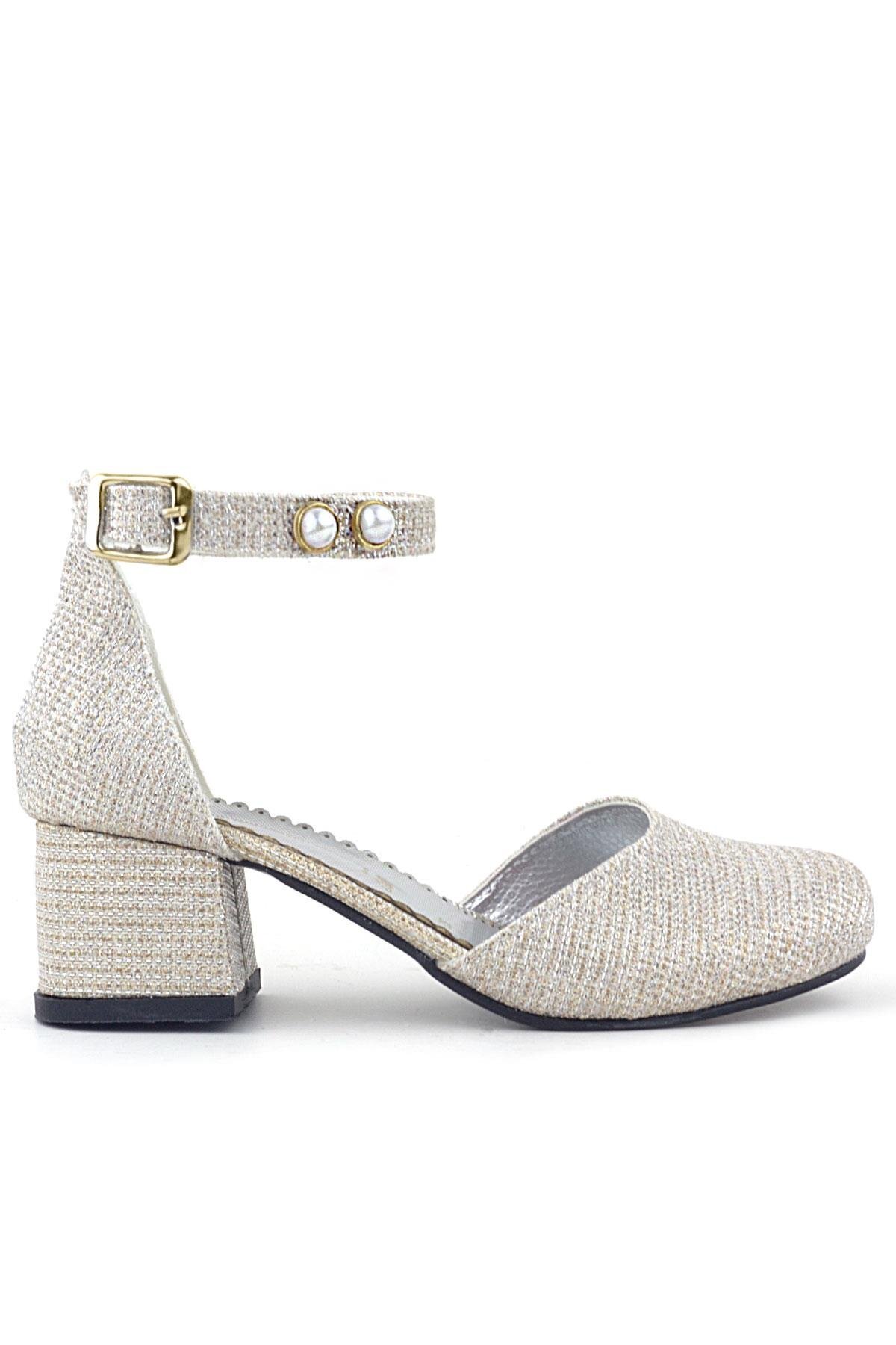 حذاء ميريدا الذهبي اللامع ذو الكعب العالي والمزين باللؤلؤ للبنات