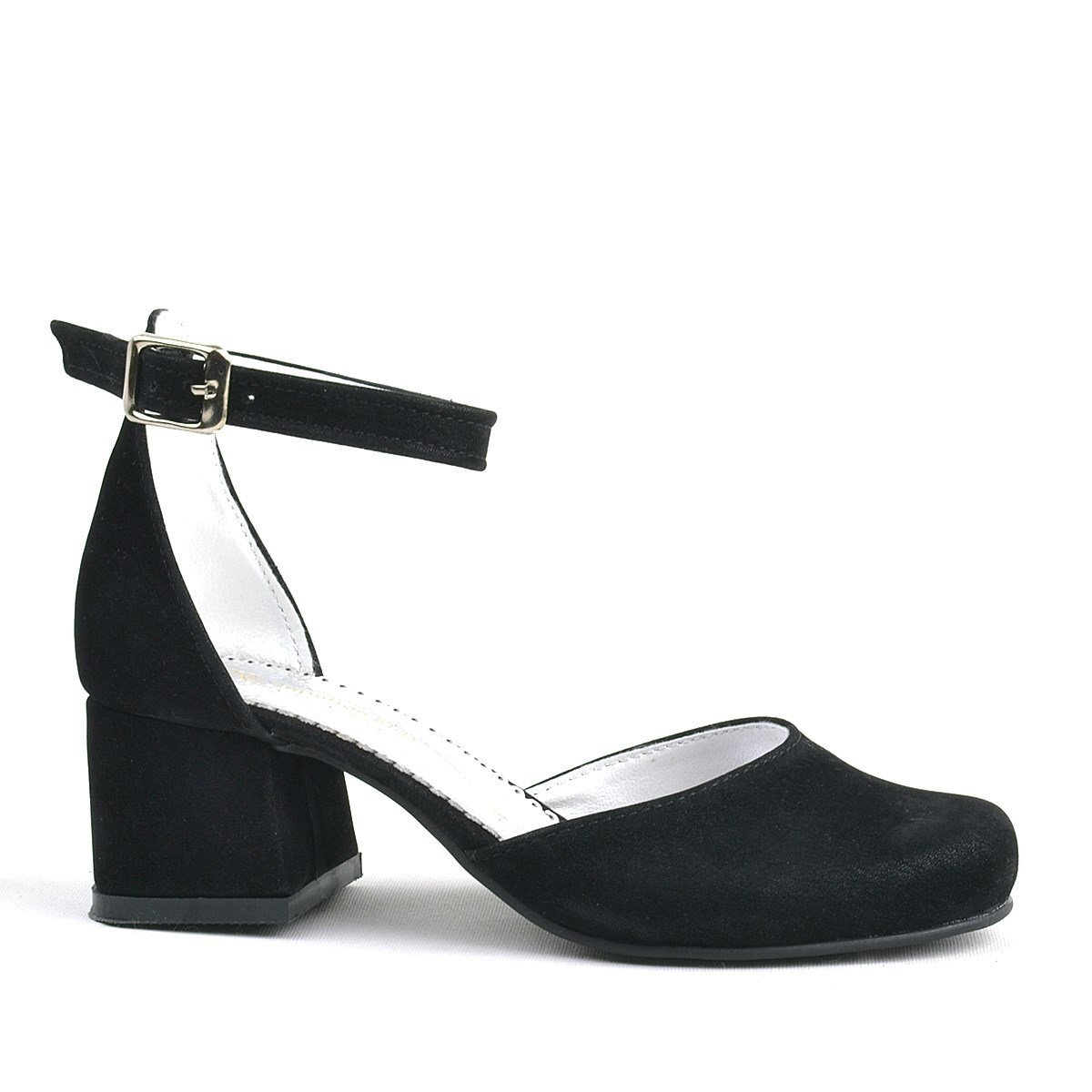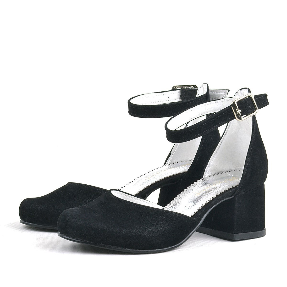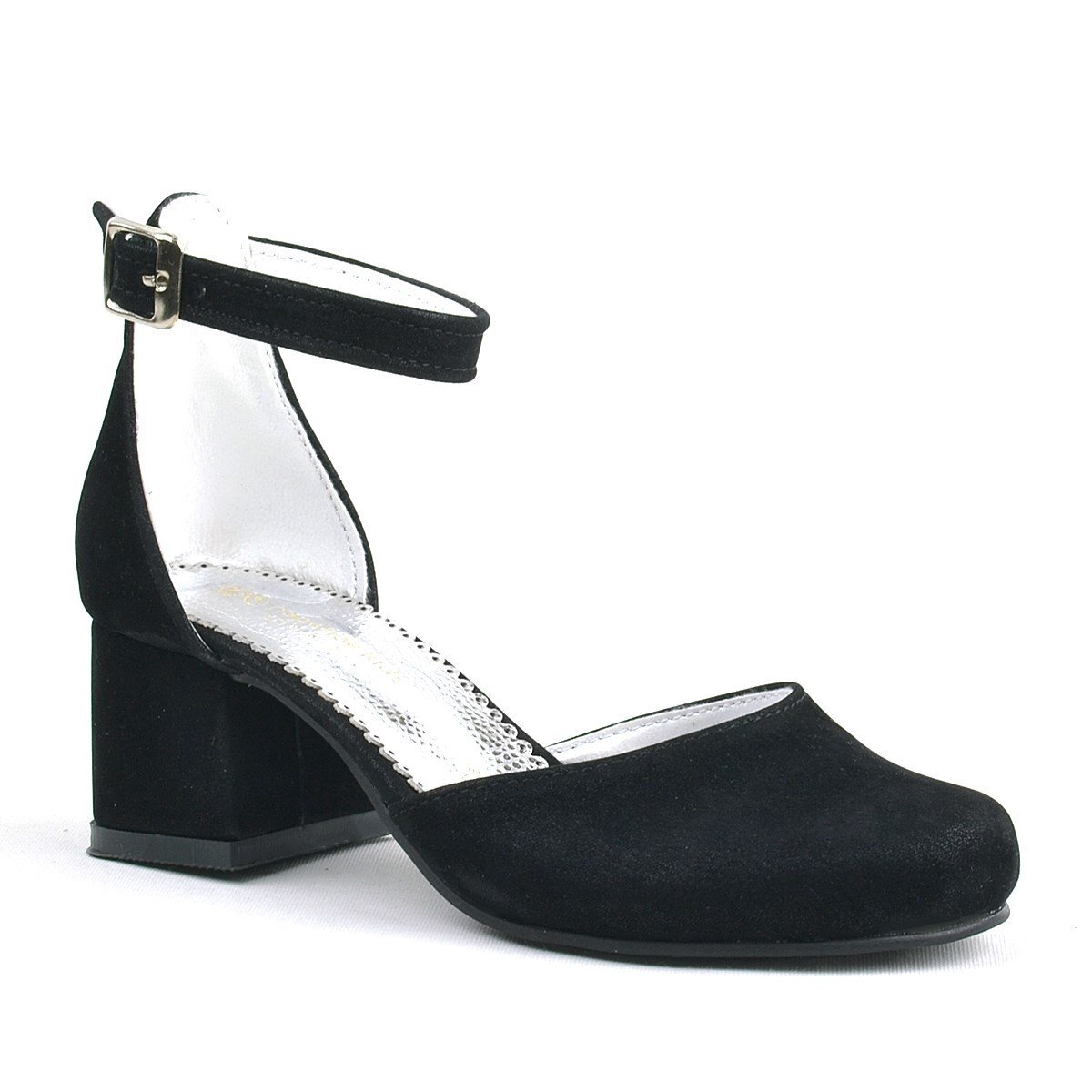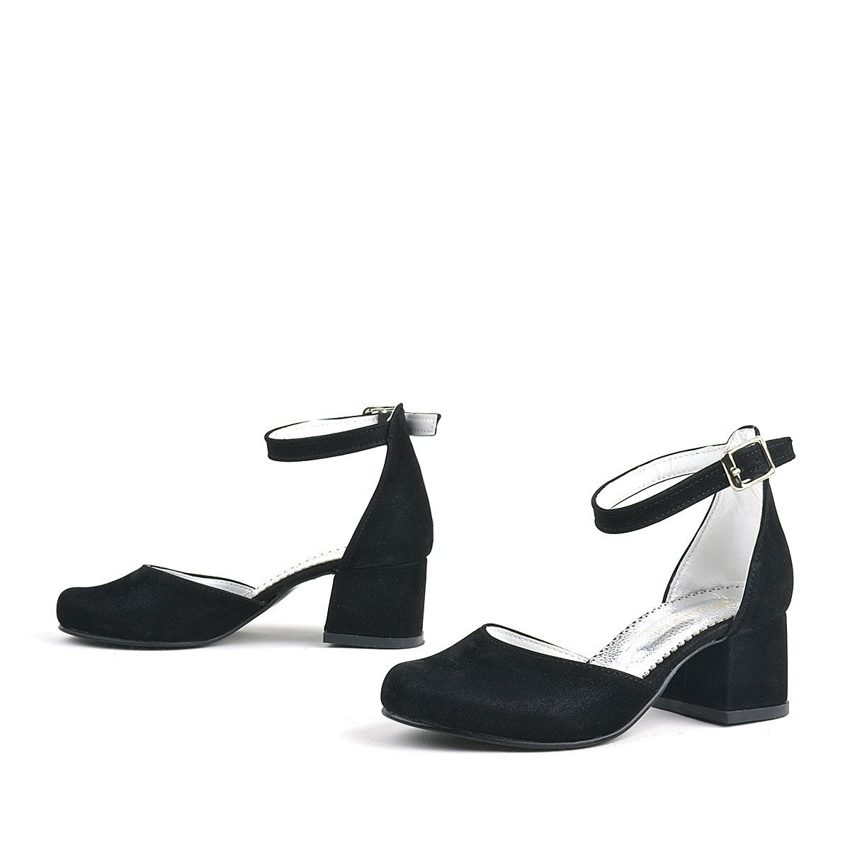 حذاء ميريدا ذو الكعب العالي من الجلد المدبوغ الأسود للبنات