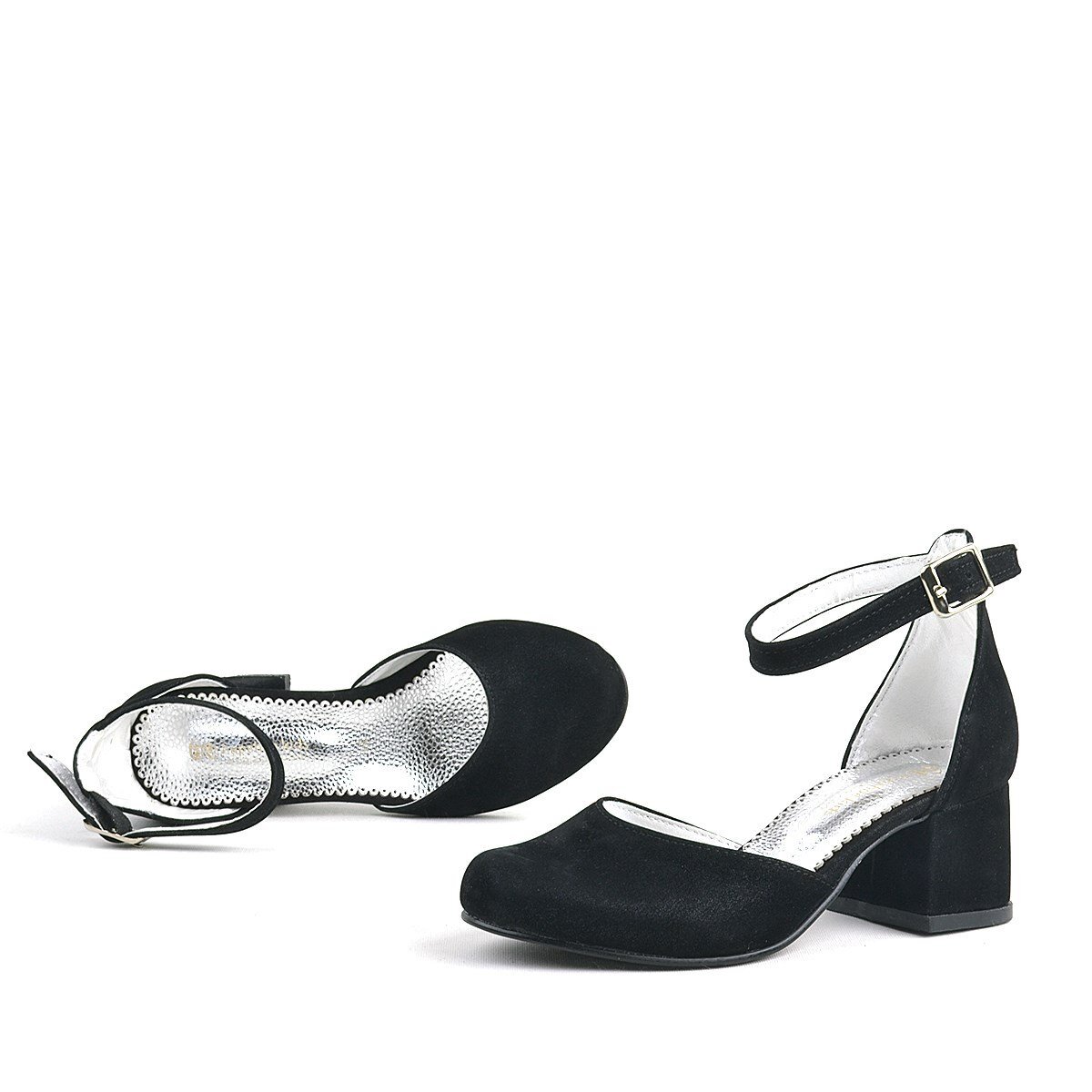 حذاء جيسي بكعب عالٍ مزين بشريط ساتان أسود للبنات