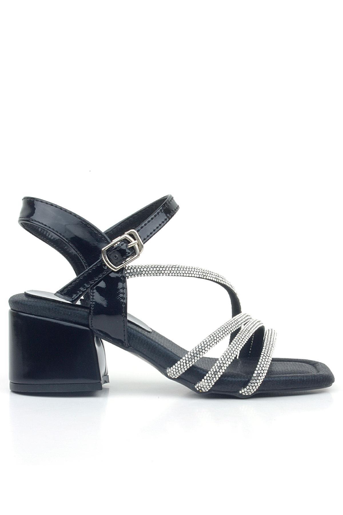 حذاء موانا الأسود المزين بالأحجار للفتيات بكعب عالٍ للسهرات - 1