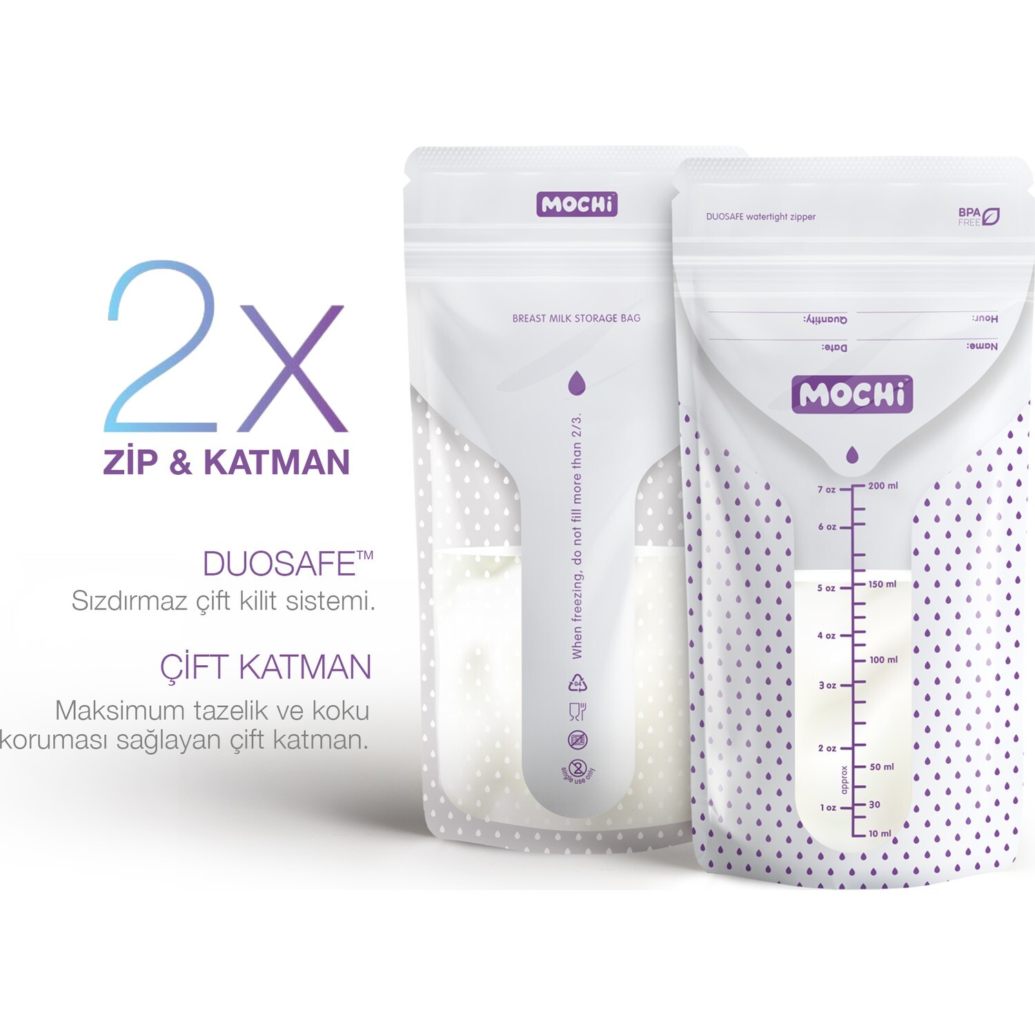 حقيبة حليب الثدي موتشي الجديدة هنا بسعة عالية تبلغ 200 مل وتصميم تم تطويره مع وضع احتياجات الأمهات في الاعتبار.