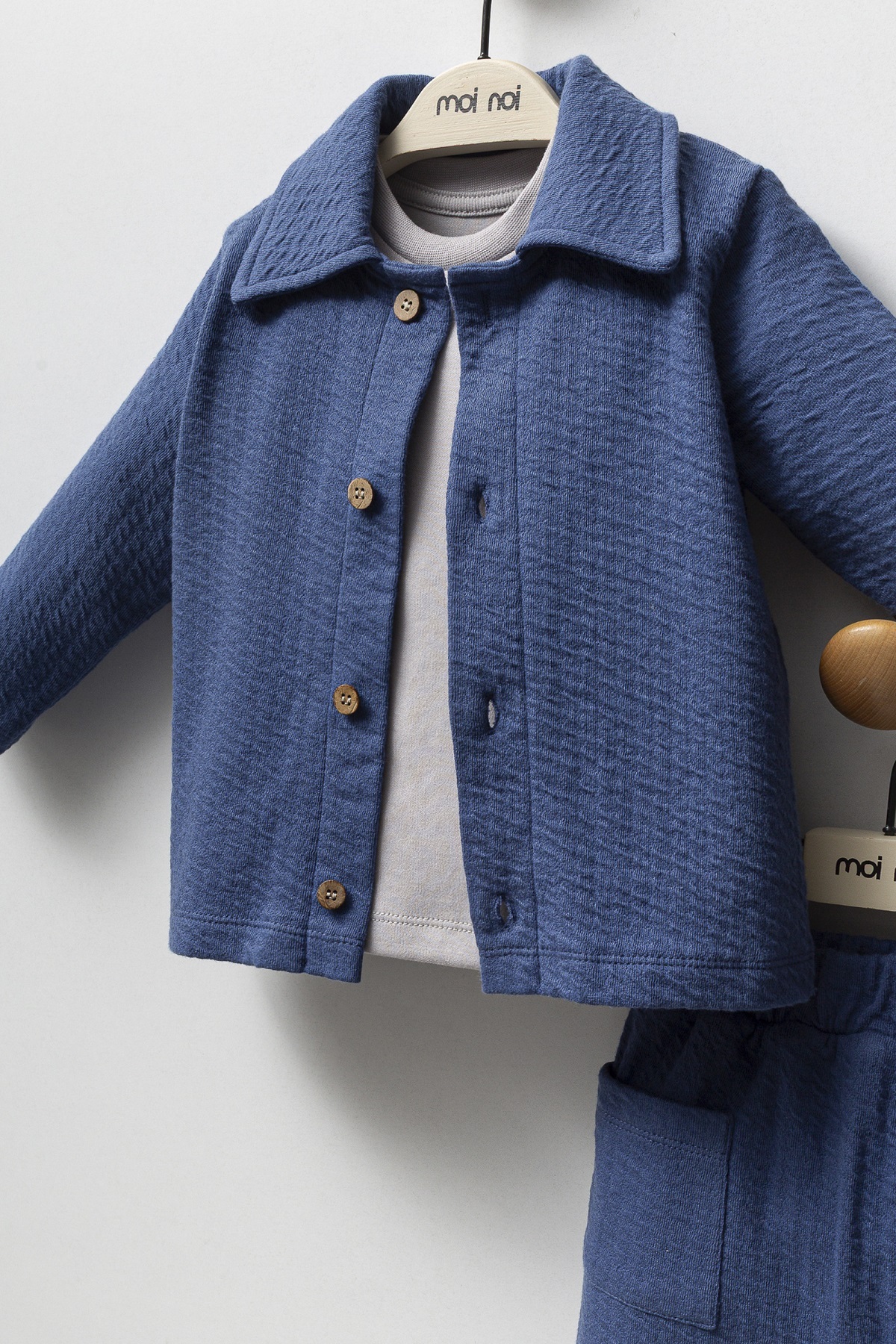 طقم أنيق من القميص والسترة باللون الأزرق البحري، مصنوع من أقمشة عالية الجودة توفر راحة وأناقة مثالية لكل الأوقات. تصميم عصري يناسب مختلف المناسبات. احصل على إطلالة متكاملة تعكس ذوقك الرفيع!