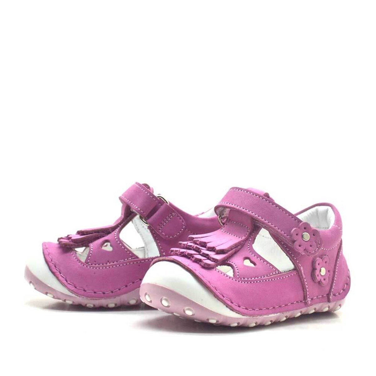 حذاء نينو الصيفي من الجلد الطبيعي باللون الوردي الفاتح مع شريط فيلكرو للخطوة الأولى