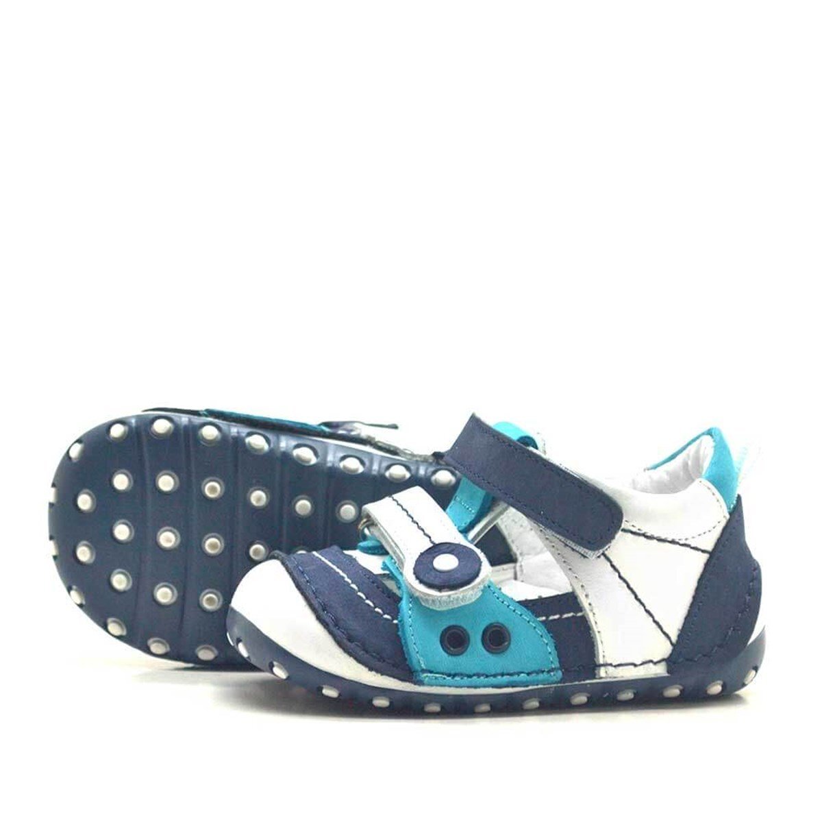 حذاء نينو للأطفال من الجلد الطبيعي باللون الأزرق مزود بشريط فيلكرو للصيف من First Step