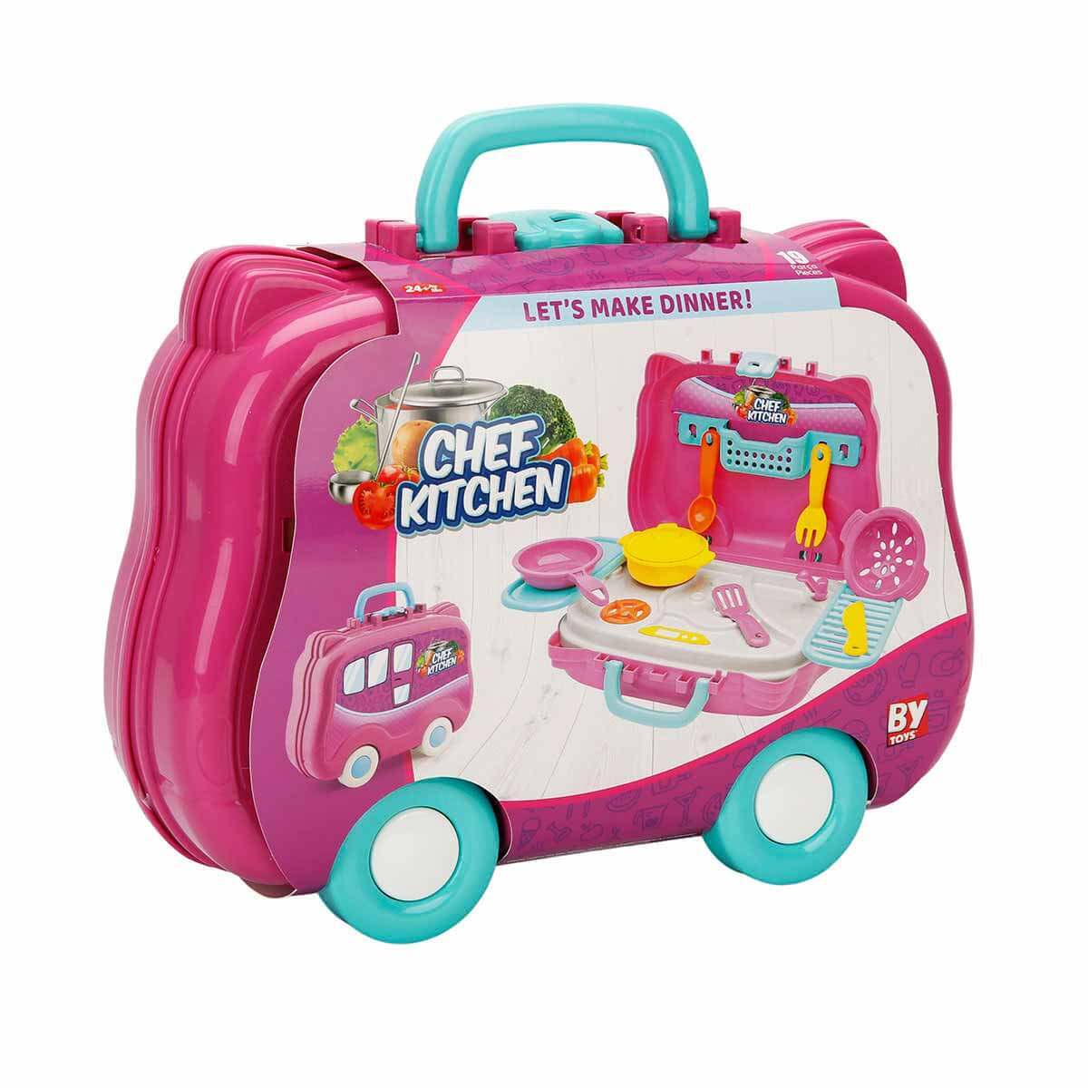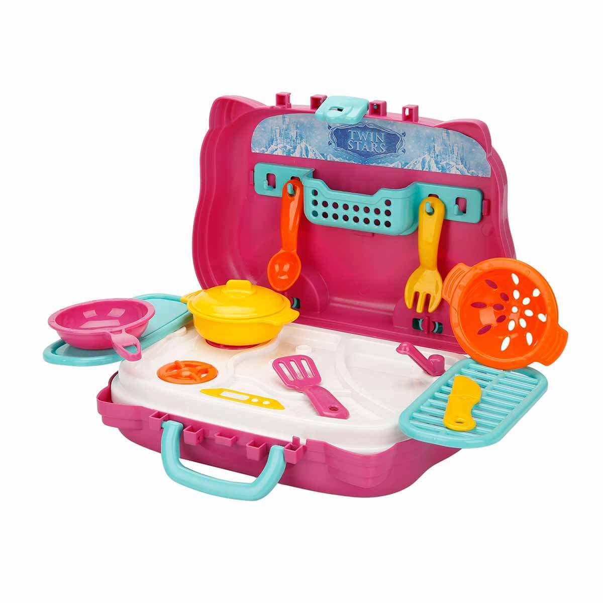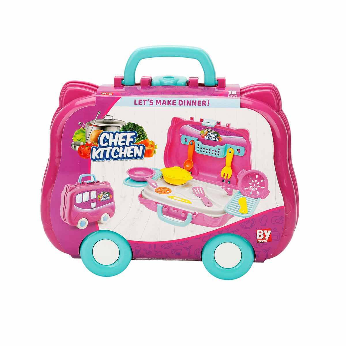 تساعد مجموعة أدوات المطبخ في حقيبة الأطفال على تطوير مهارات التقليد والتواصل الاجتماعي.