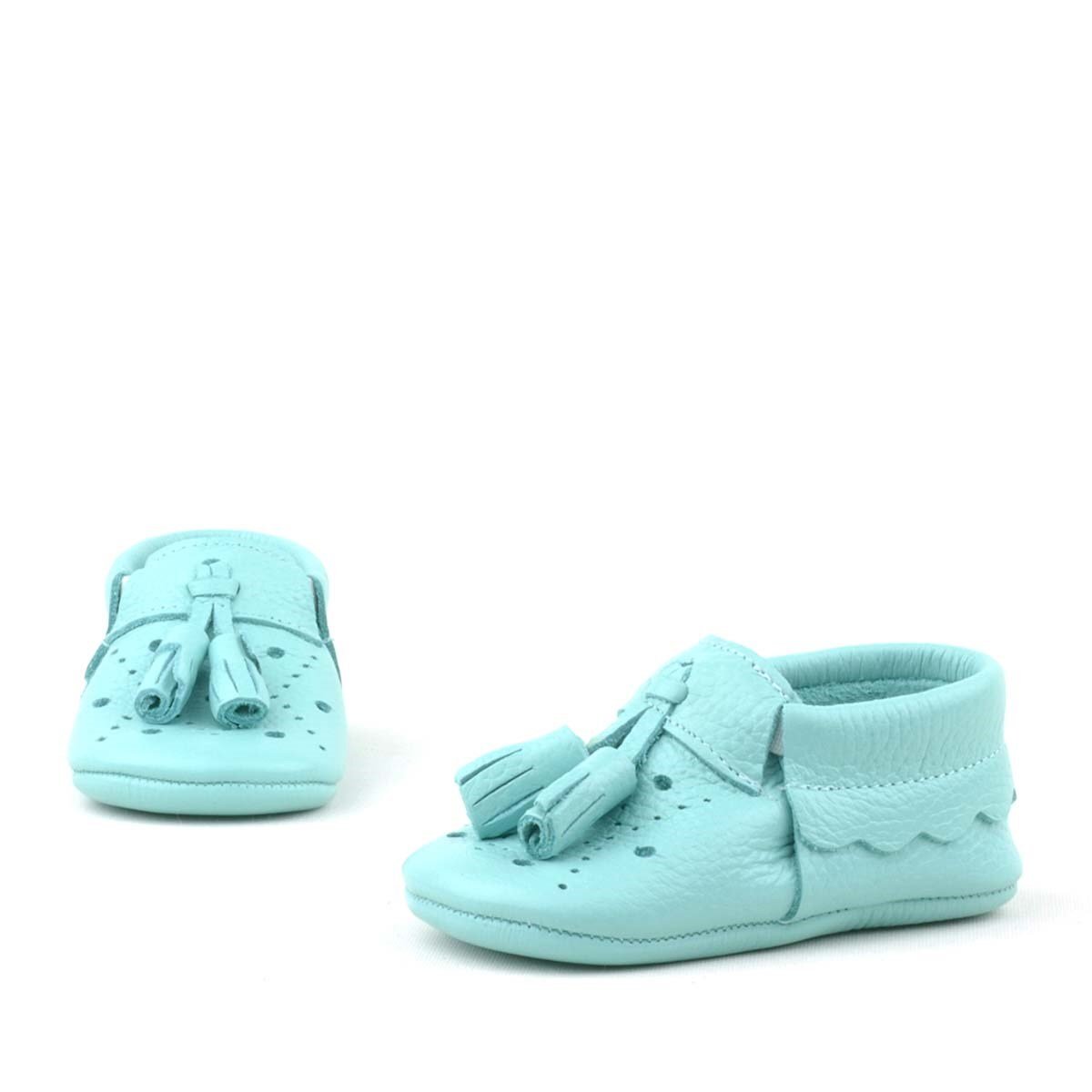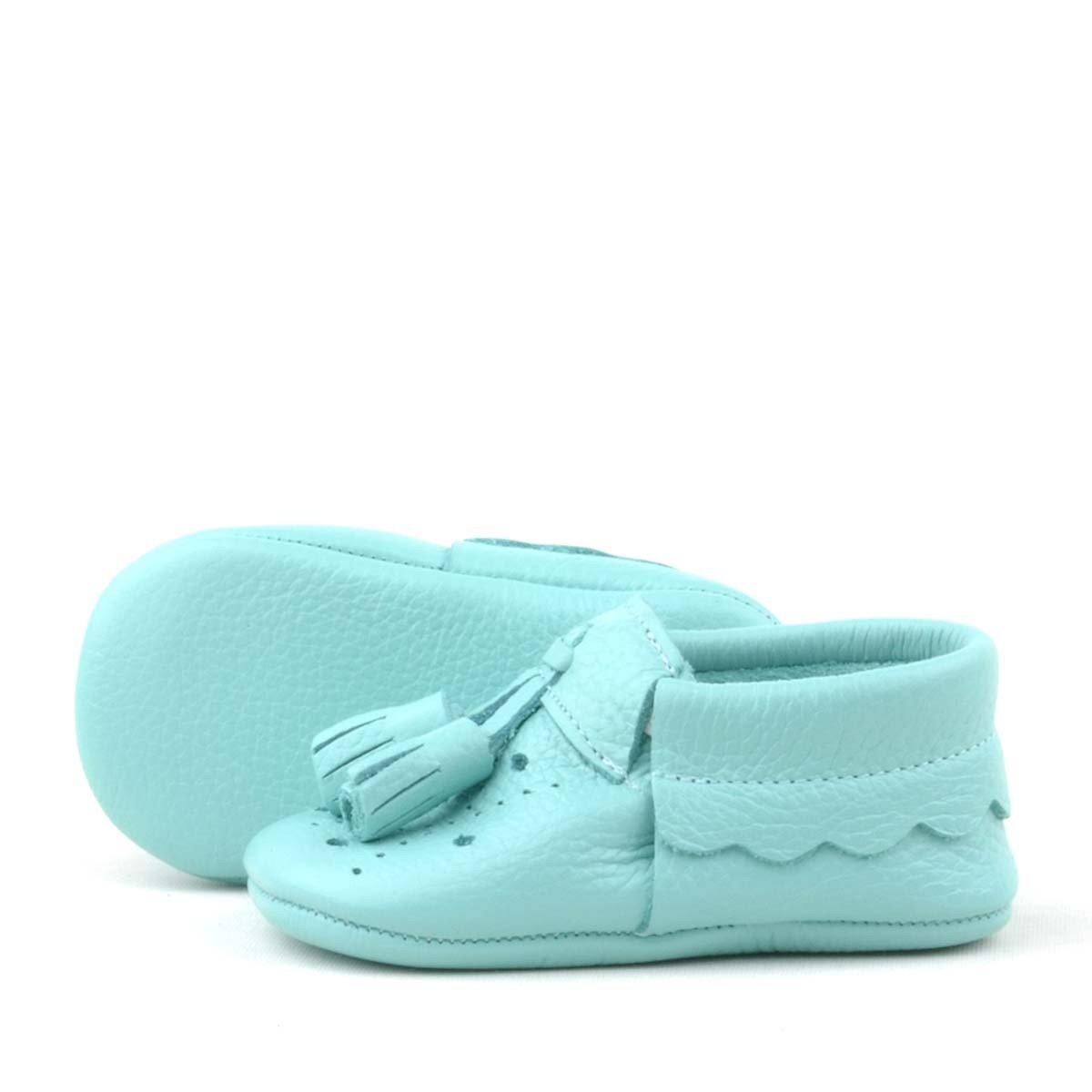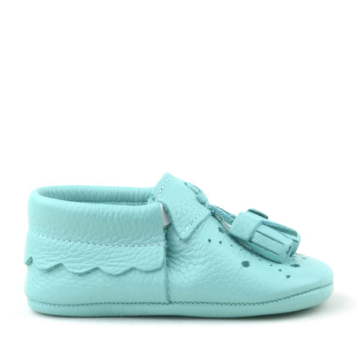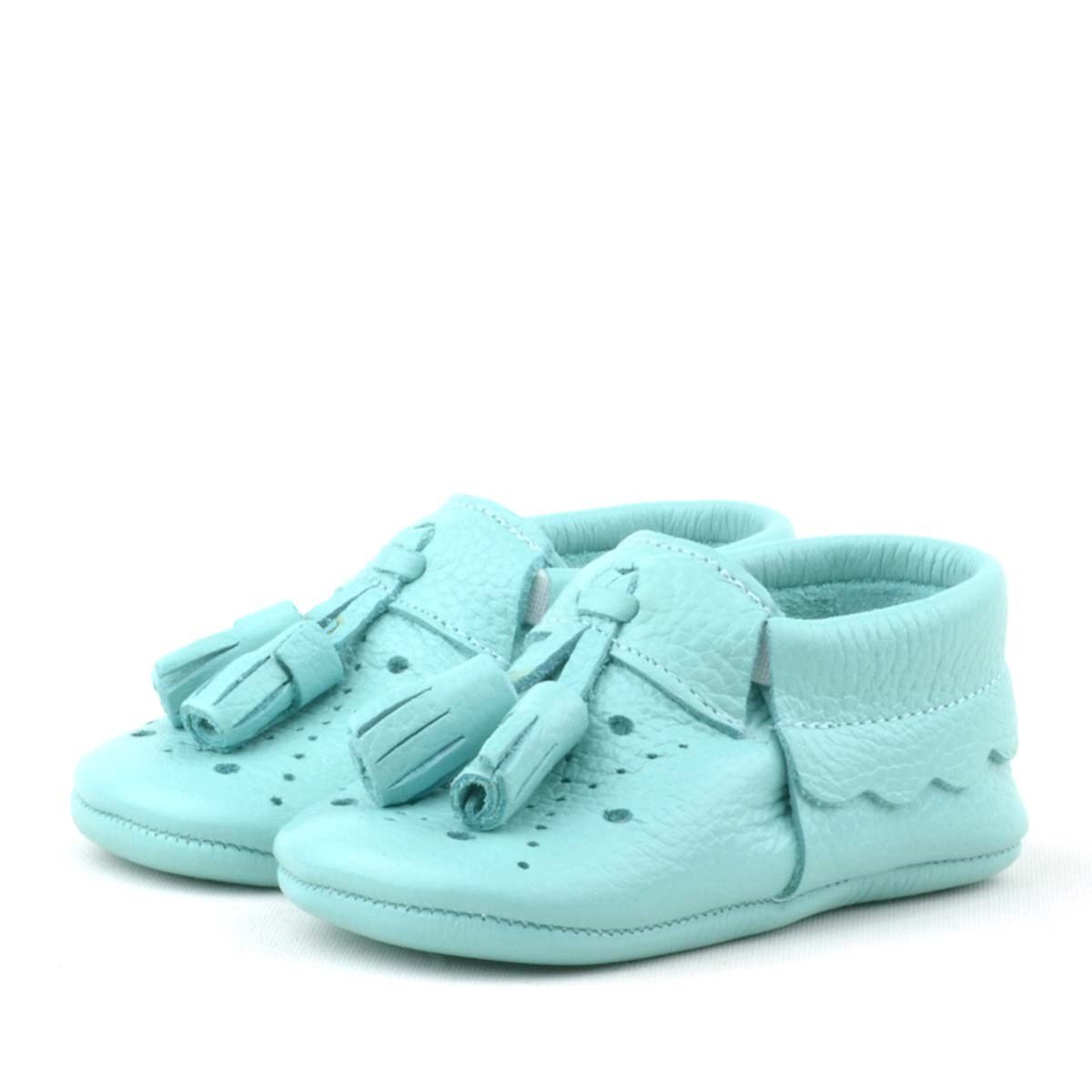 حذاء بيبي بيبا للأطفال من الجلد الطبيعي مع شرابات خضراء مرنة