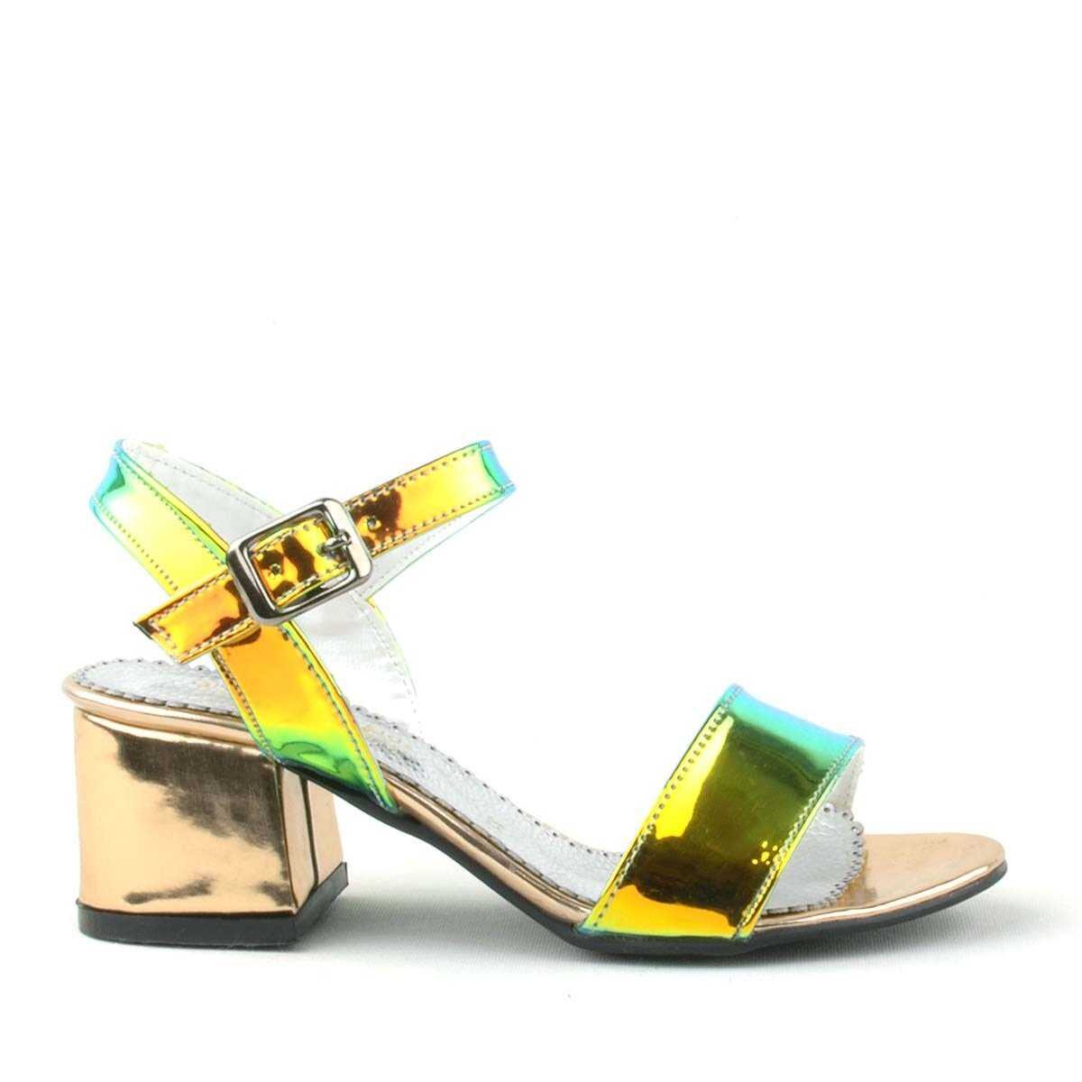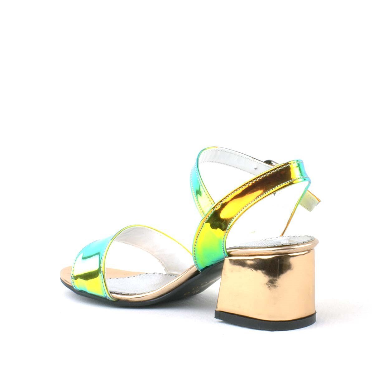 حذاء سهرة بناتي بكعب سميك بلون أخضر نحاسي مجسم