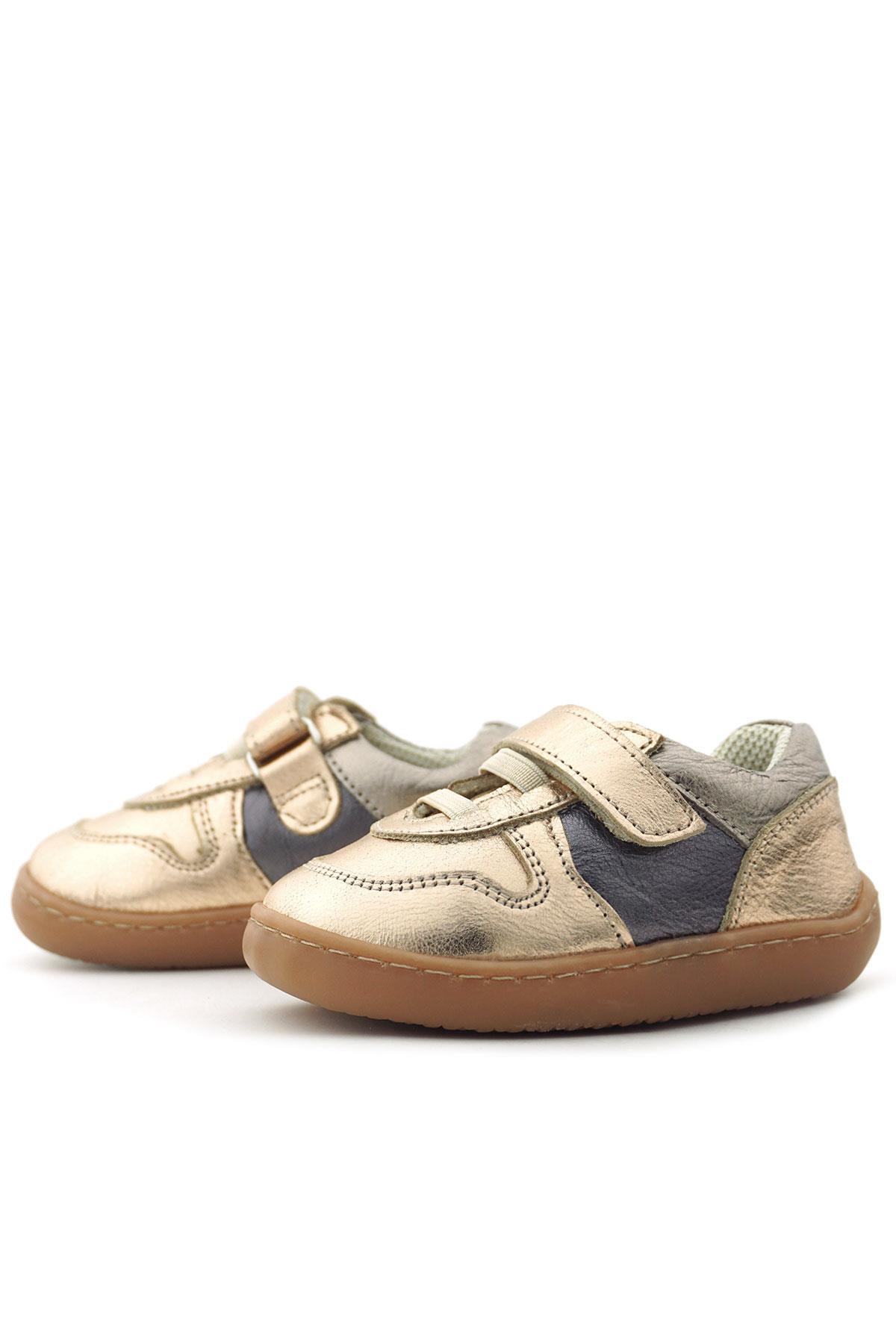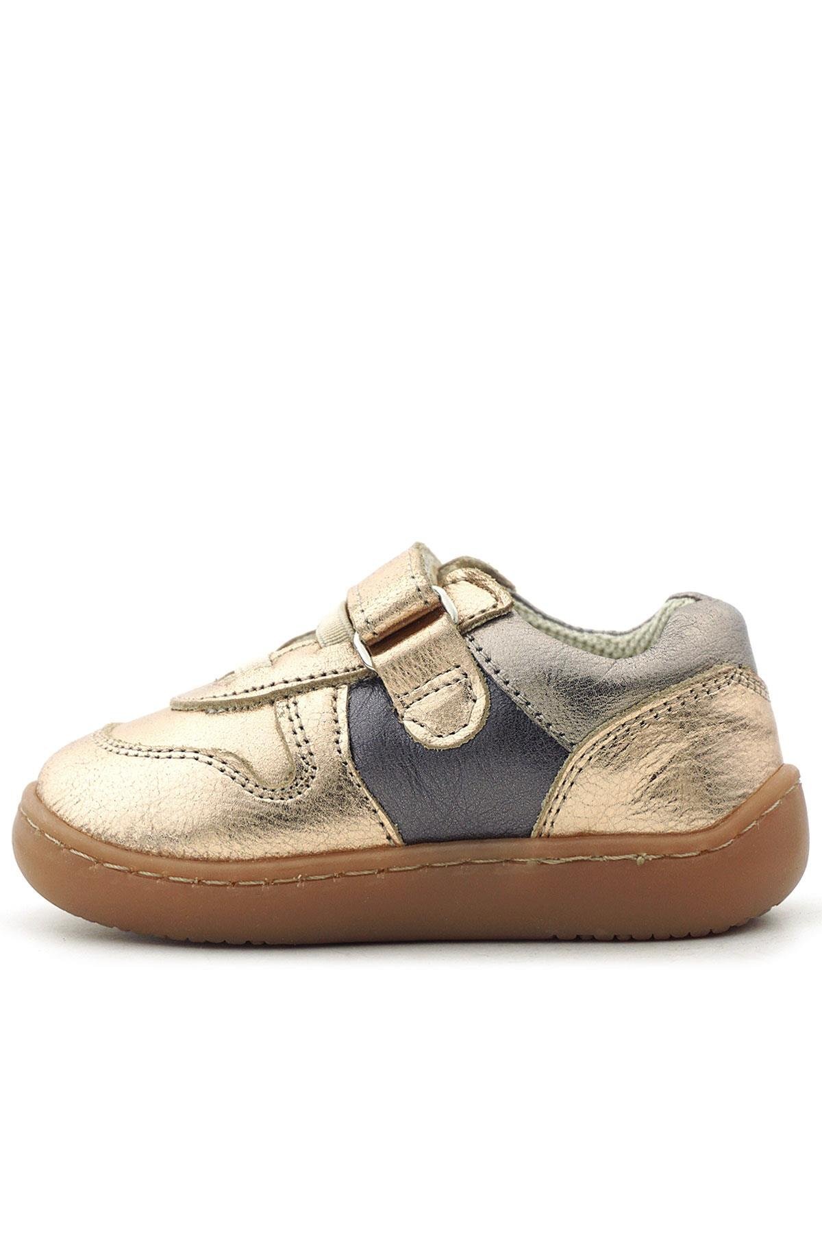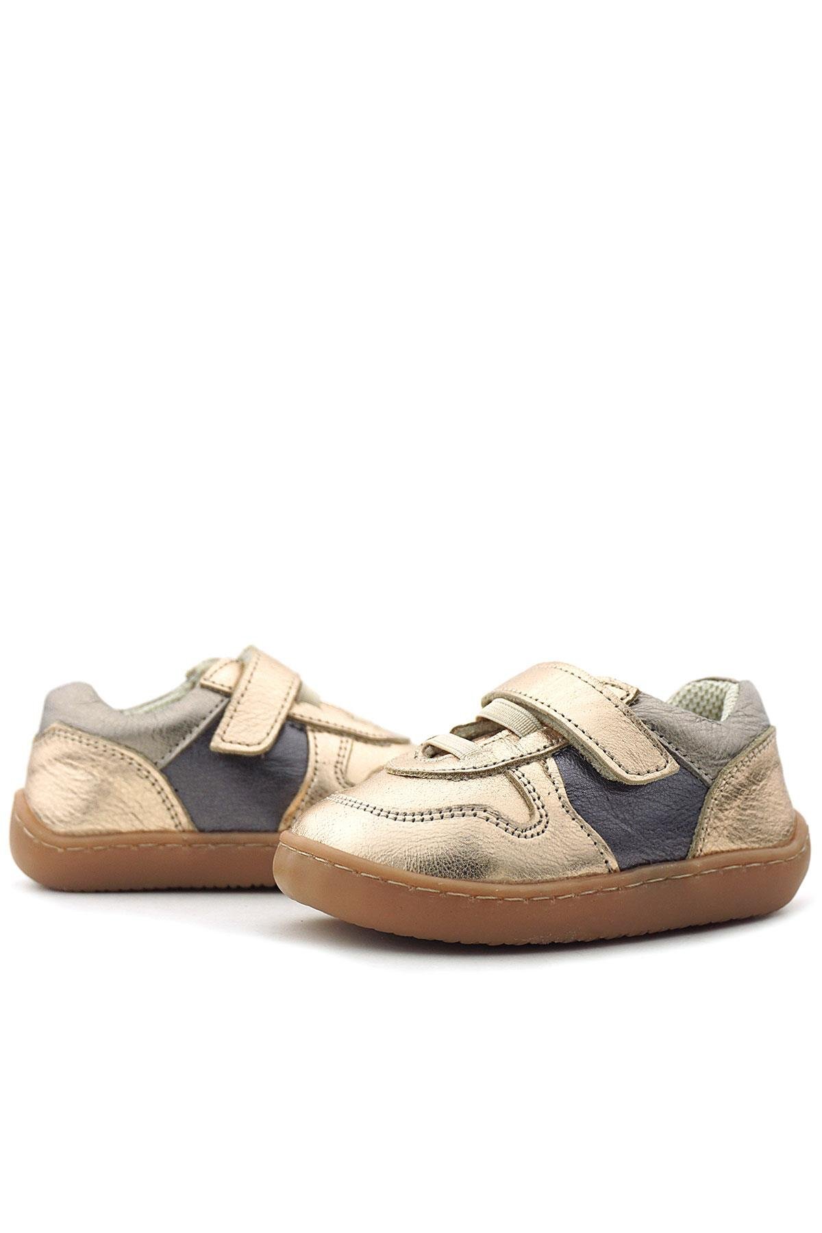 حذاء رياضي للأطفال من راكر بلاس بوب، مصنوع من الجلد الطبيعي والنحاسي، مزود بشريط فيلكرو مرن، هو حذاء مميز للخطوات الأولى، مصمم لتوفير أقصى درجات الراحة والنمو الطبيعي في خطوات الطفل الأولى. تدعم تقنية نعل "حافي القدمين" أقدام الطفل في وضعية طبيعية، مما يشجع على نمو العضلات والتوازن. يوفر هذا التصميم المميز بداية مثالية للأطفال الذين بدأوا المشي للتو. السطح الخارجي والبطانة الداخلية مصنوعان من جلد طبيعي 100%، وبفضل ملمسه الناعم والقابل للتهوية، لا يضر بشرة طفلك الحساسة. يوفر نظام الإغلاق المرن والفيلكرو سهولة في الاستخدام للوالدين، ويساعد على ثبات الحذاء على أقدامهم الصغيرة. بفضل النعل الحراري المرن بالكامل، يتمتع الطفل بثبات تام أثناء المشي ويشعر بحركة قدميه بشكل طبيعي. يوفر تصميم النعل المانع للانزلاق أقصى درجات الأمان في الداخل والخارج. تتميز هذه الأحذية بمظهر عصري وأنيق وخالد بلونها النحاسي ونعلها البني الأنيق، وهي عملية وجذابة. مناسبة للاستخدام اليومي، تُعد هذه الأحذية الرياضية للأطفال الصغار خيارًا آمنًا وصحيًا. إنه منتج لا غنى عنه للآباء الذين يرغبون في دعم النمو السليم للقدم.