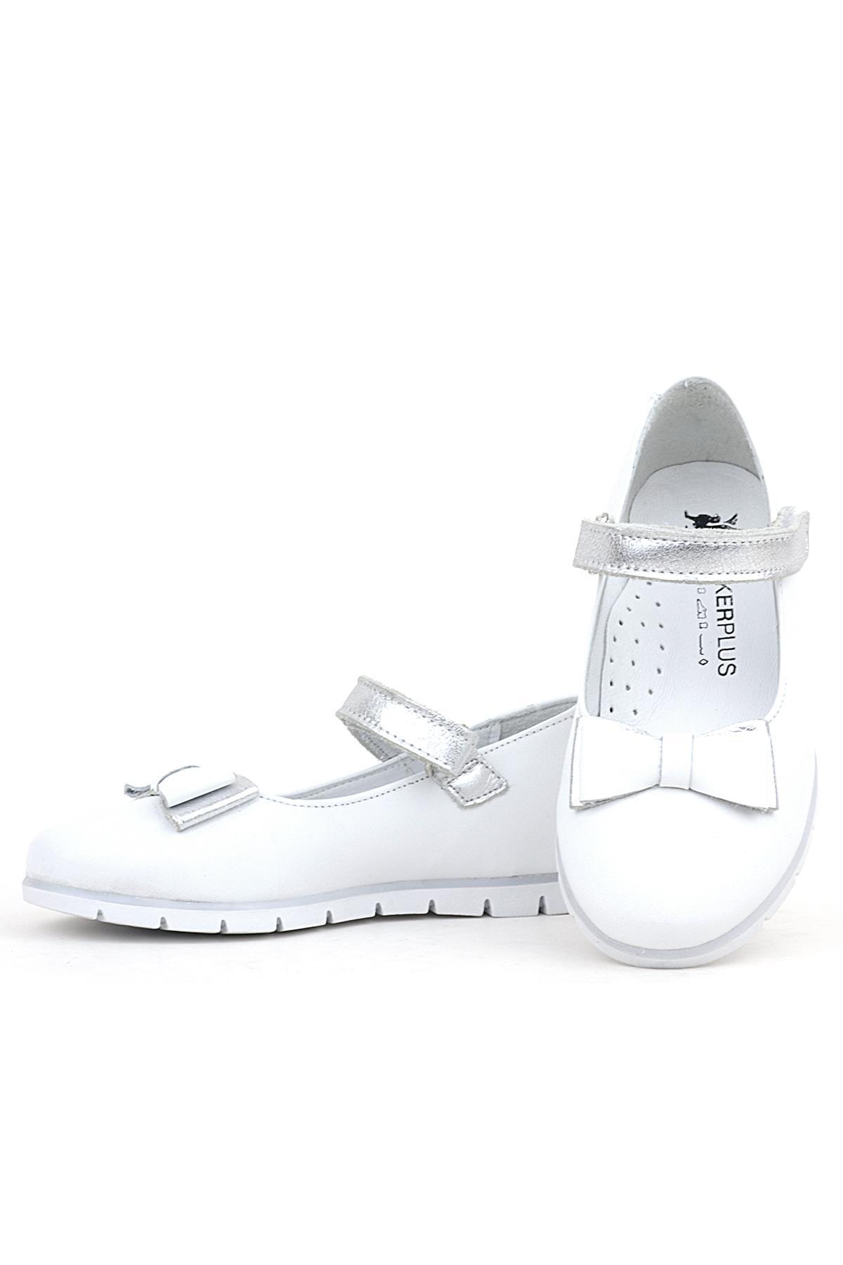 حذاء باليرينا أبيض من الجلد الطبيعي للفتيات من راكر بلاس