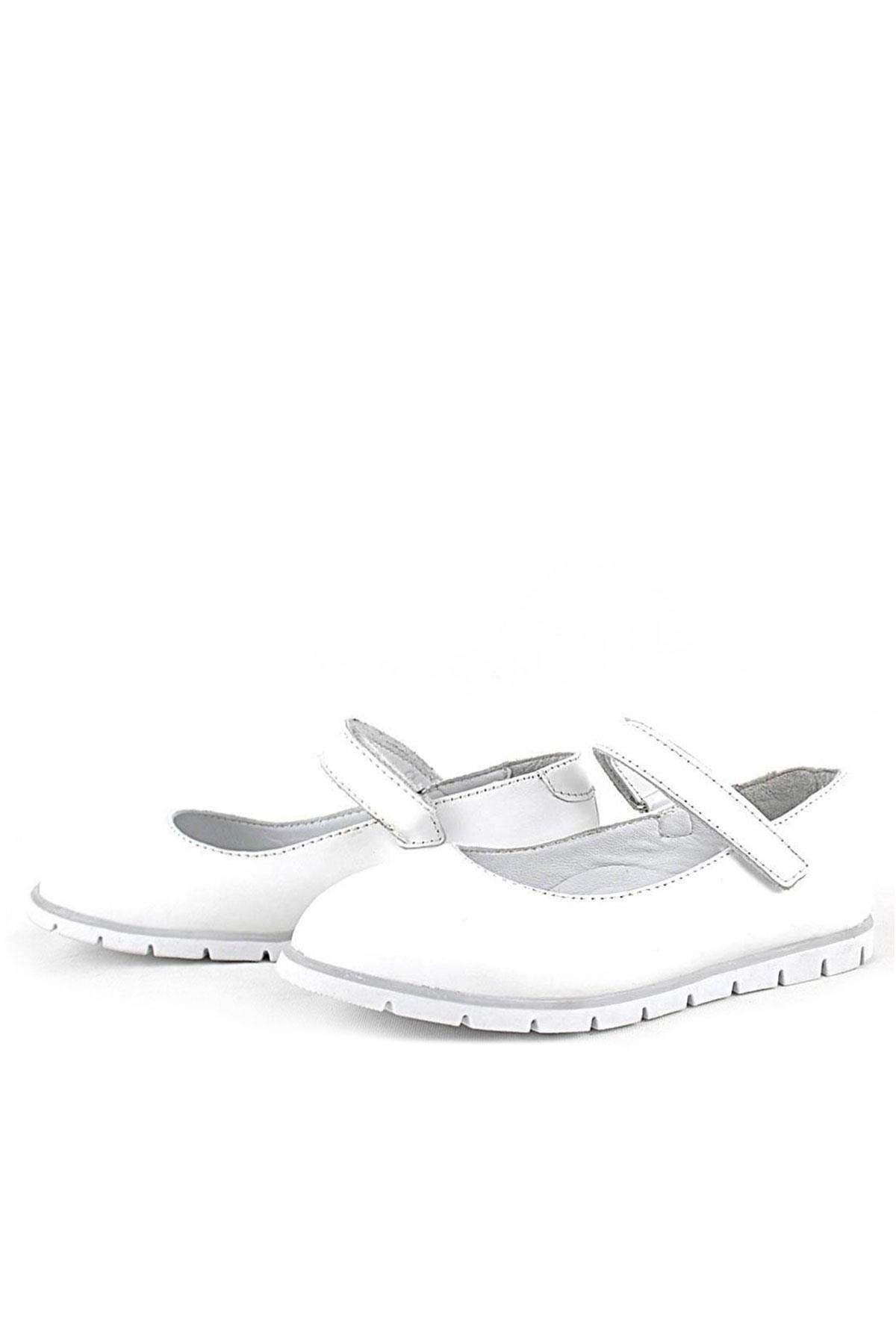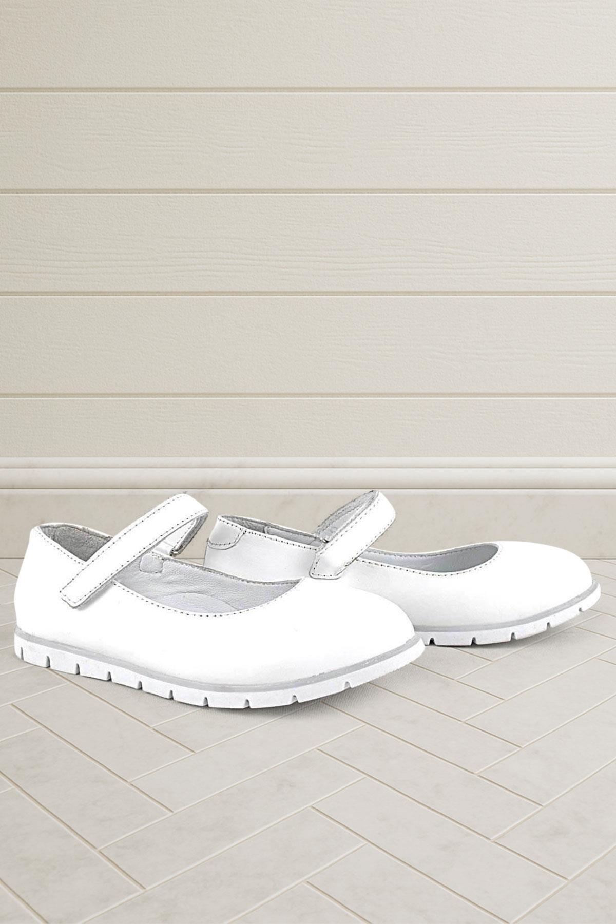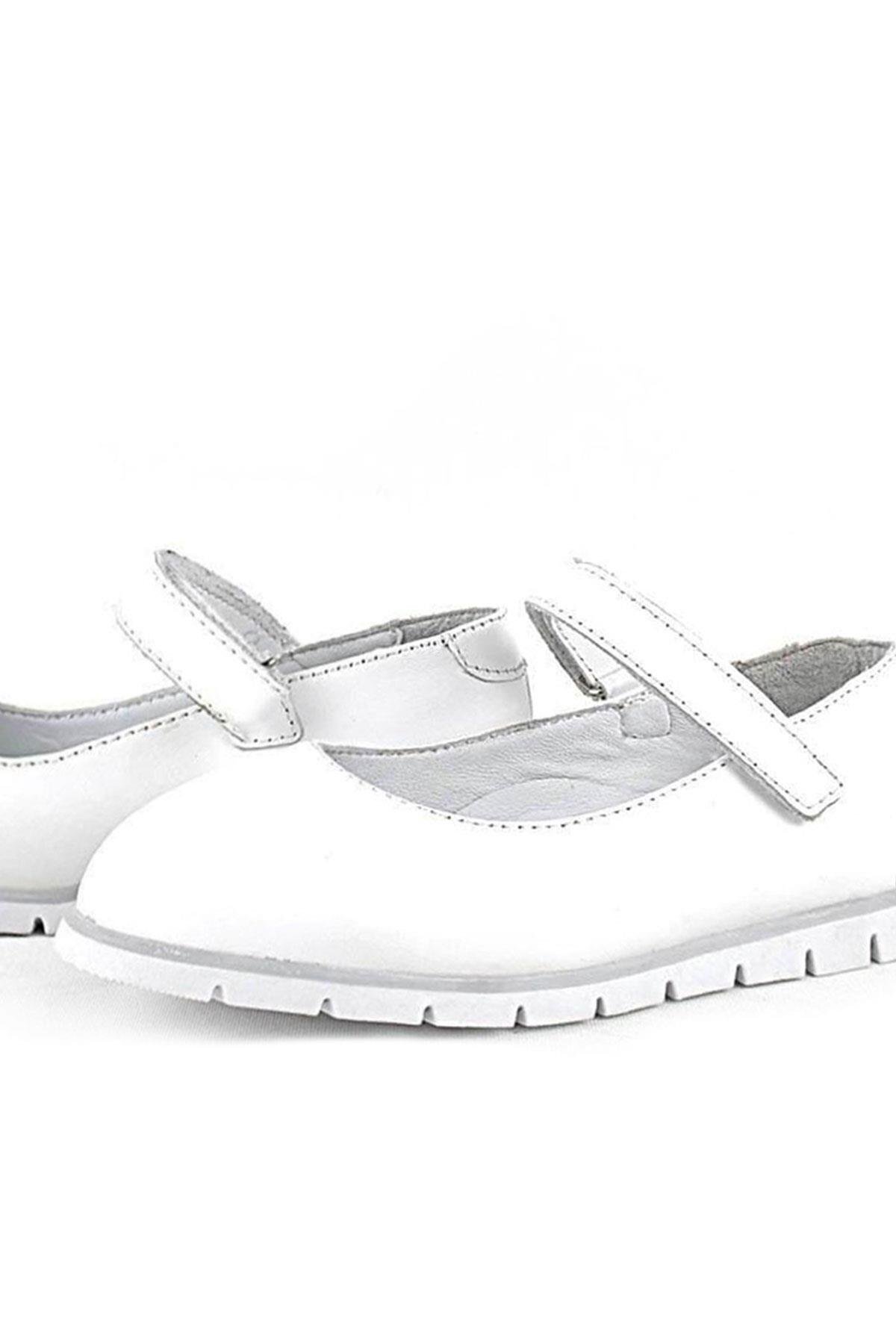 حذاء باليرينا أبيض من الجلد الطبيعي للفتيات من راكر بلاس