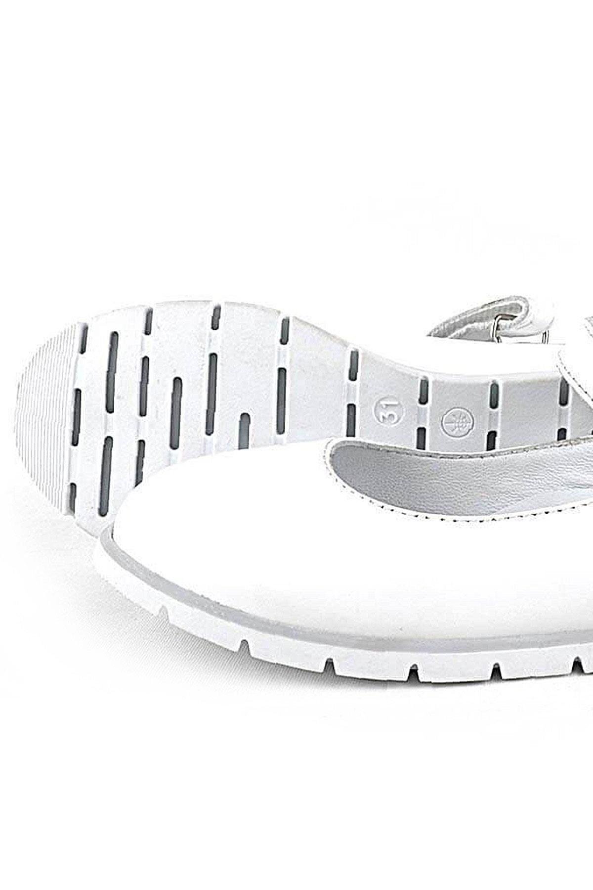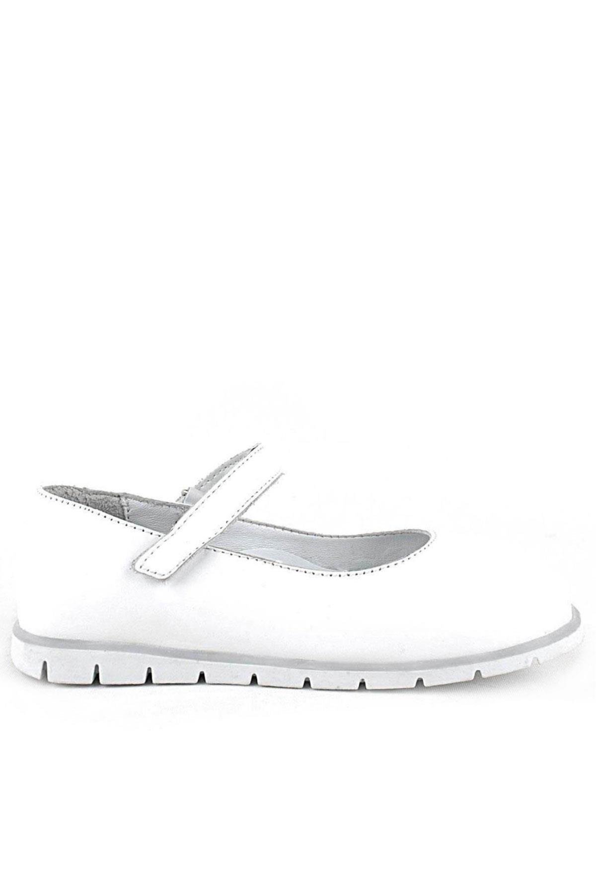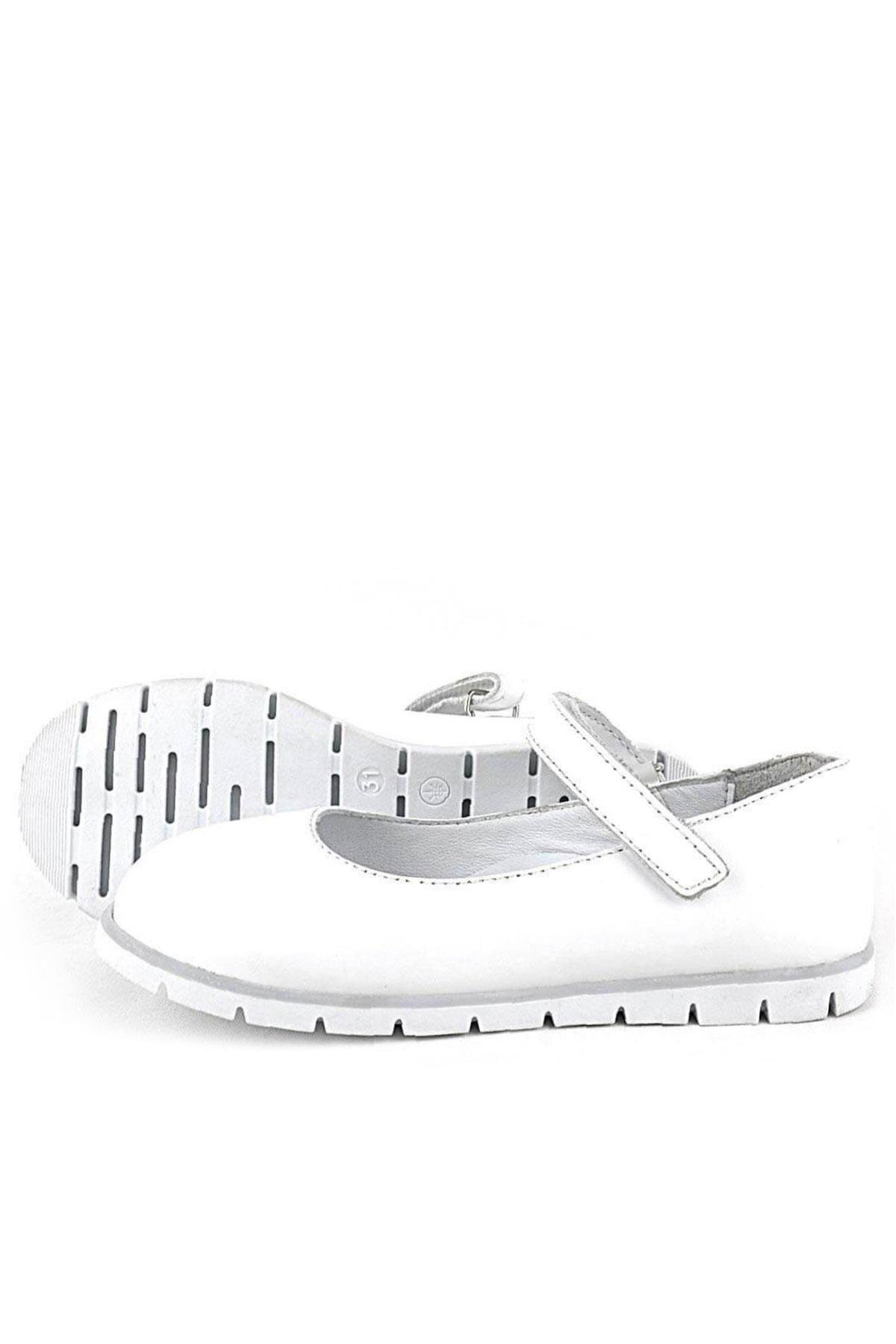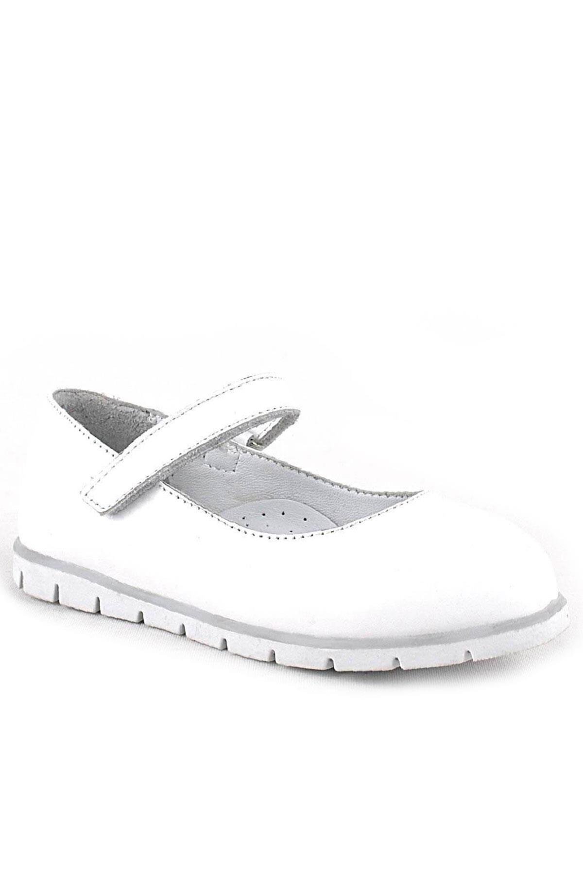 حذاء باليرينا أبيض من الجلد الطبيعي للفتيات من راكر بلاس