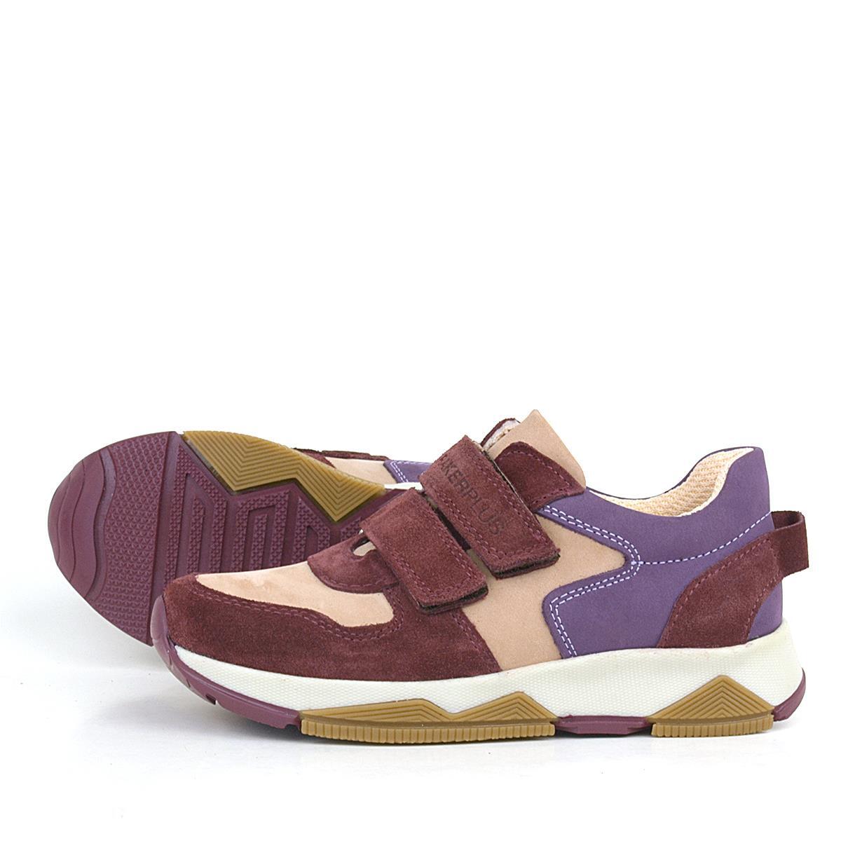 حذاء رياضي من الجلد الطبيعي للبنات من راكر بلاس، أحمر قاتم، مزود بشريط فيلكرو - 1