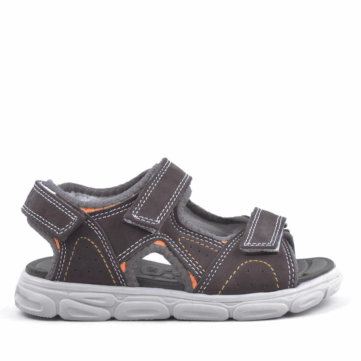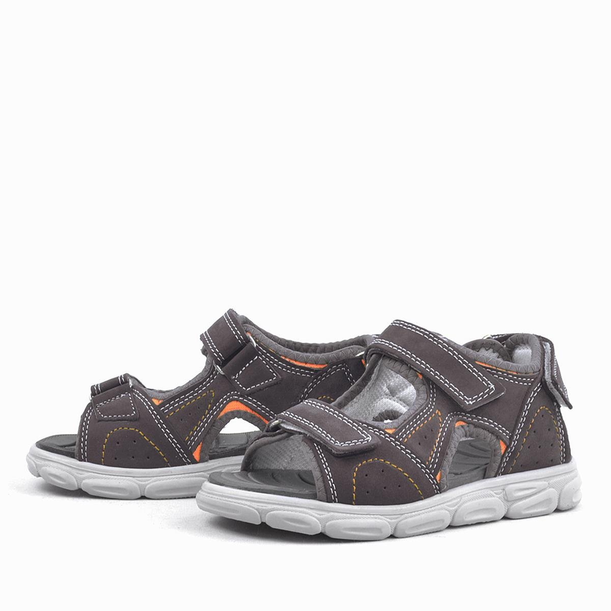 حذاء صندل للأطفال من الجلد الطبيعي باللون الرمادي من راكر بلاس مع شريط فيلكرو