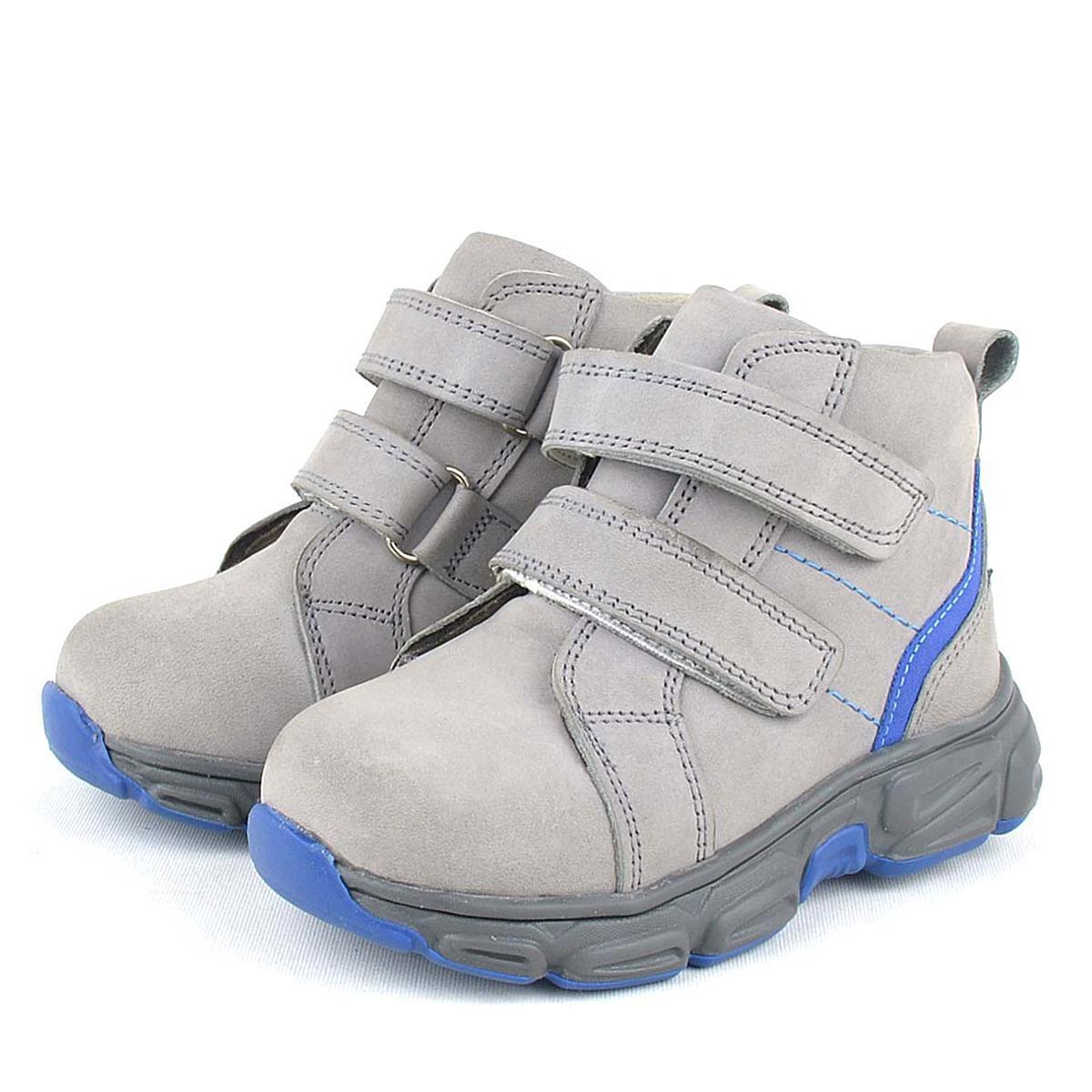 حذاء رياضي من الجلد الطبيعي باللون الرمادي من راكر بلاس مع شريط فيلكرو للأطفال الصغار