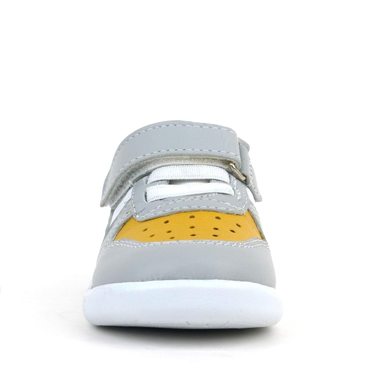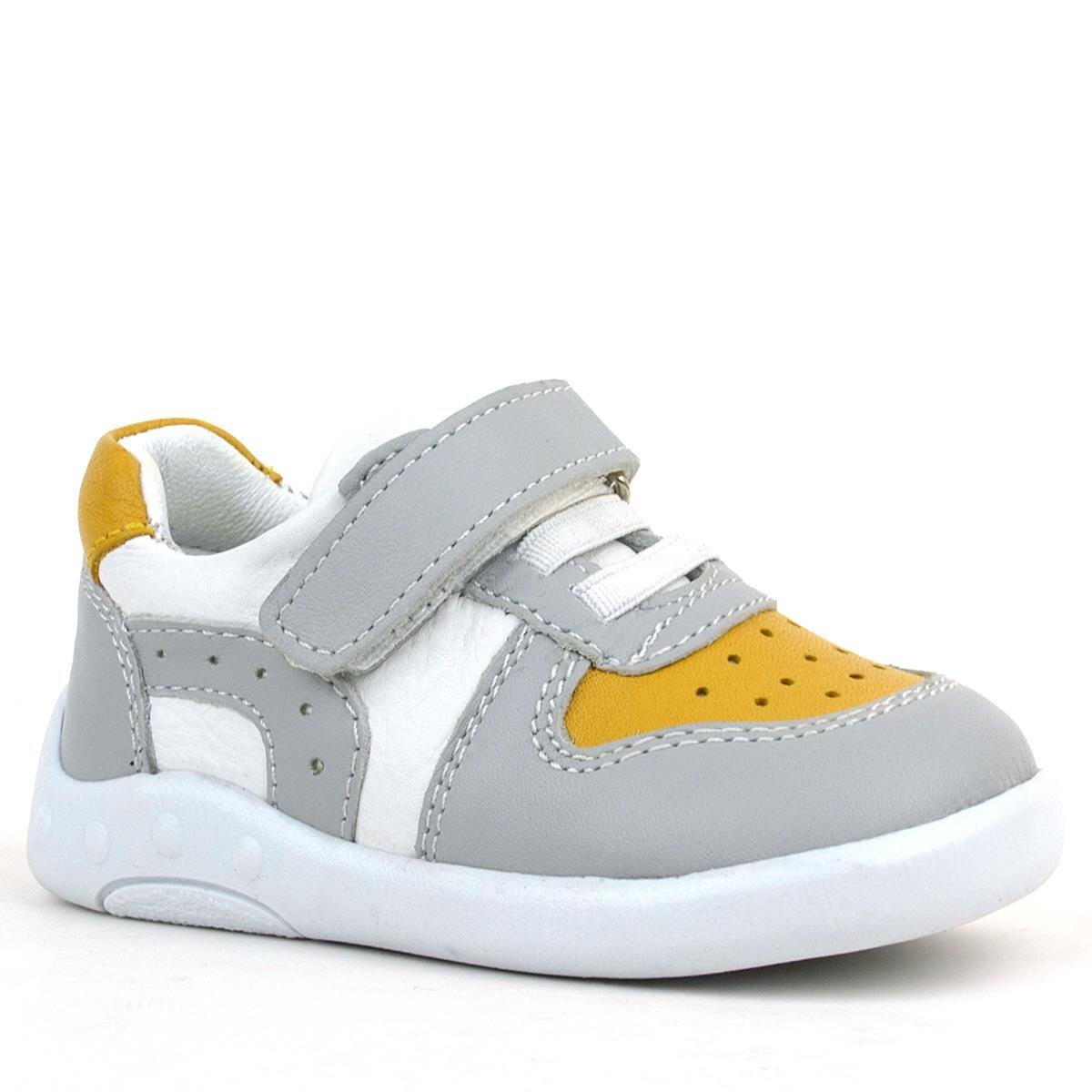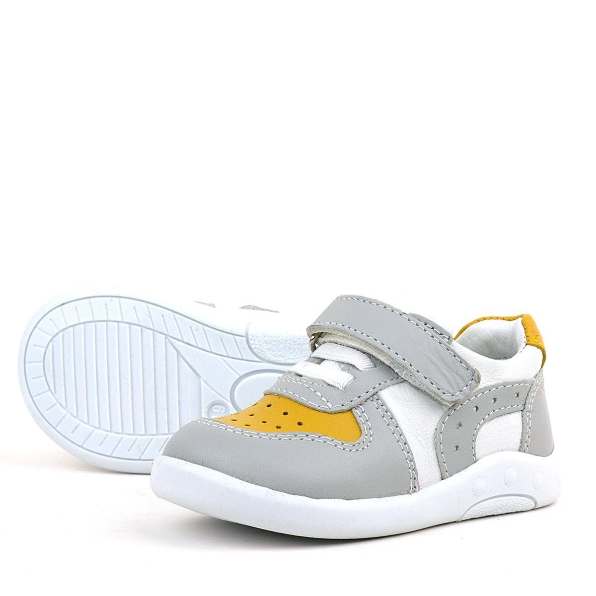 حذاء رياضي تشريحي للأطفال من راكر بلاس، مصنوع من الجلد الطبيعي، رمادي وأصفر