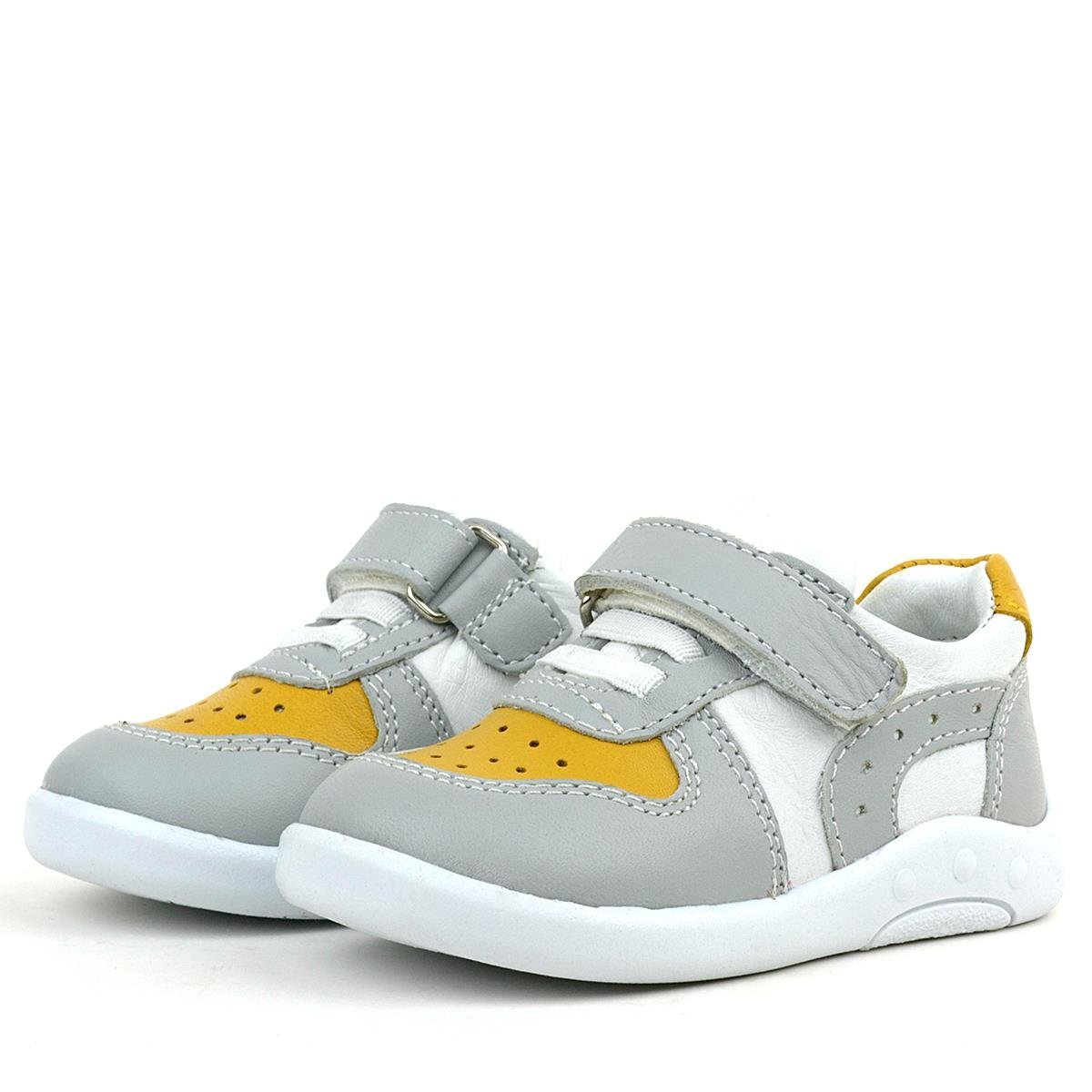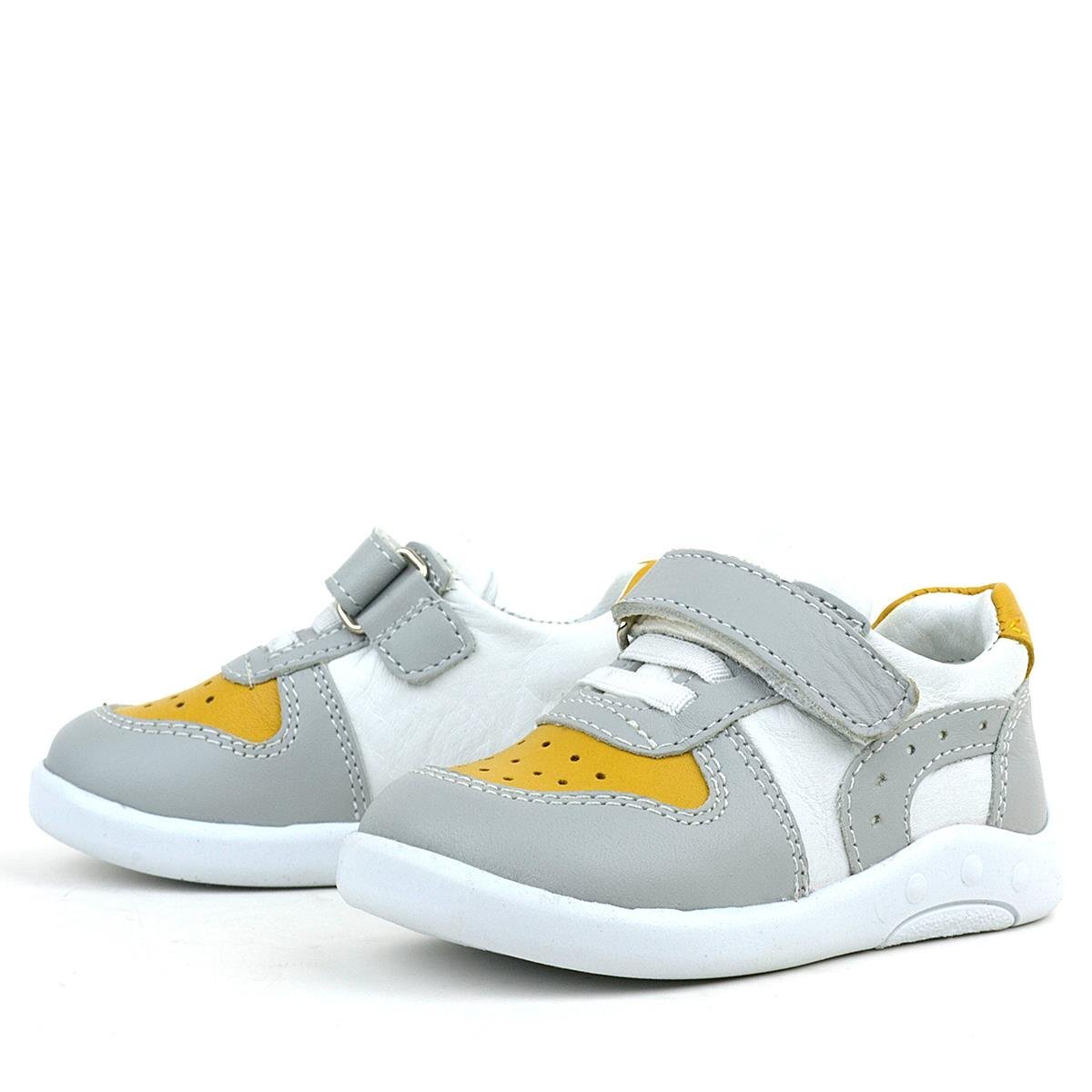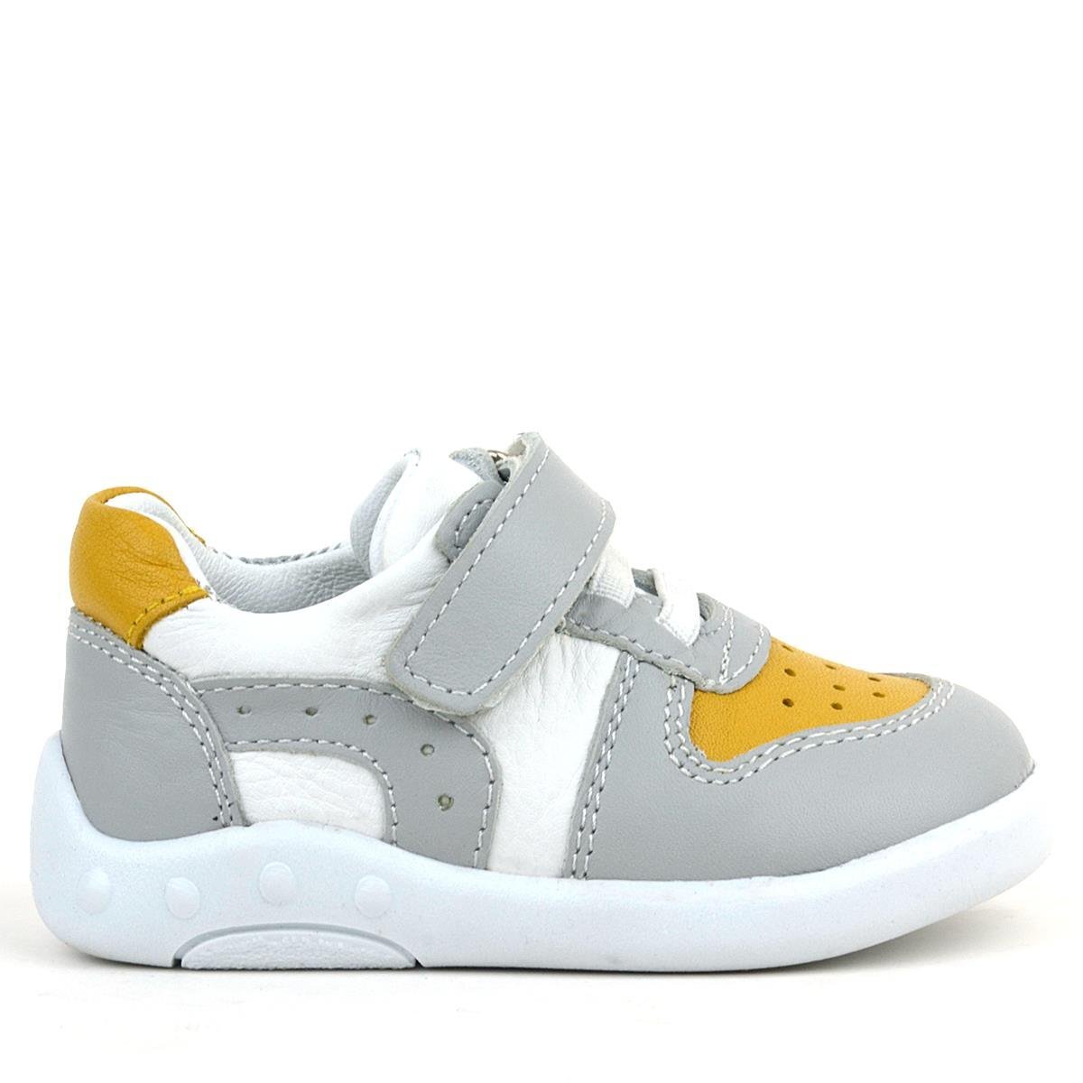 حذاء رياضي تشريحي للأطفال من راكر بلاس، مصنوع من الجلد الطبيعي، رمادي وأصفر